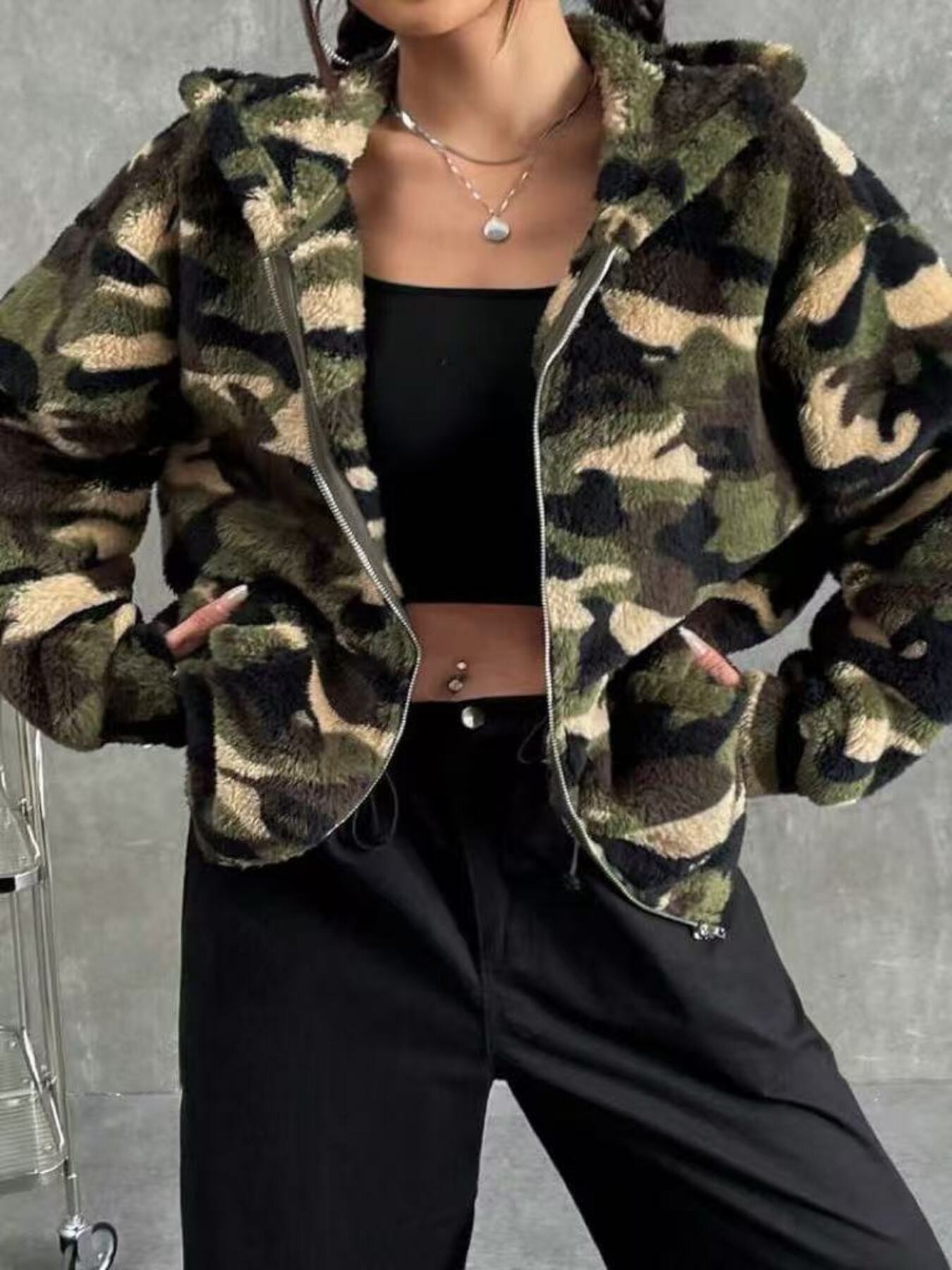 Leopard Print Quarter Zip Corduroy Sweatshirt