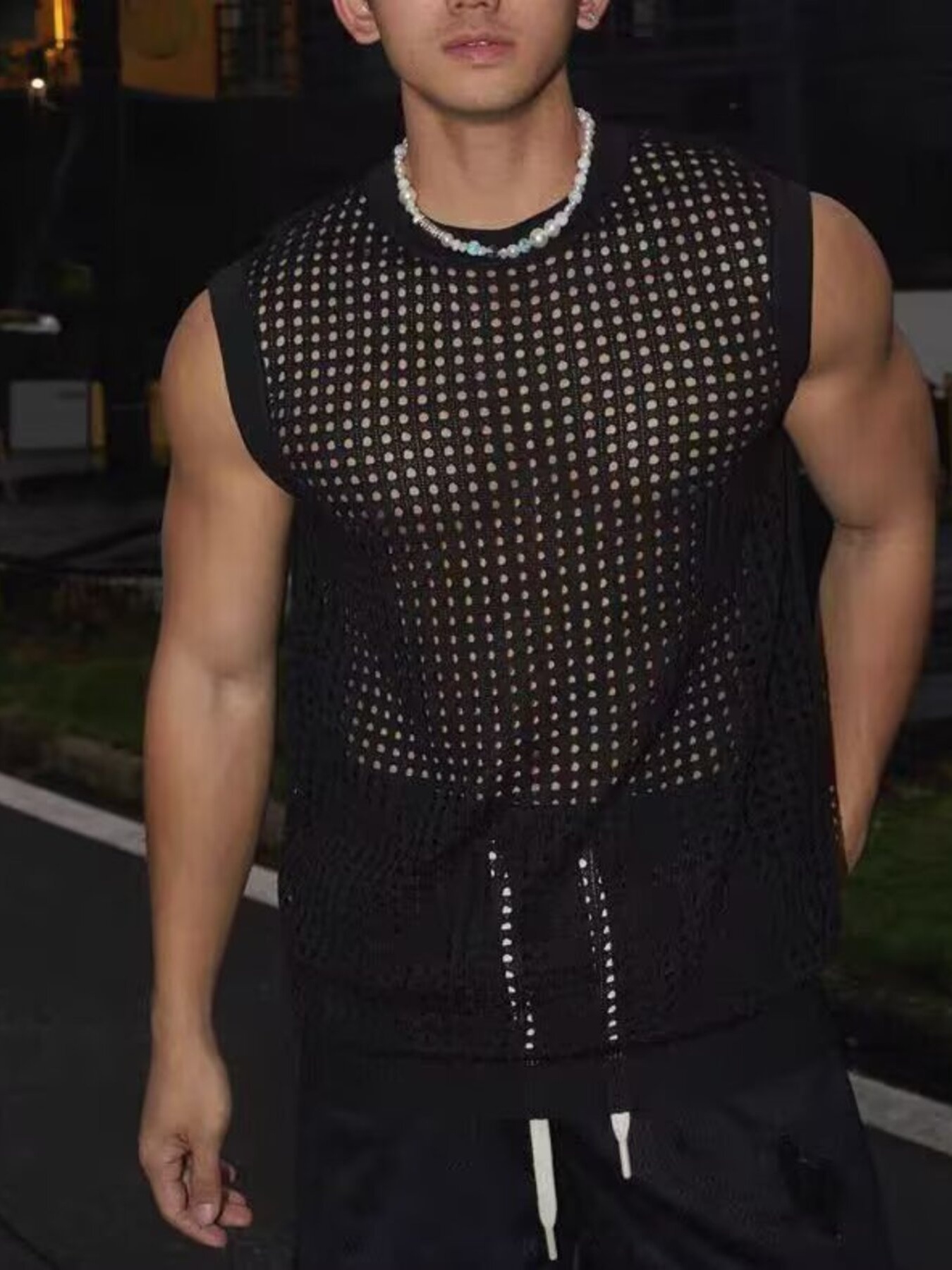 Men's Full Size Hollow Out Round Neck Tank Plus Size