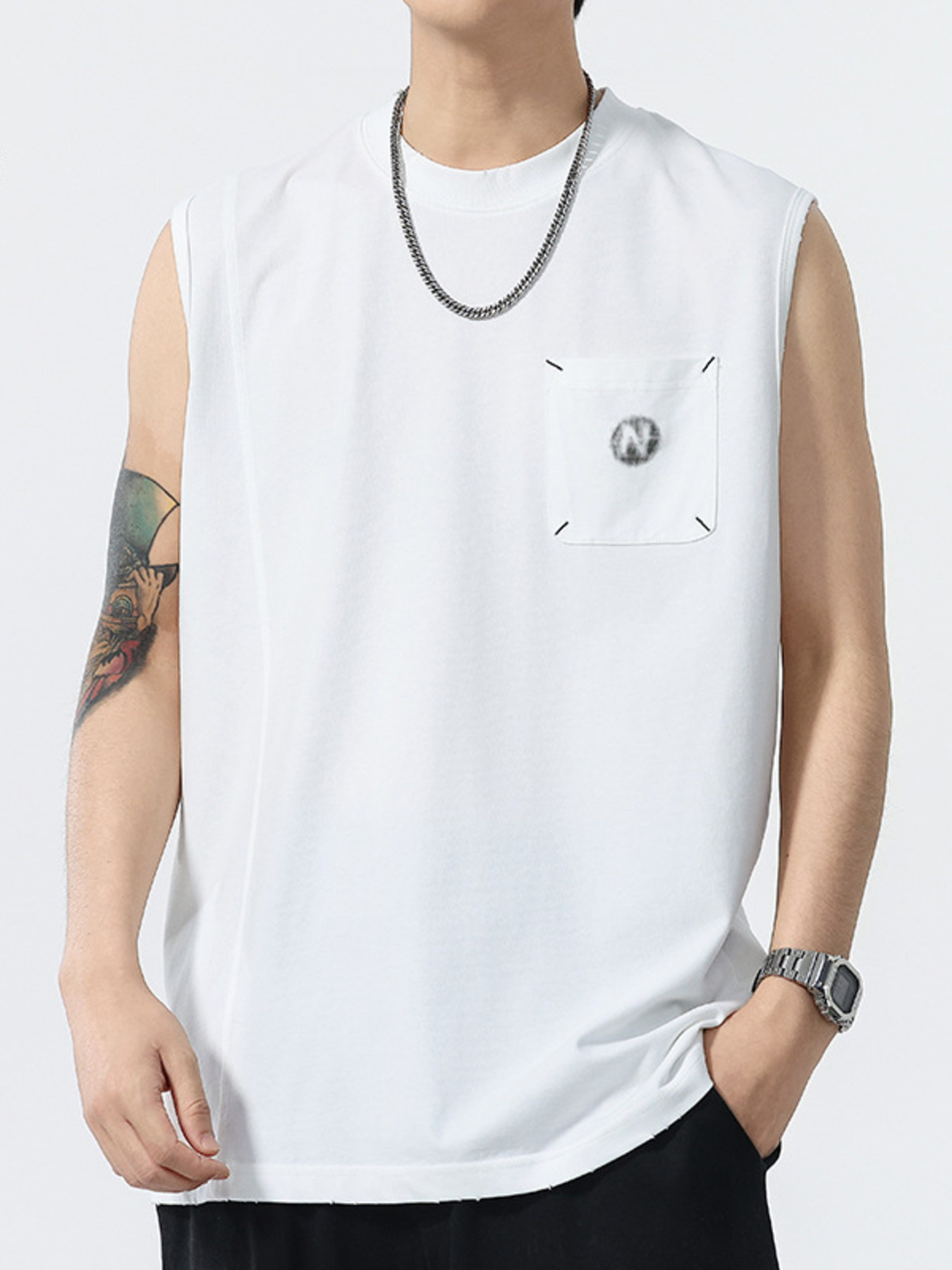 Men's Plus Size Washed Distressed Texture Sleeveless Tank
