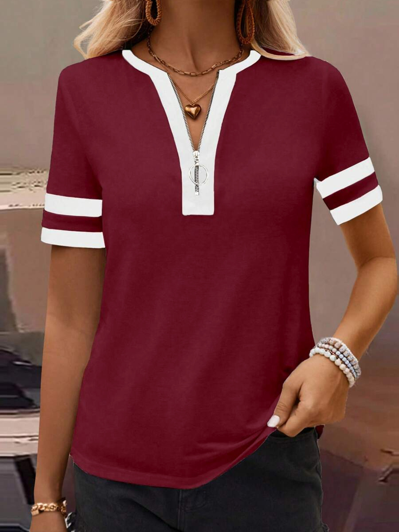 Full Size Notched Short Sleeve T-Shirt Plus Size