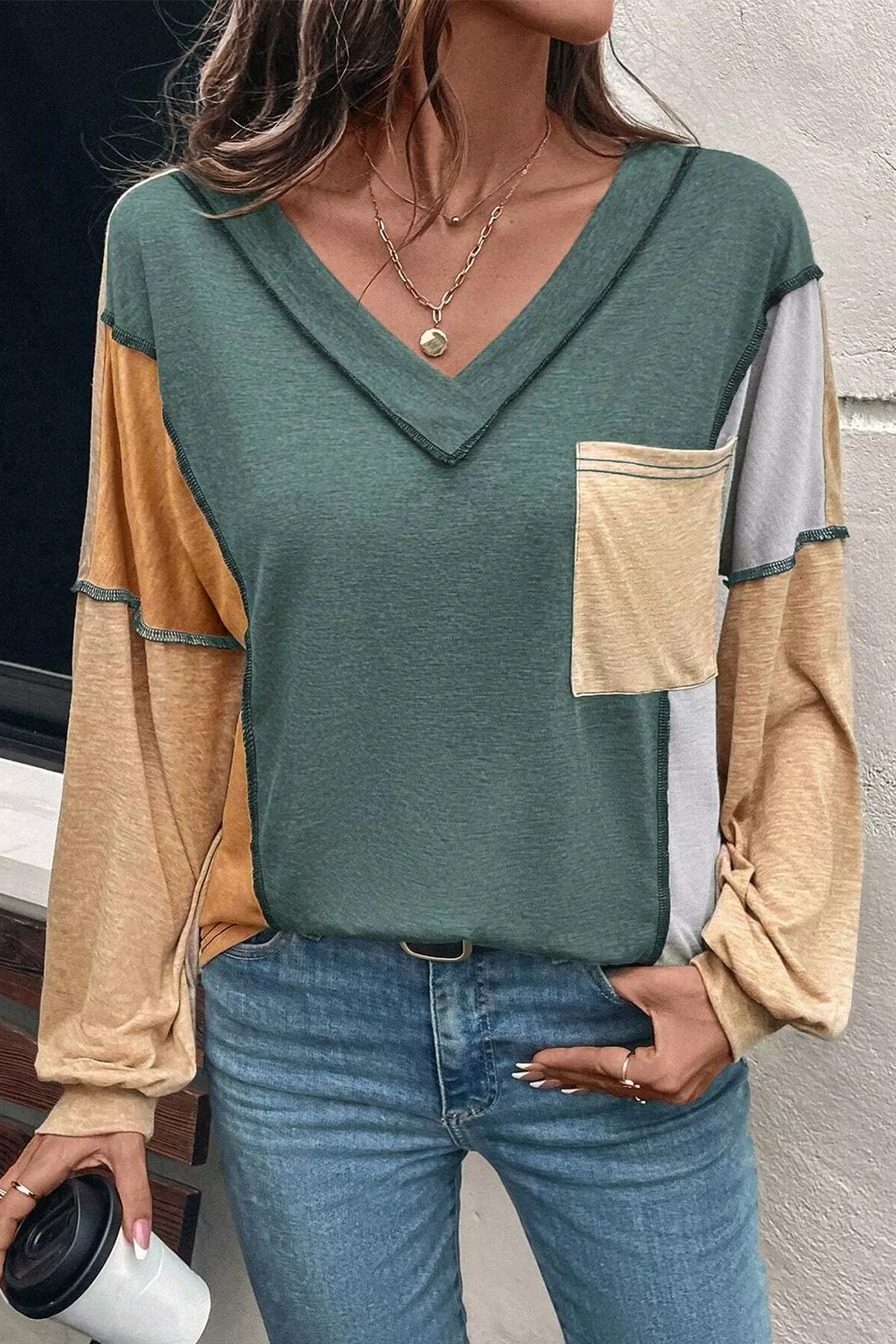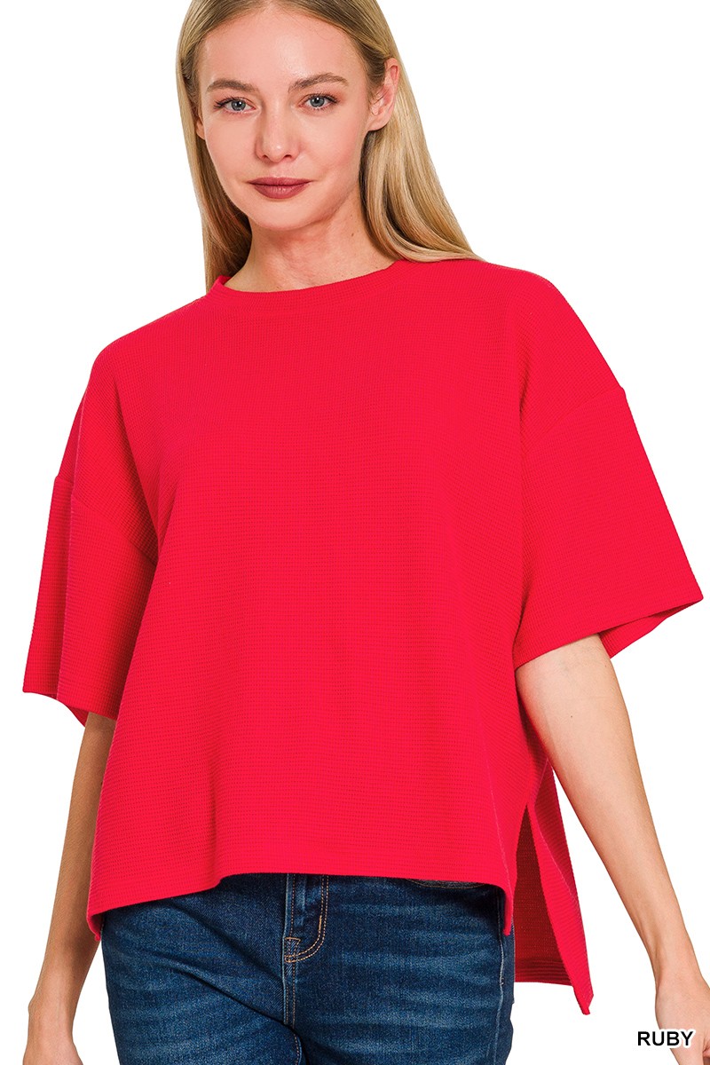 Plus Size V-Neck Long Sleeve Waffle Knit T-Shirt