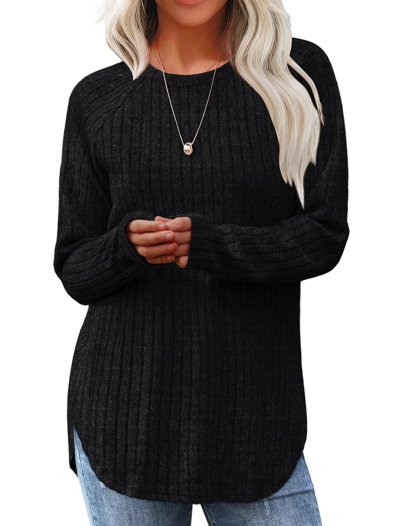 Casual Ribbed Knit Long Sleeve T-Shirt