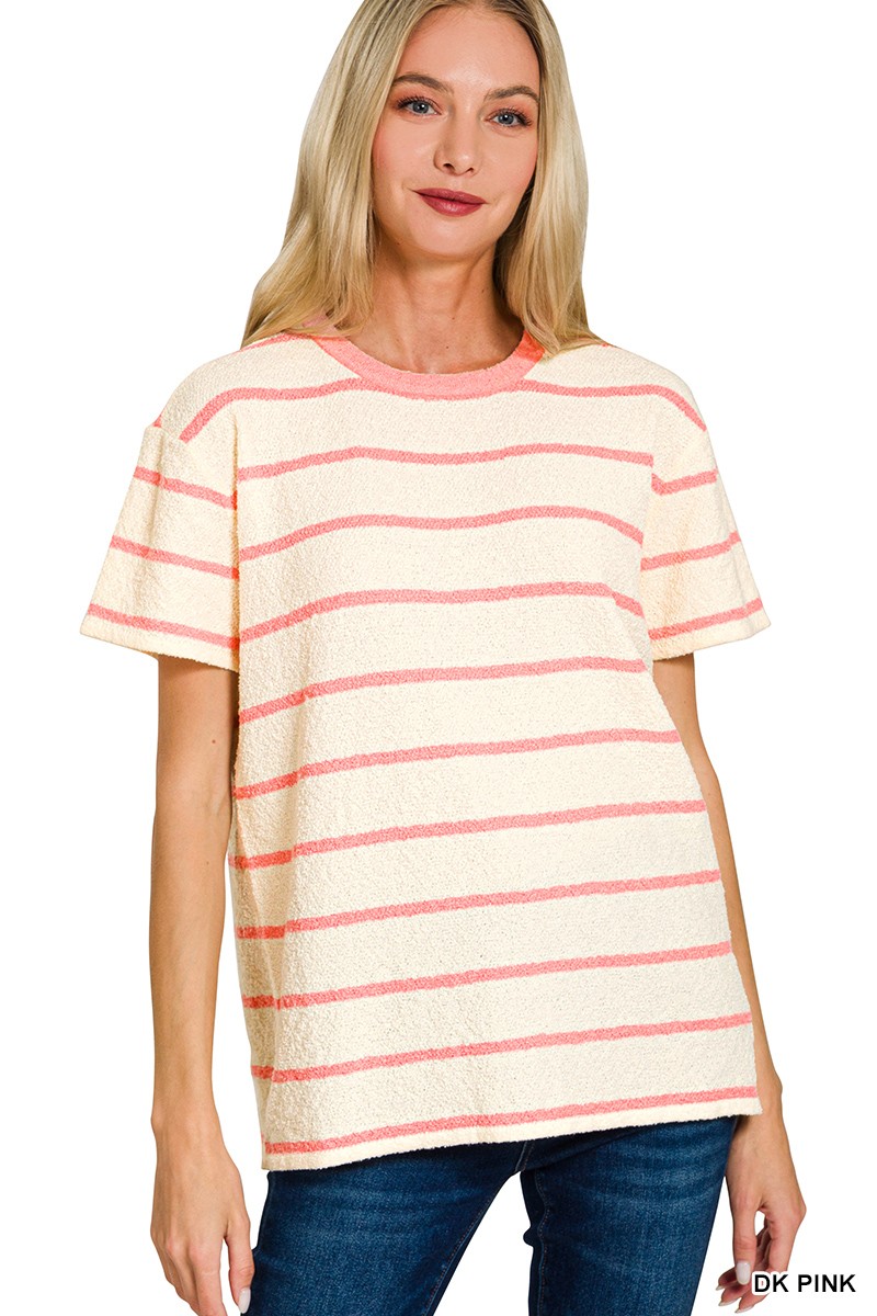Textured Striped Crew Neck T-Shirt
