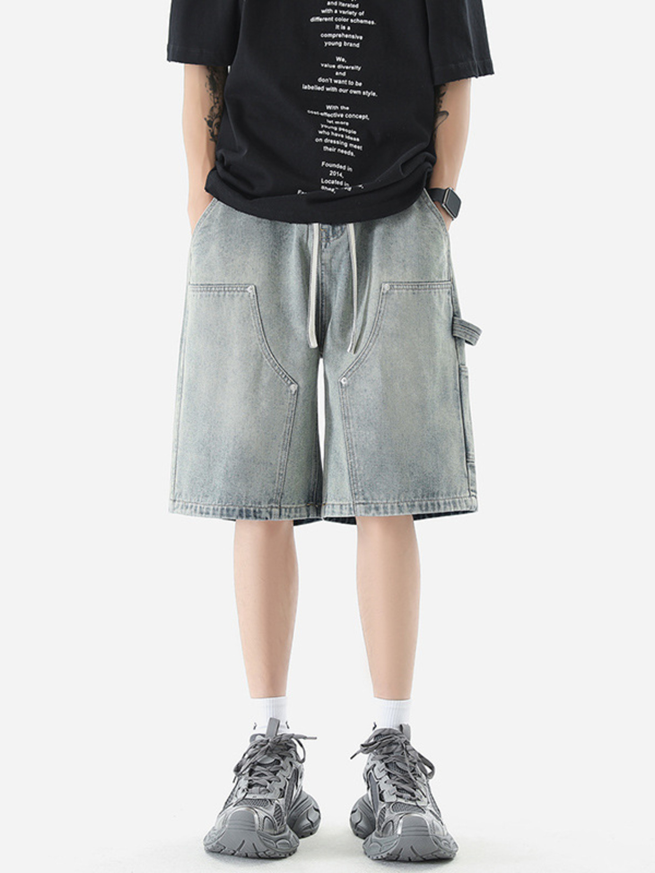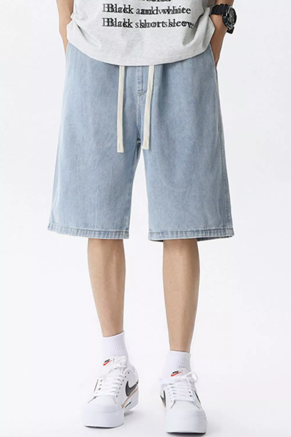 Men's Full Size Vintage Wash Drawstring Denim Shorts Plus Size