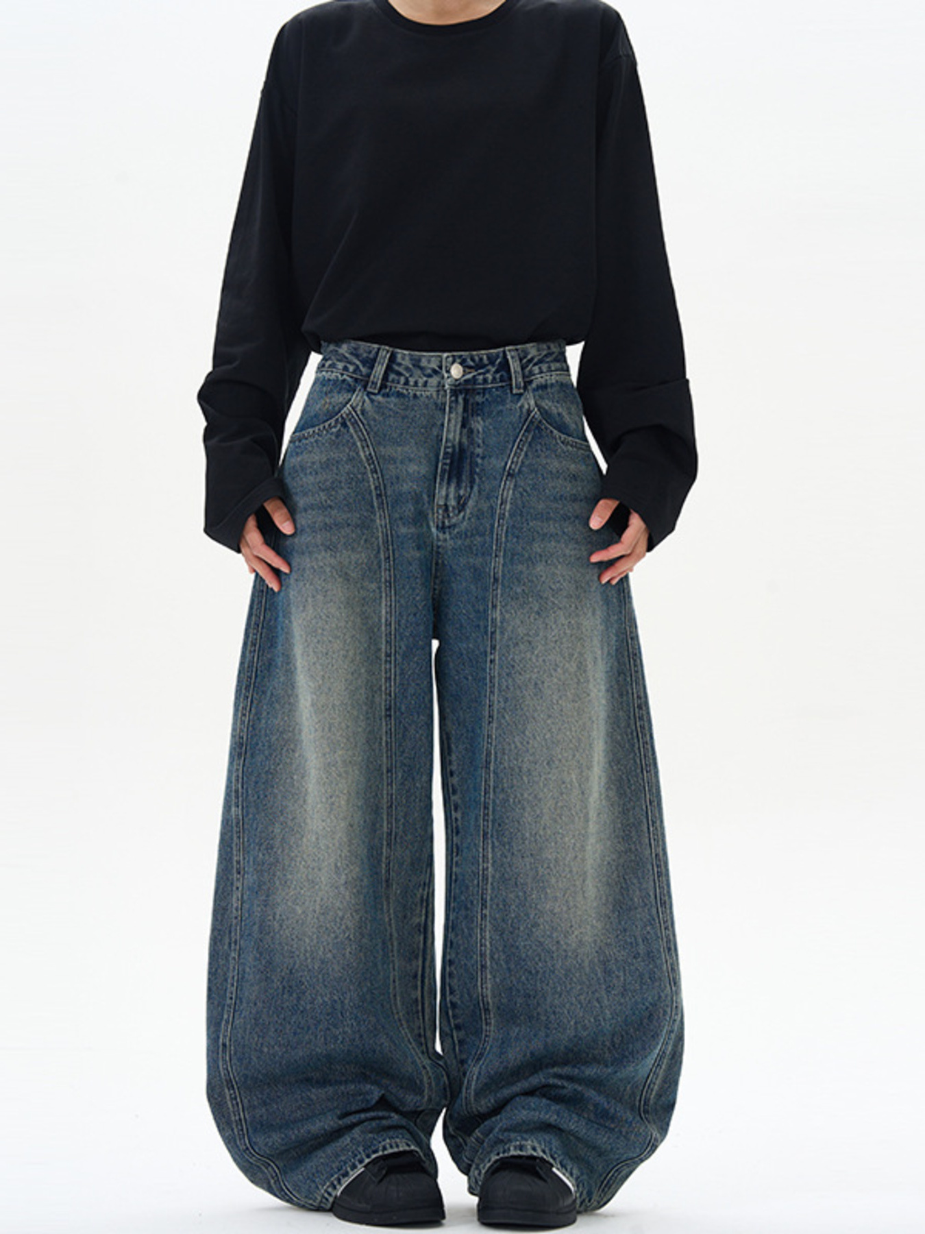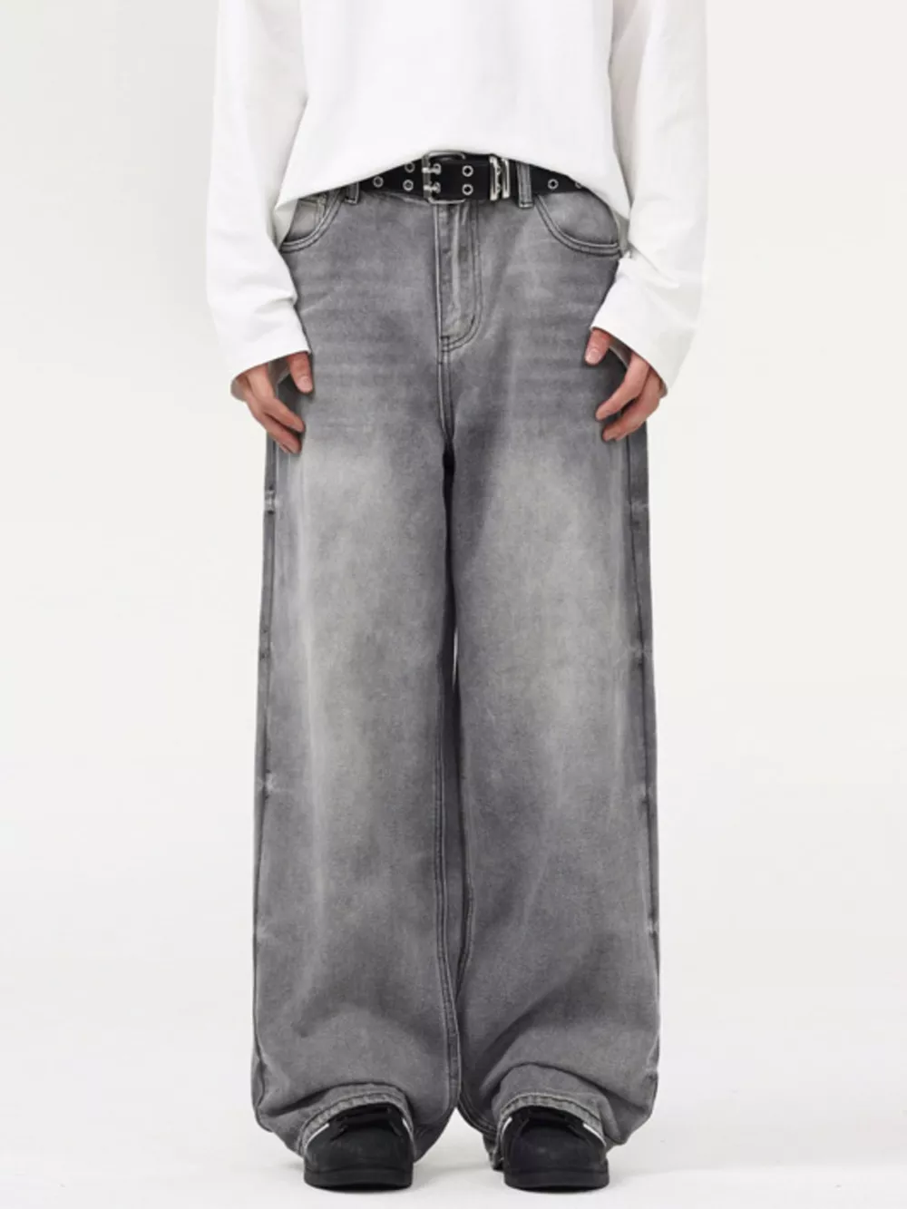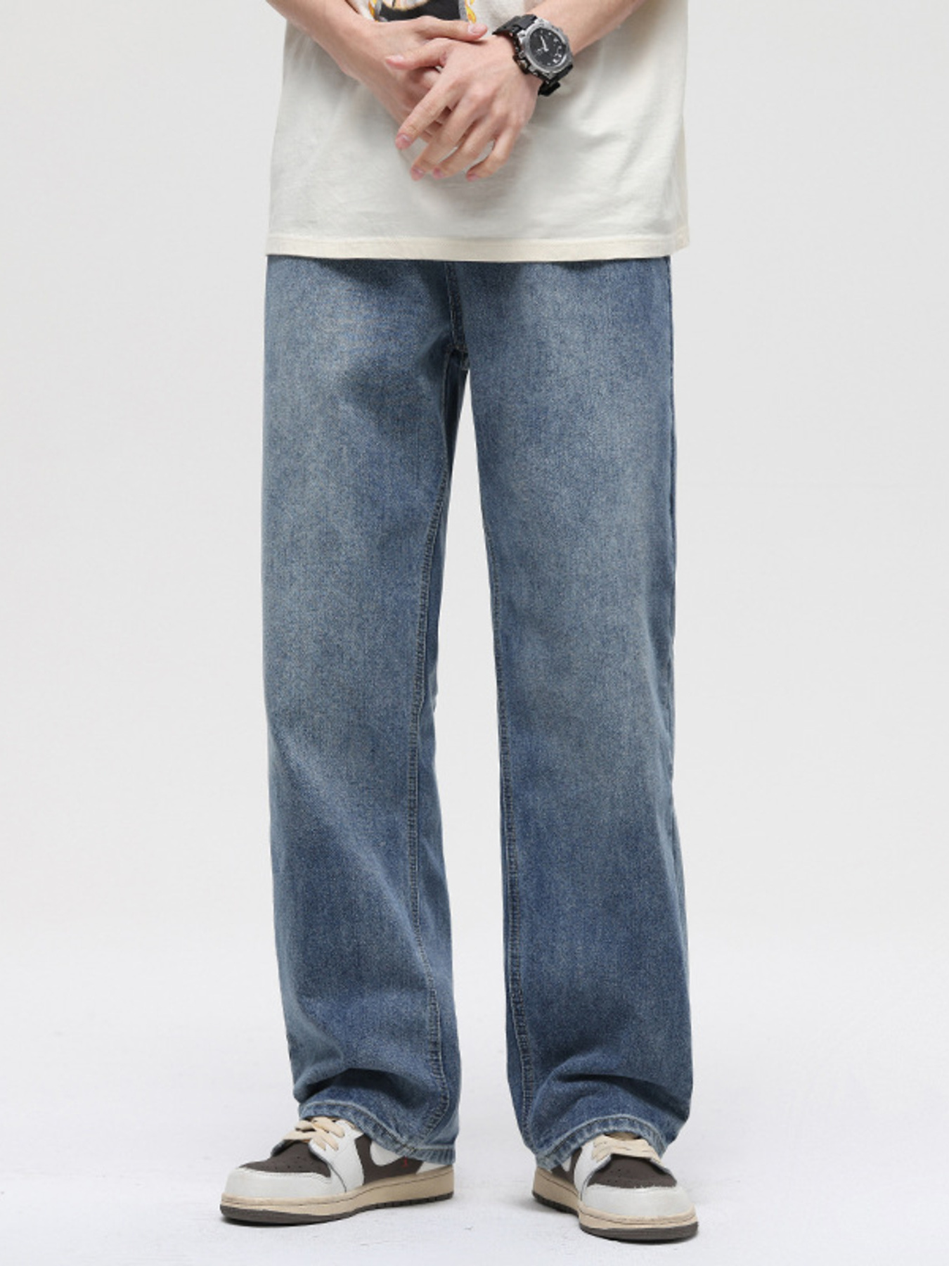 Men's Full Size Vintage Wash Wide Leg Jeans Plus Size