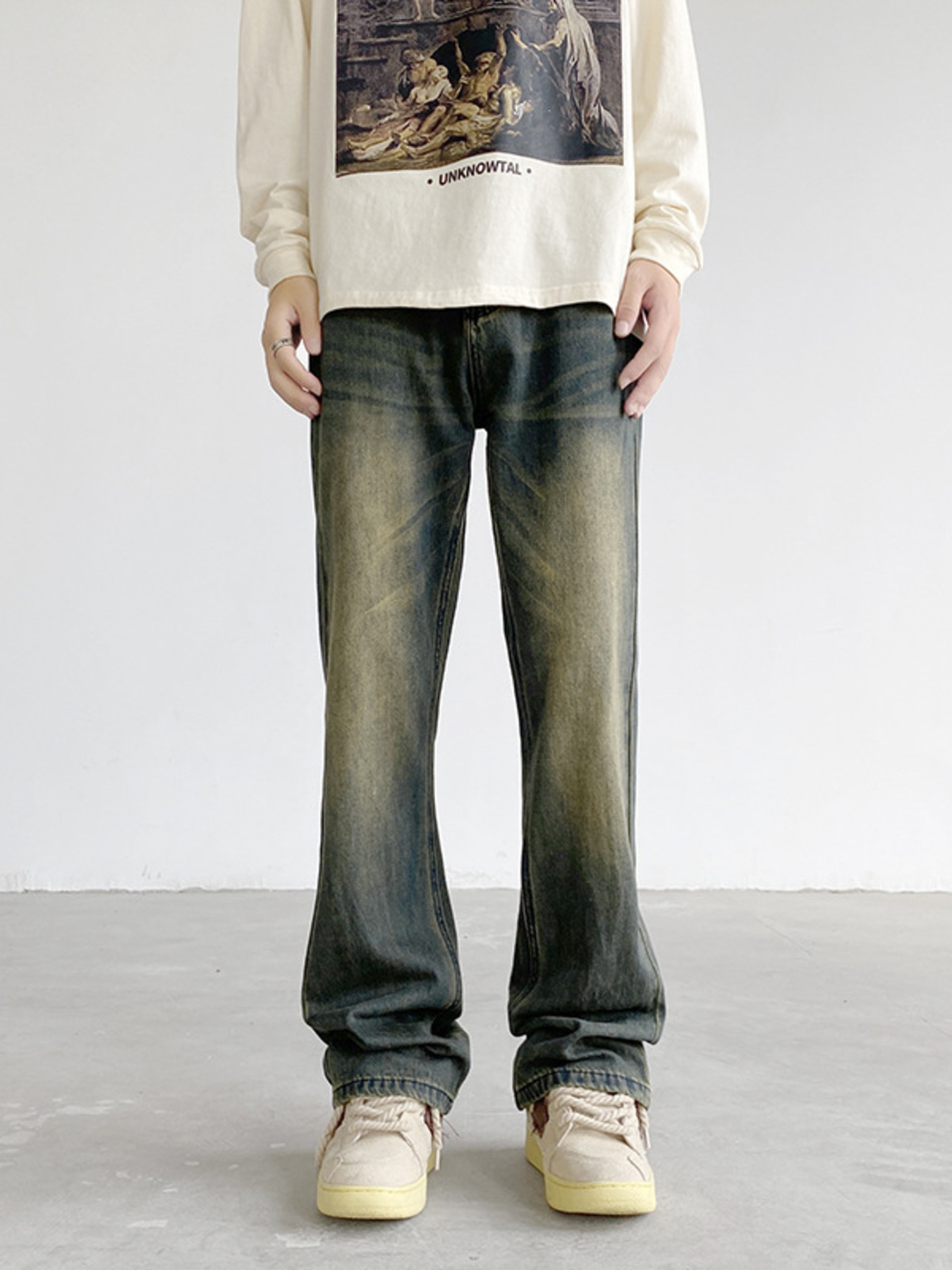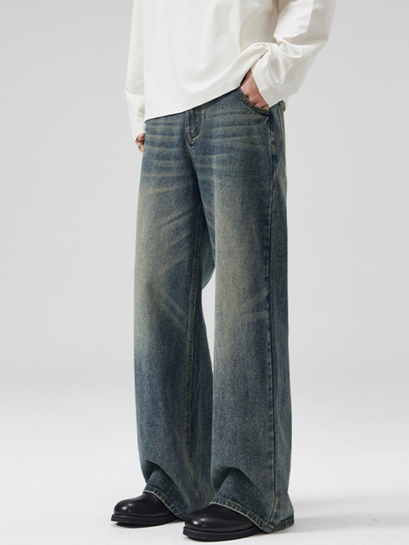 Men's Vintage Wash Wide Leg Jeans