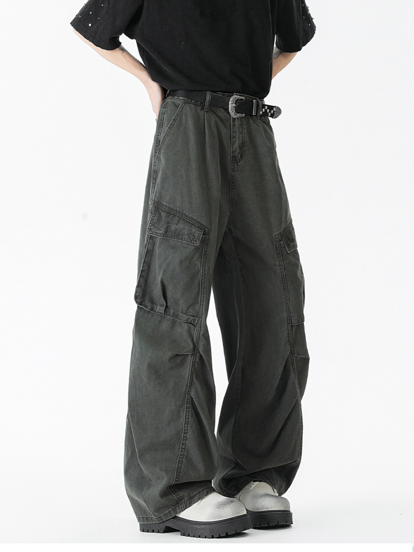 Men's Plus Size Vintage Wash Wide Leg Pants