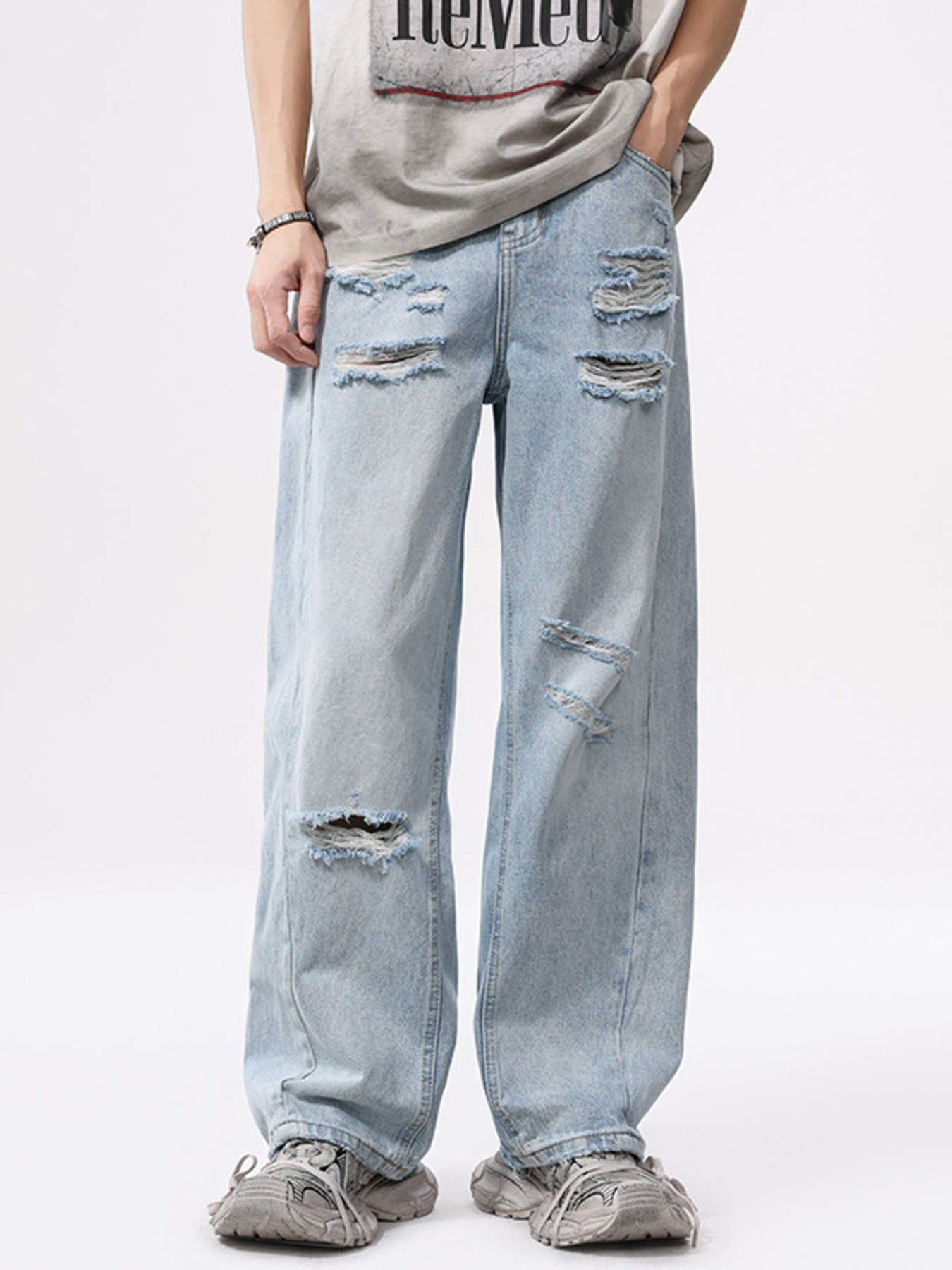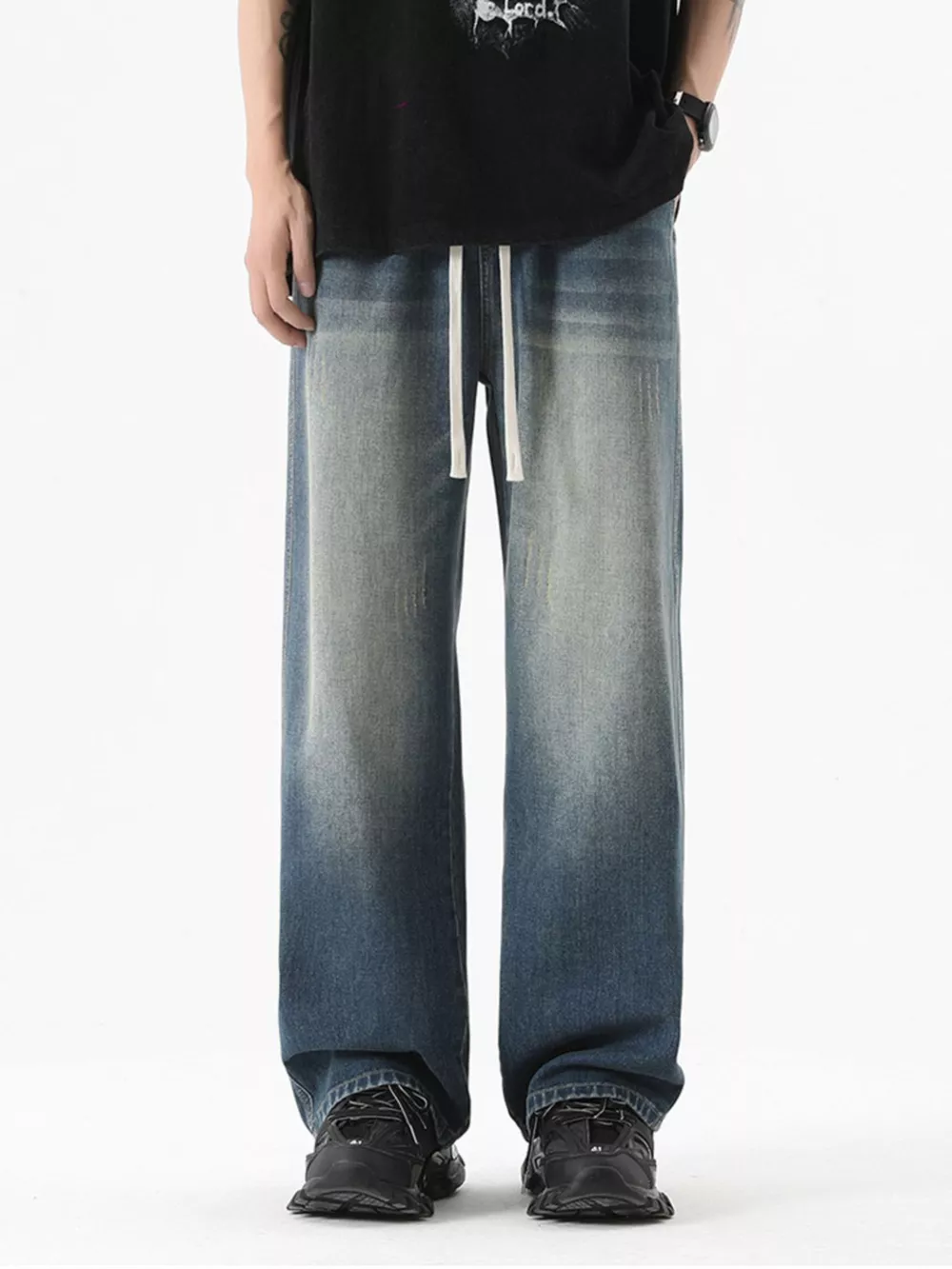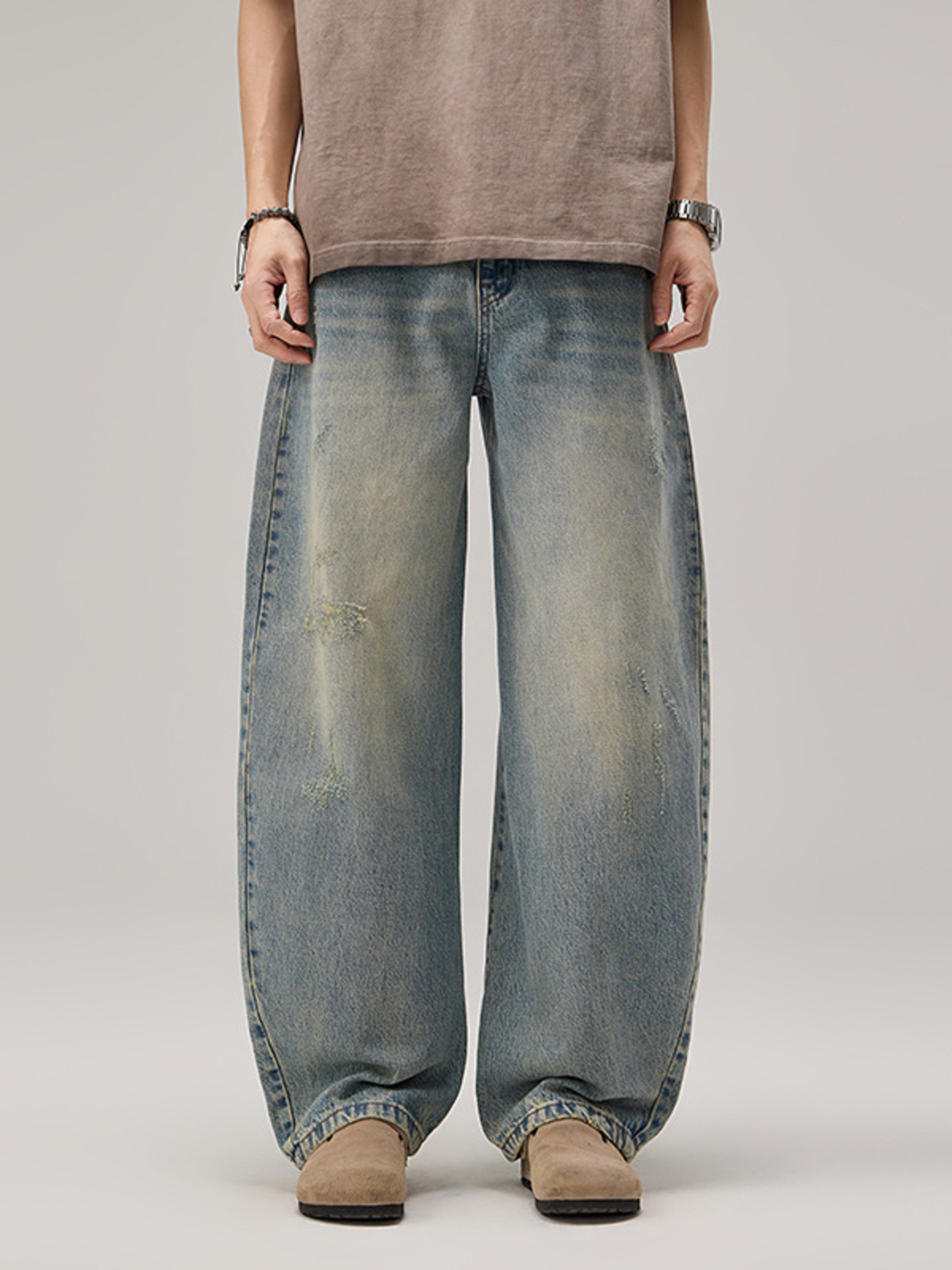 Men's Distressed Wide Leg Vintage Wash Jeans