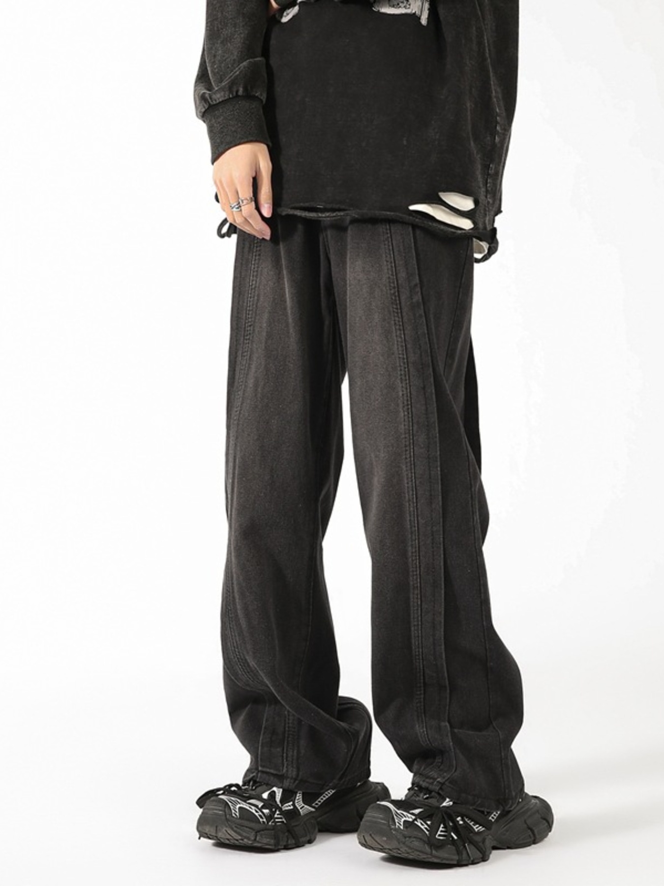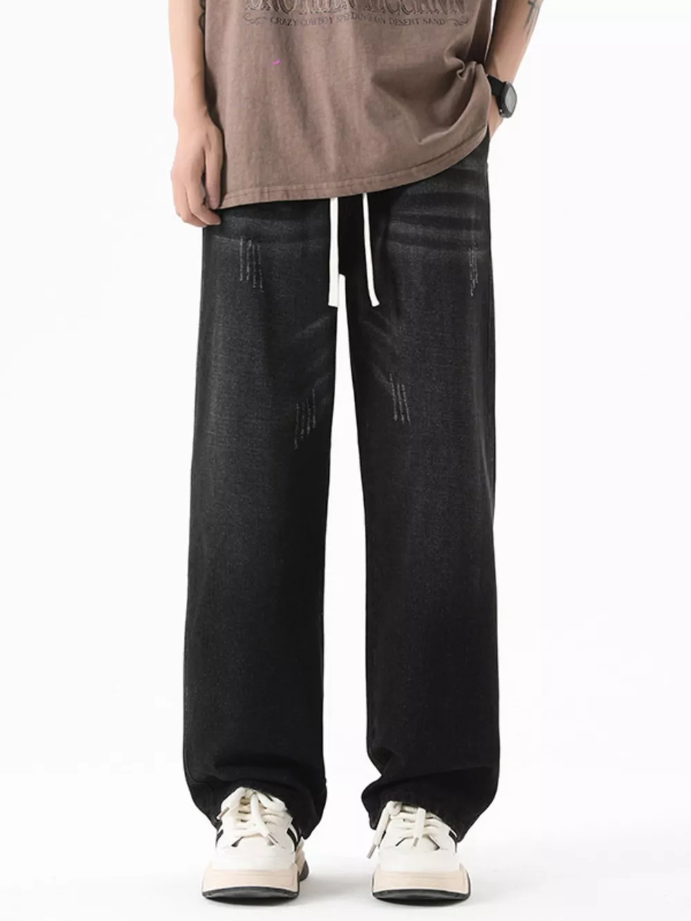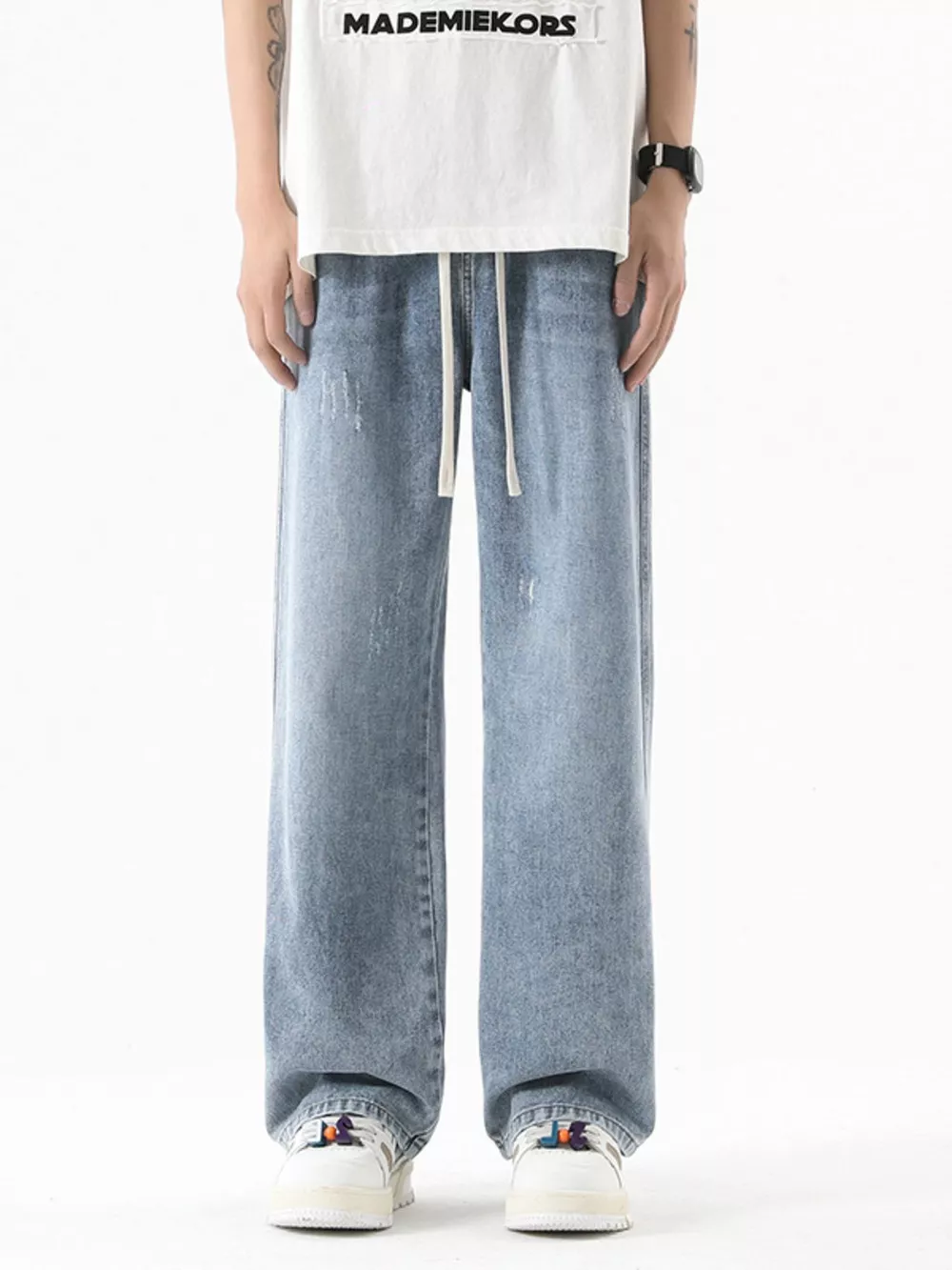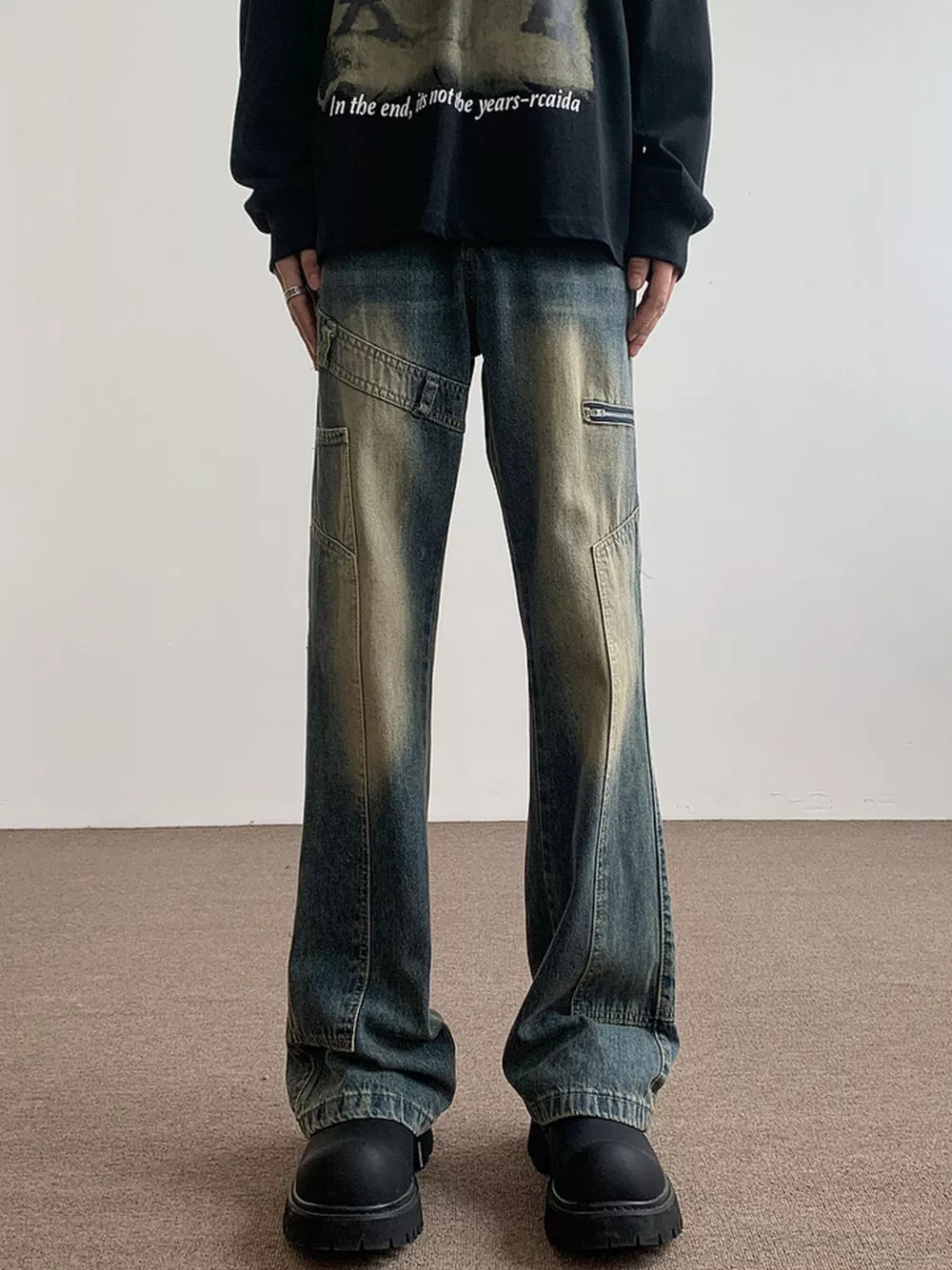 Men's Distressed Wide Leg Vintage Wash Jeans