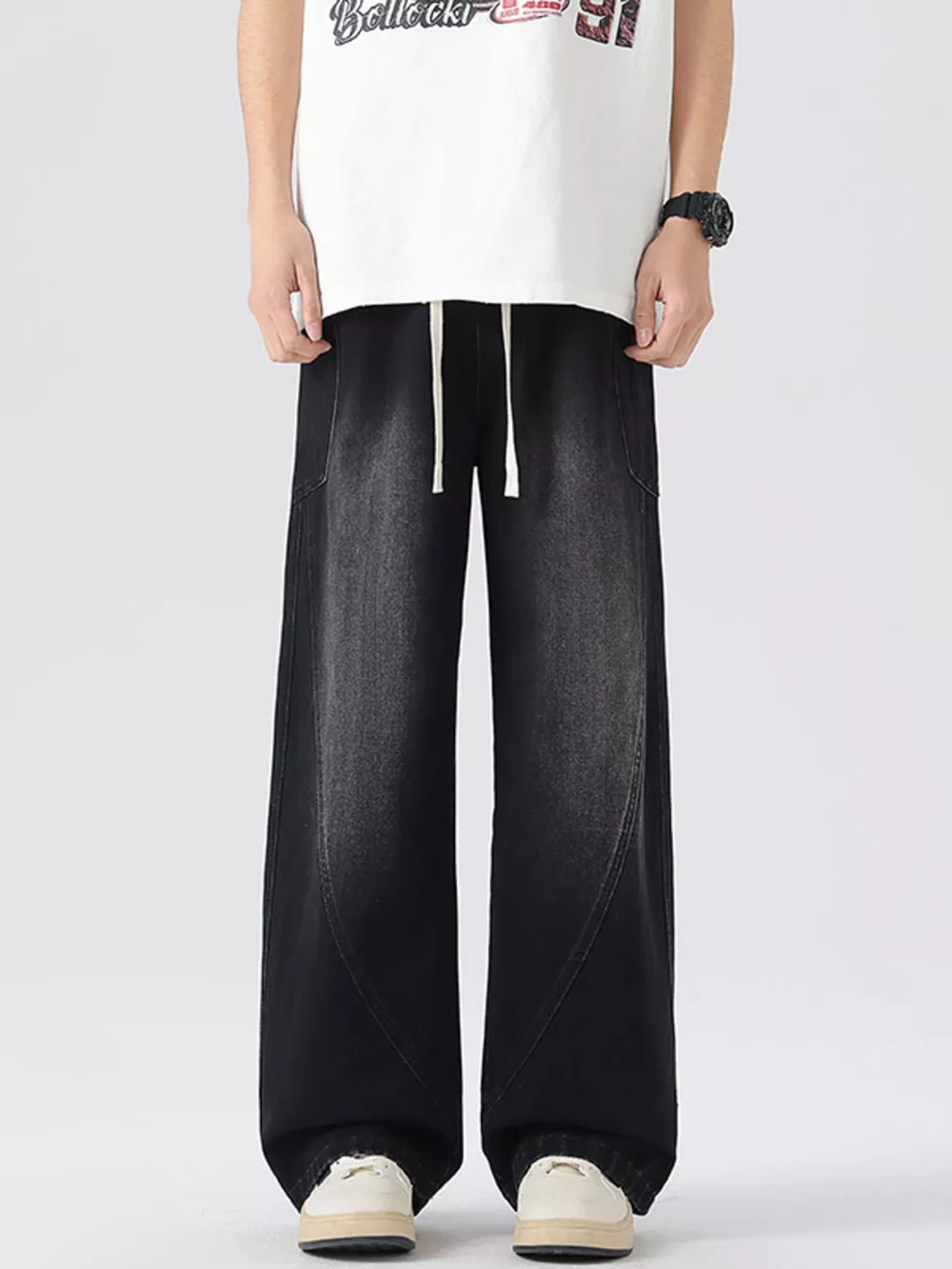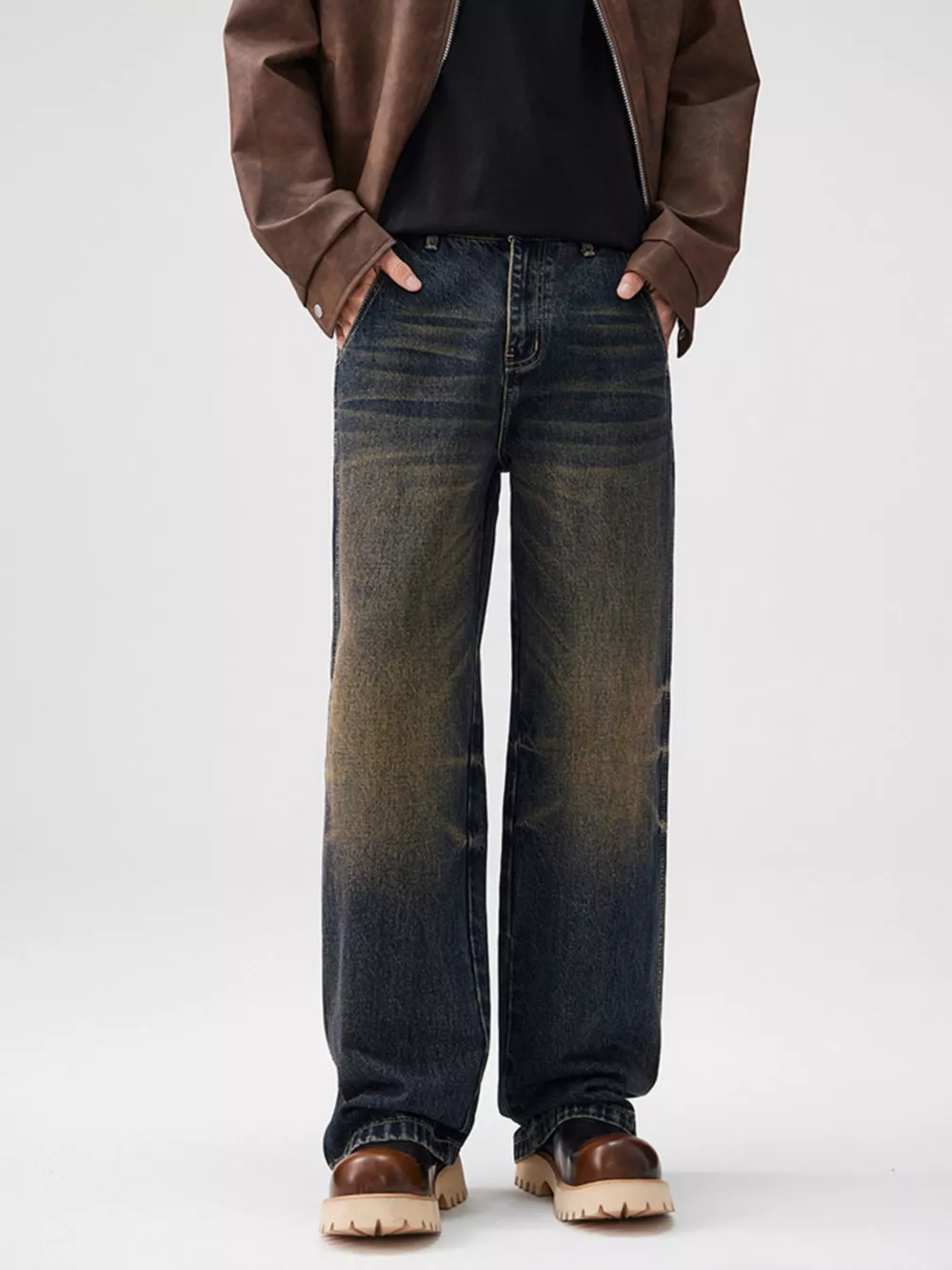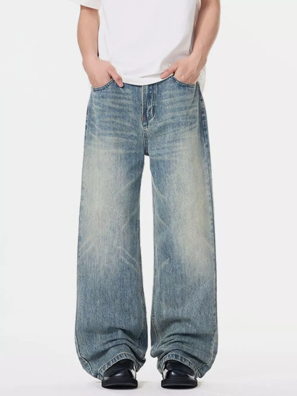 Men's Plus Size Vintage Wash Wide Leg Jeans