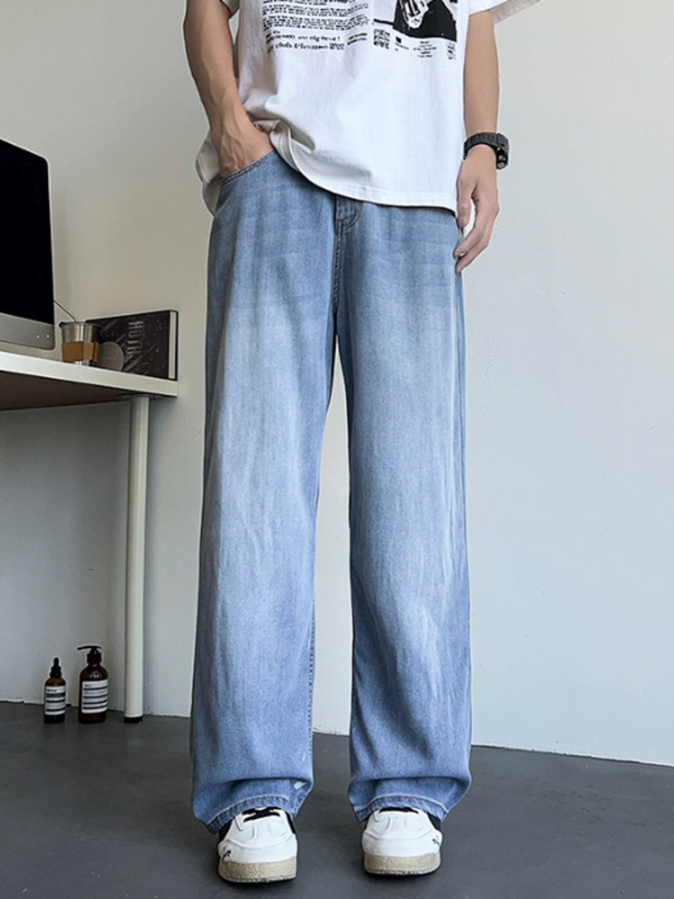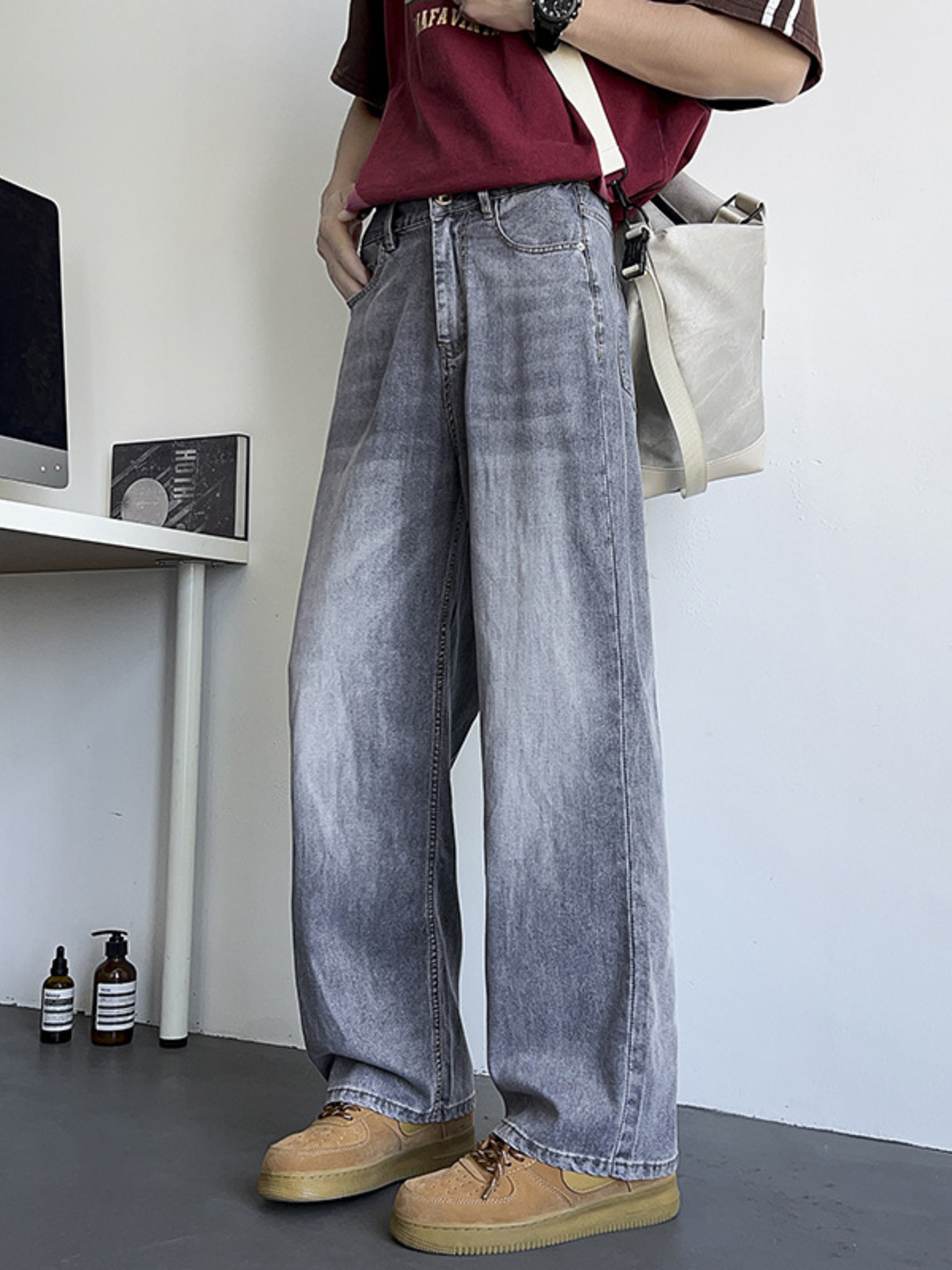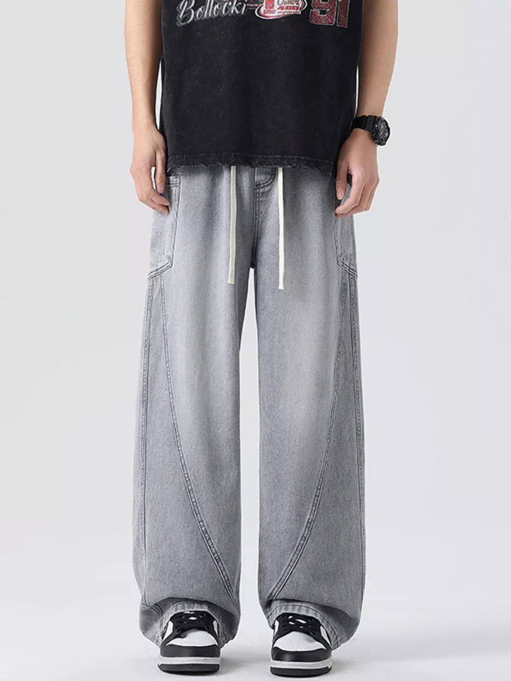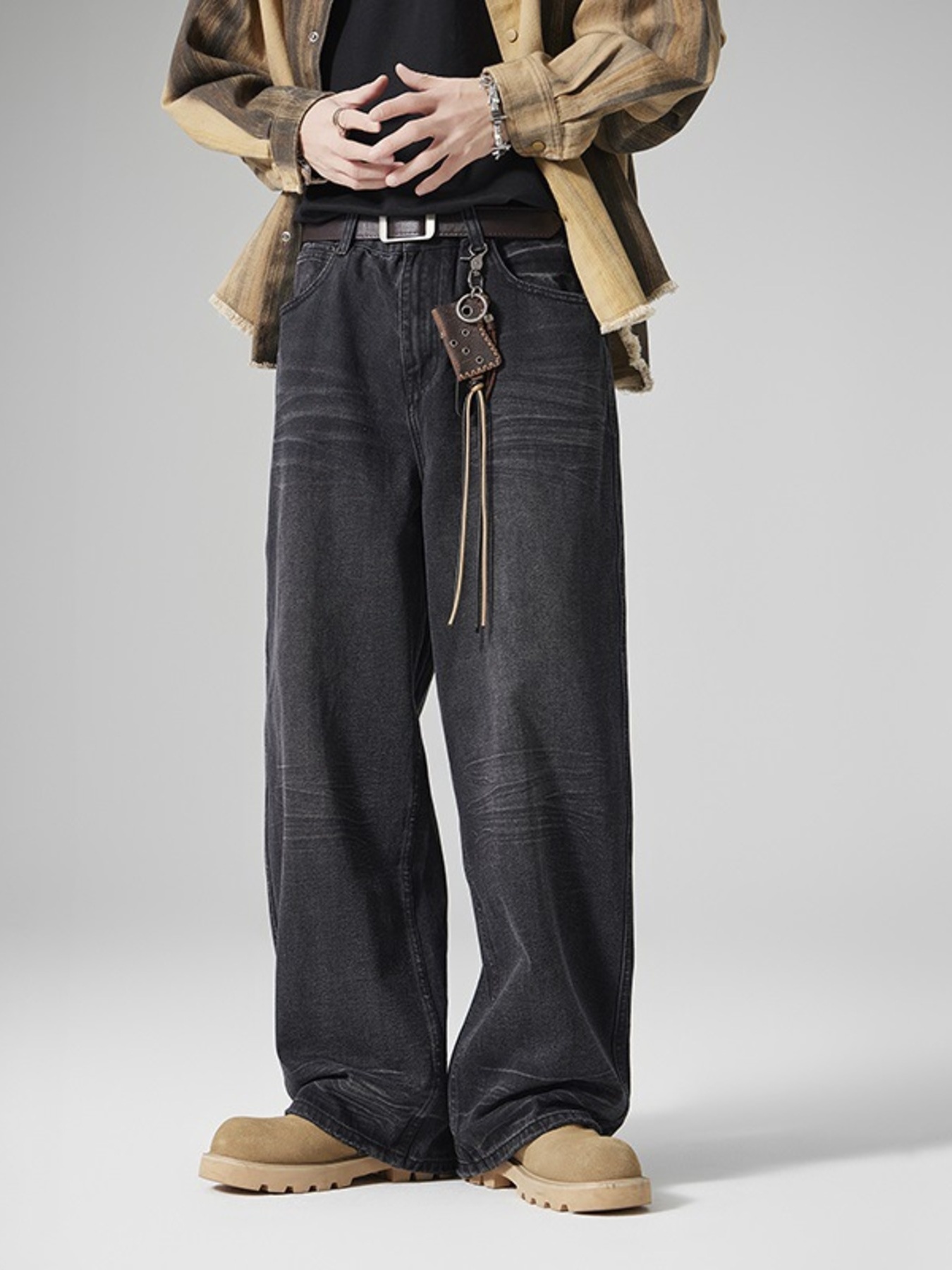 Men's Plus Size Vintage Wash Wide Leg Jeans