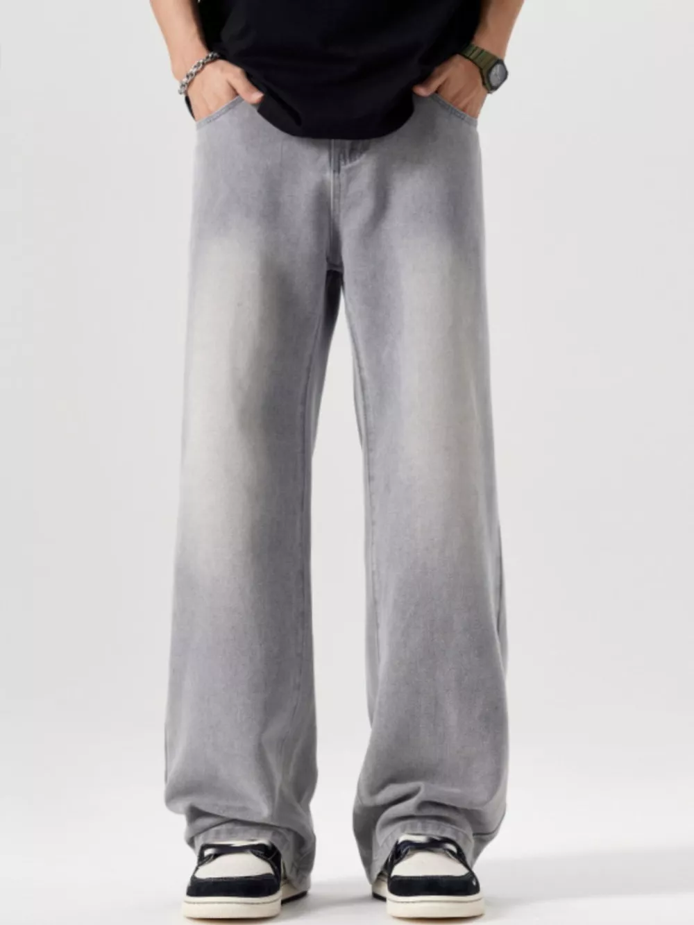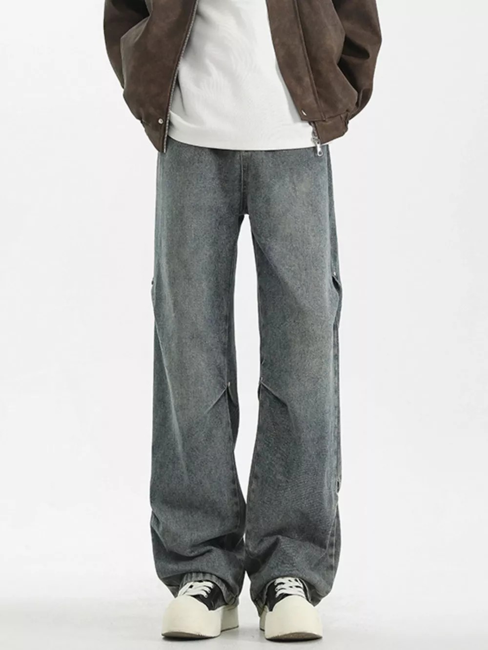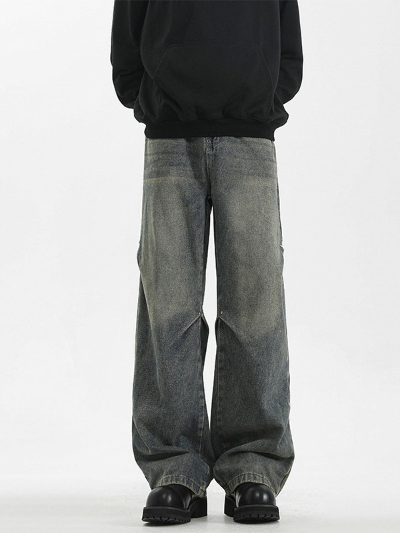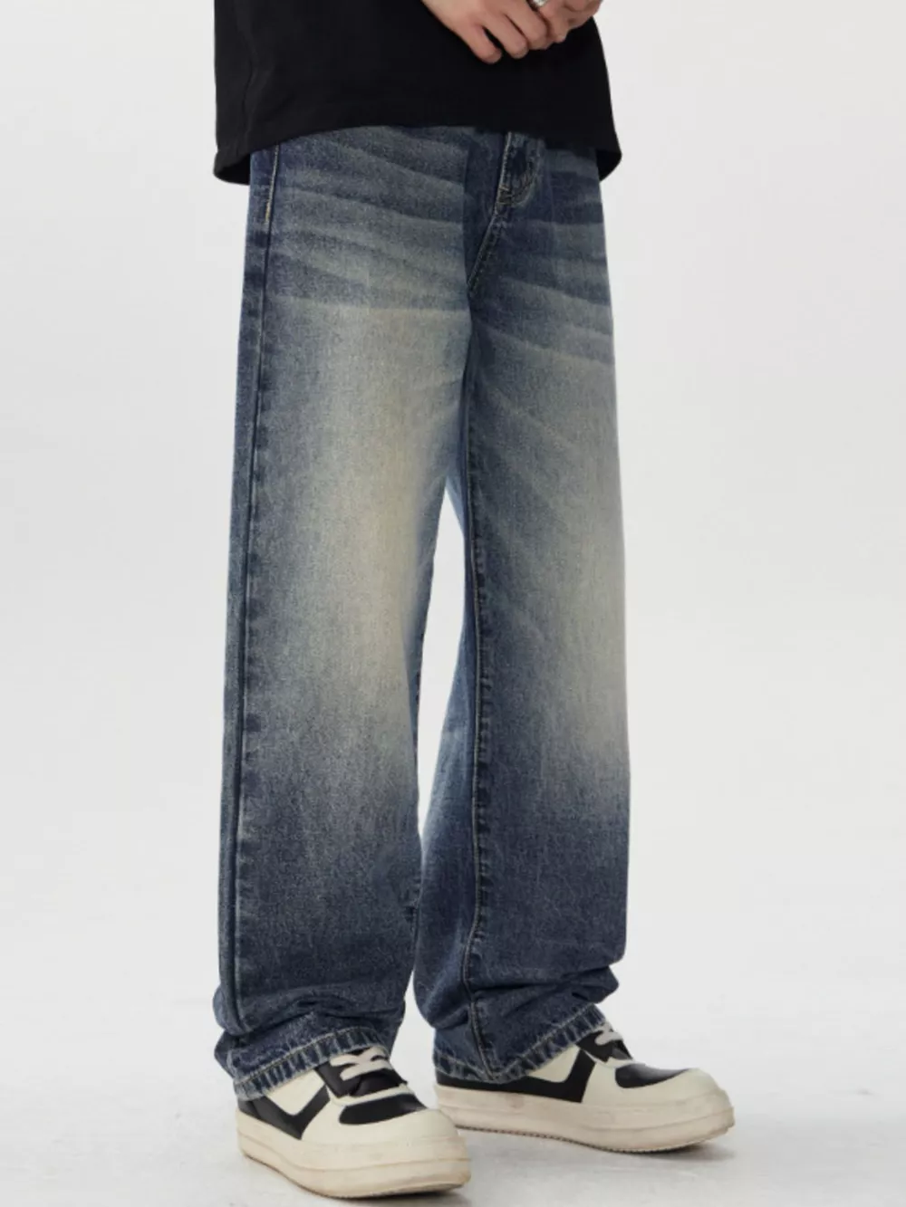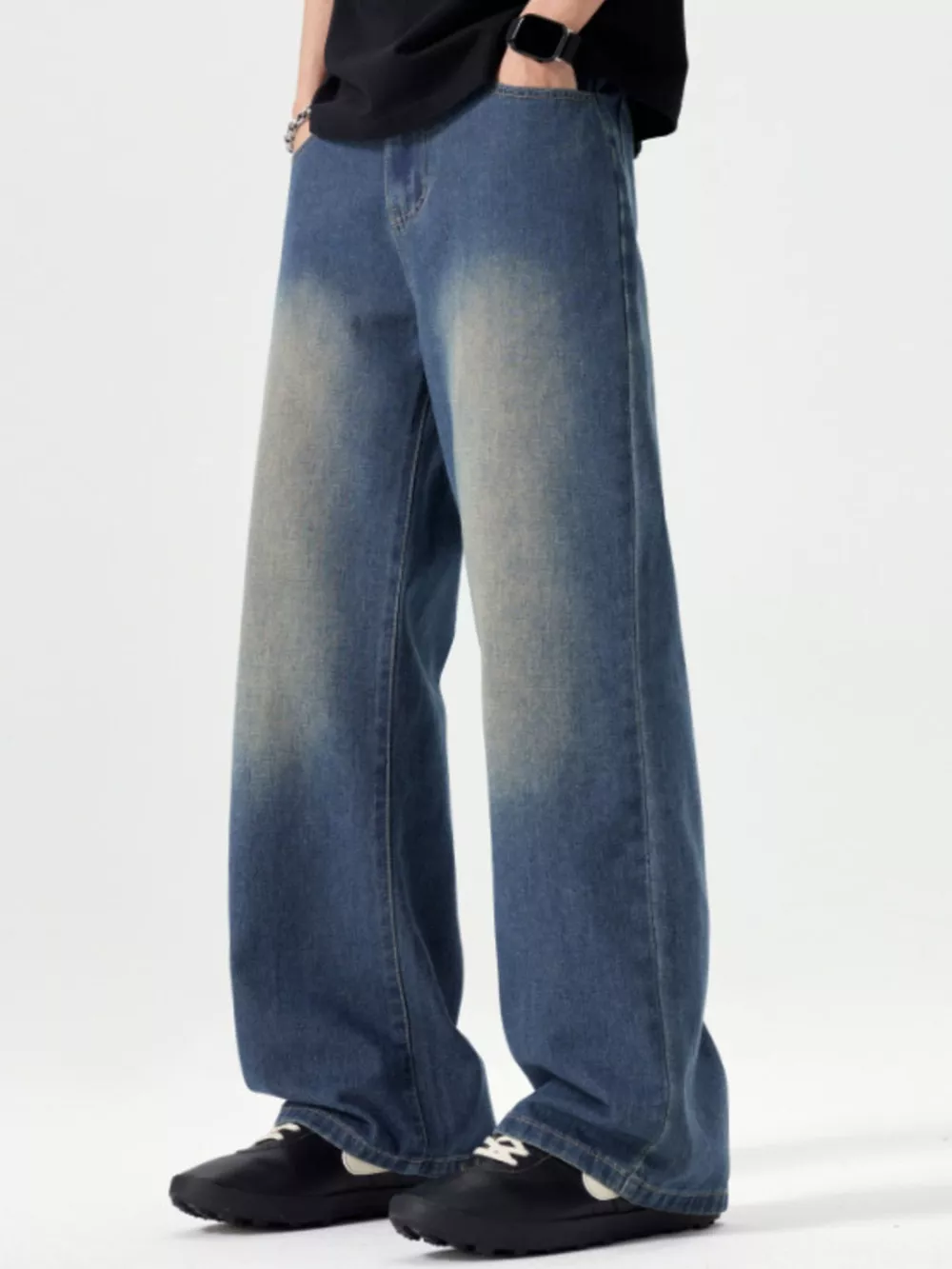 Men's Relaxed Fit Wide Leg Vintage Wash Jeans