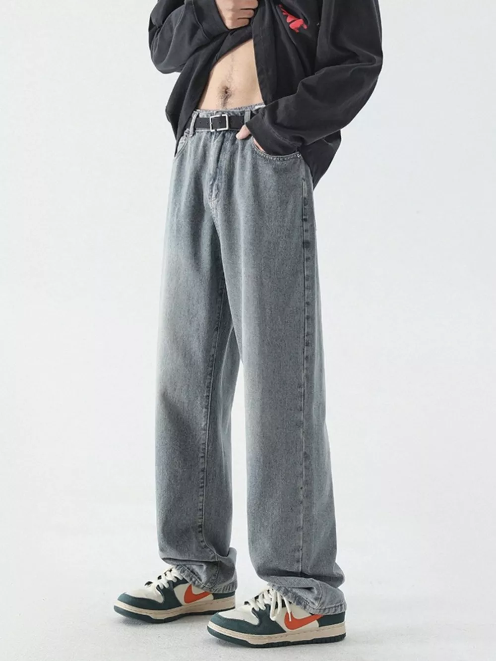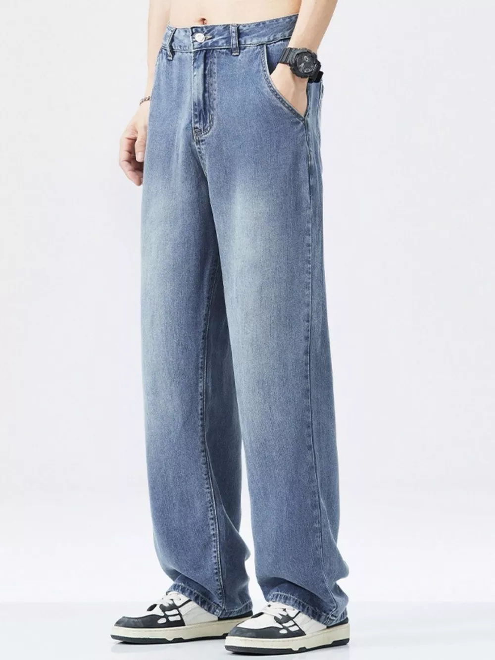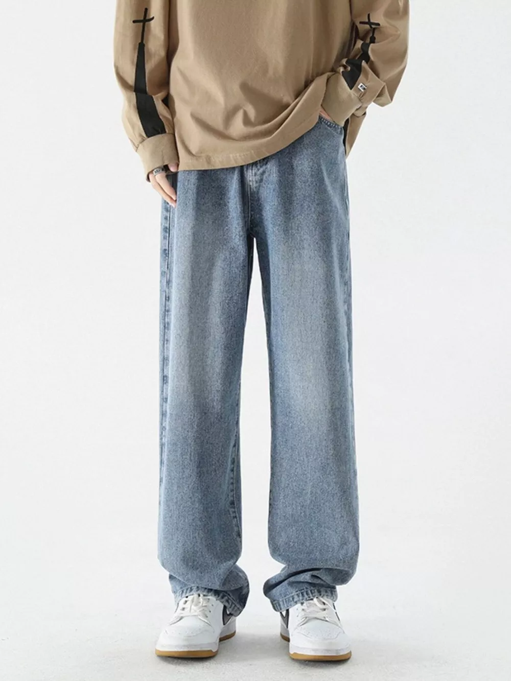 Men's Full Size Vintage Wash Wide Leg Jeans Plus Size
