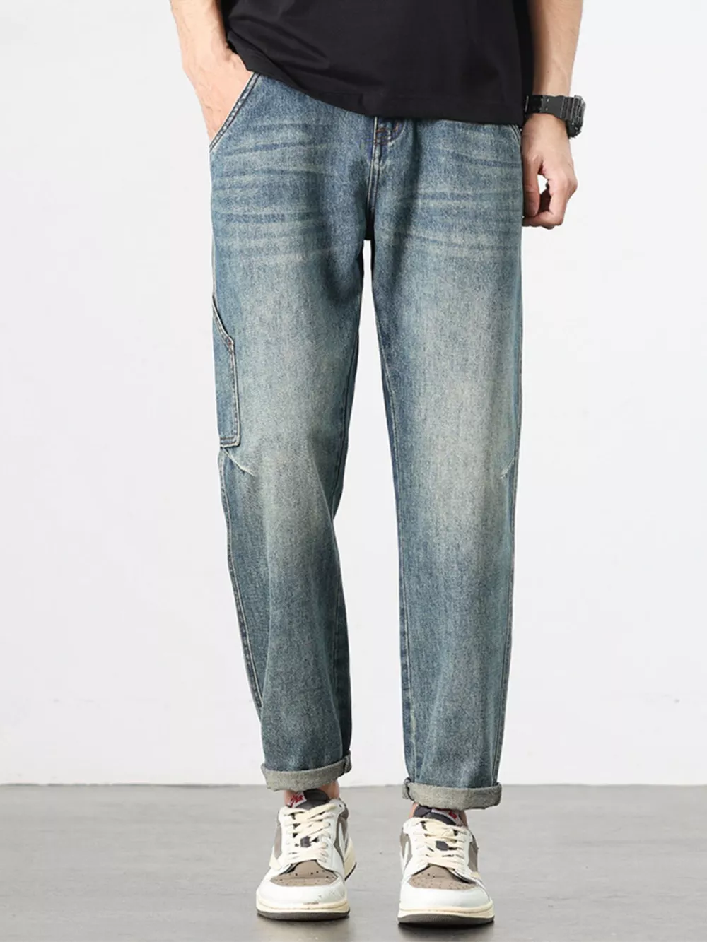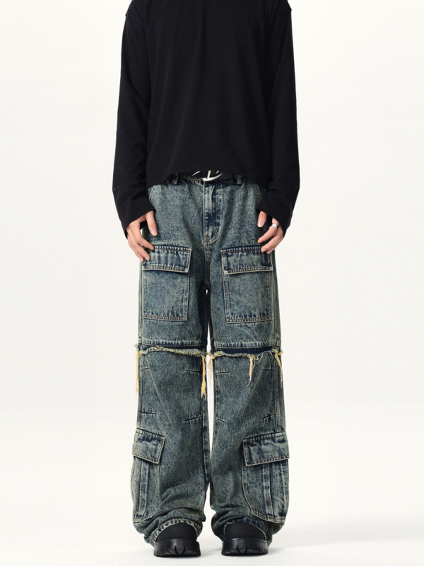 Men's Vintage Wash Multi-Pocket Cargo Jeans