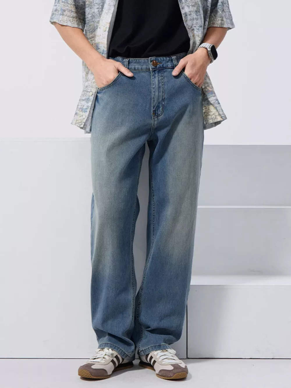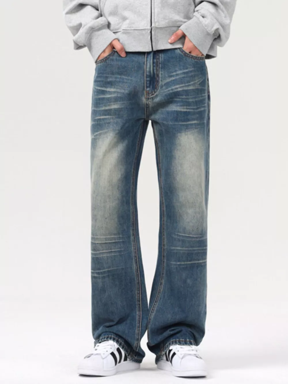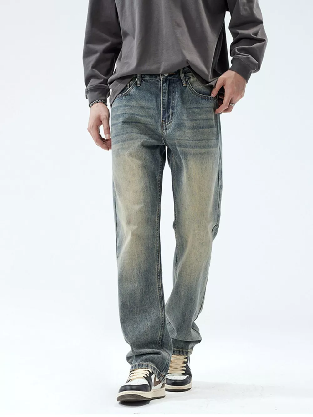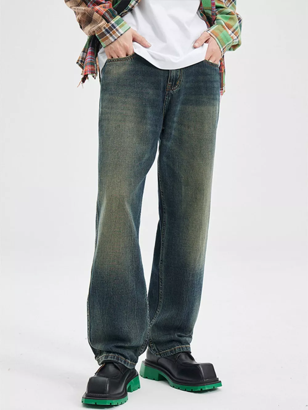 Men's Vintage Washed Relaxed Fit Straight Leg Jeans