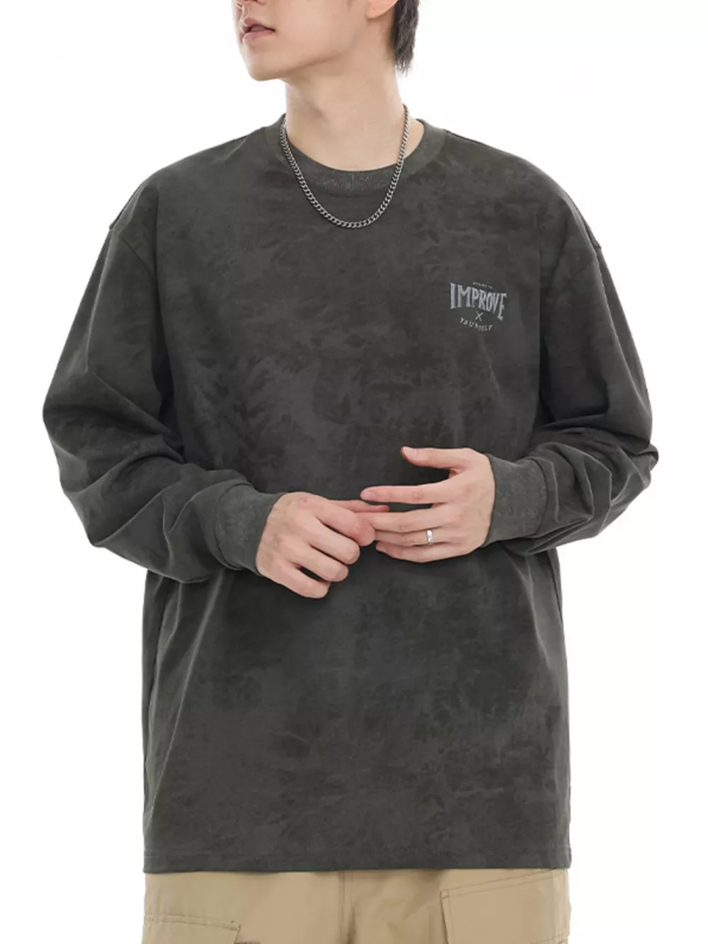 Men's Plus Size Vintage Wash Long Sleeve T-Shirt