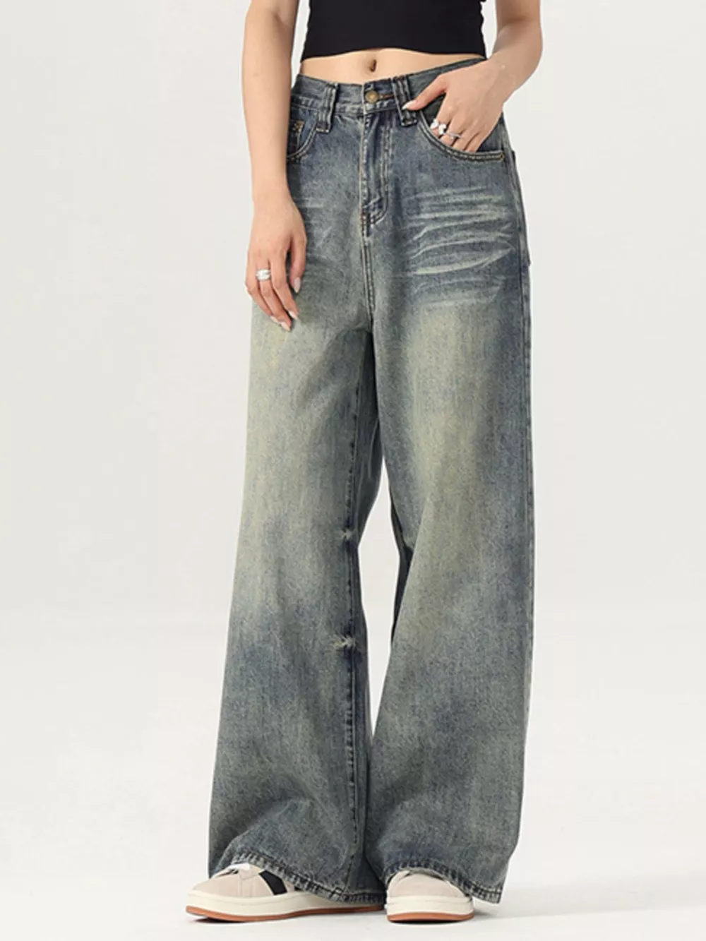Men's Full Size Wide Leg Vintage Wash Jeans Plus Size