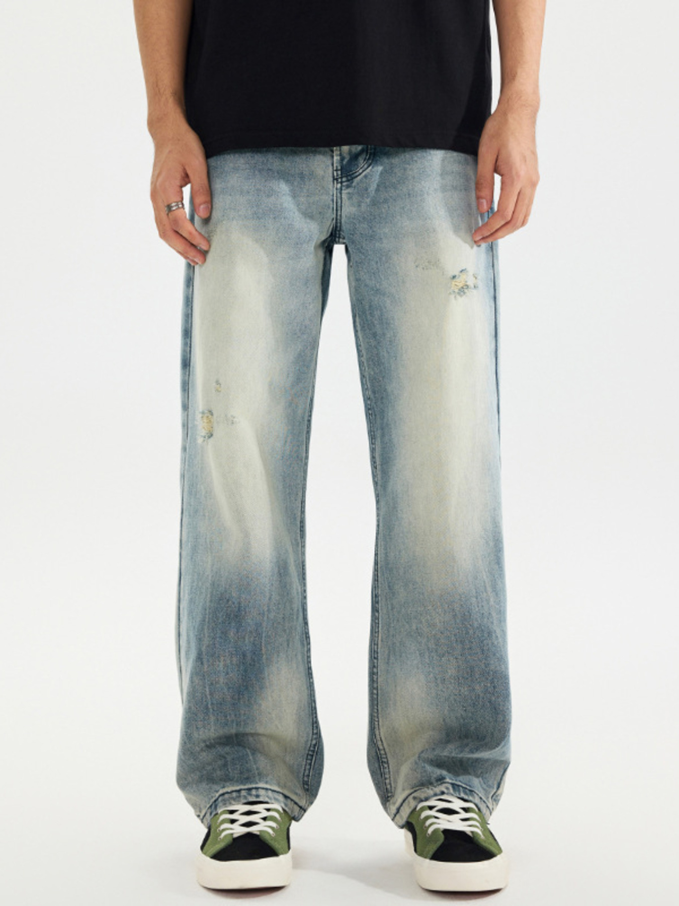 Men's Distressed Vintage Wash Loose Fit Jeans