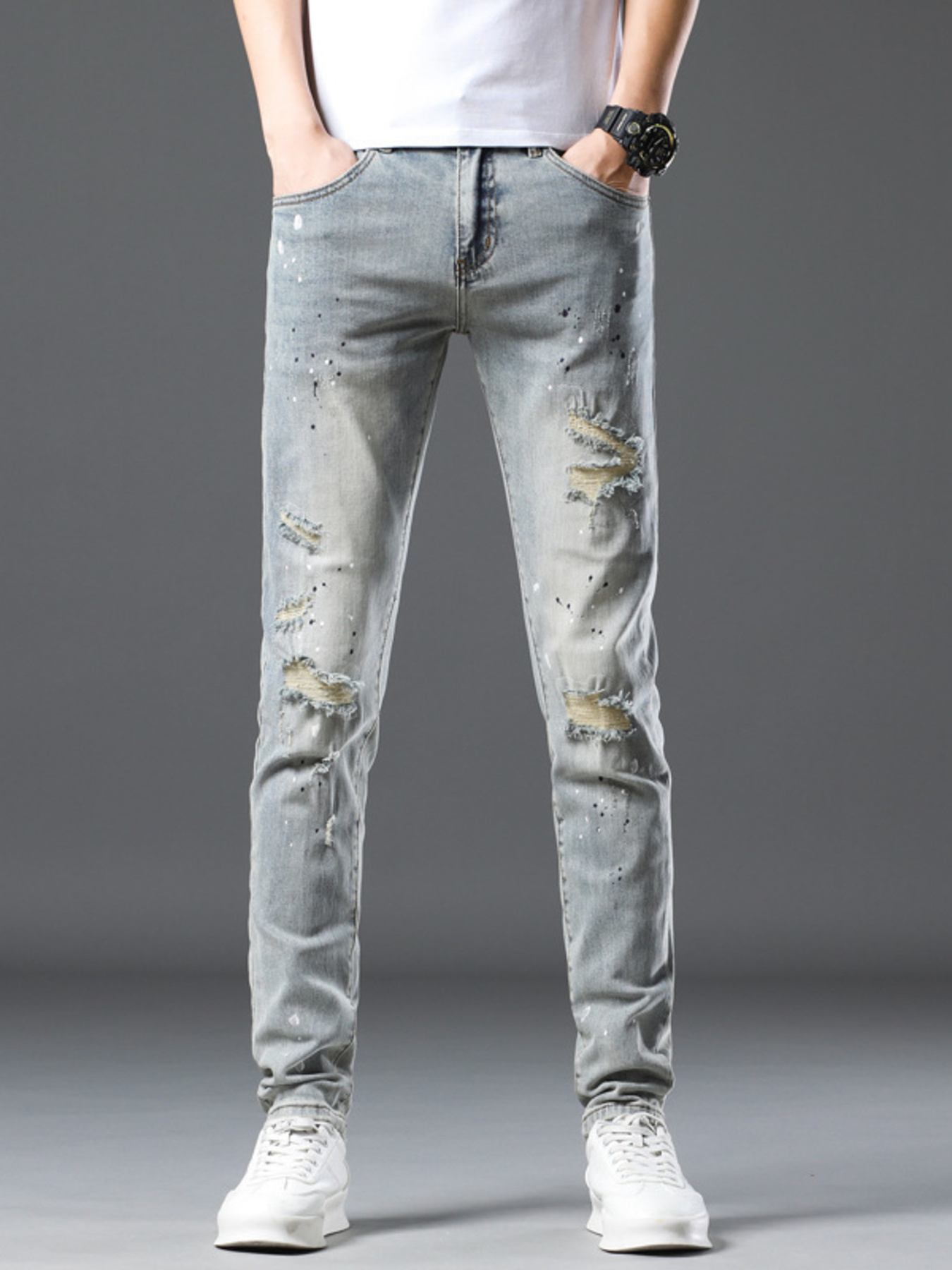 Men's Vintage Distressed Light Wash Skinny Jeans