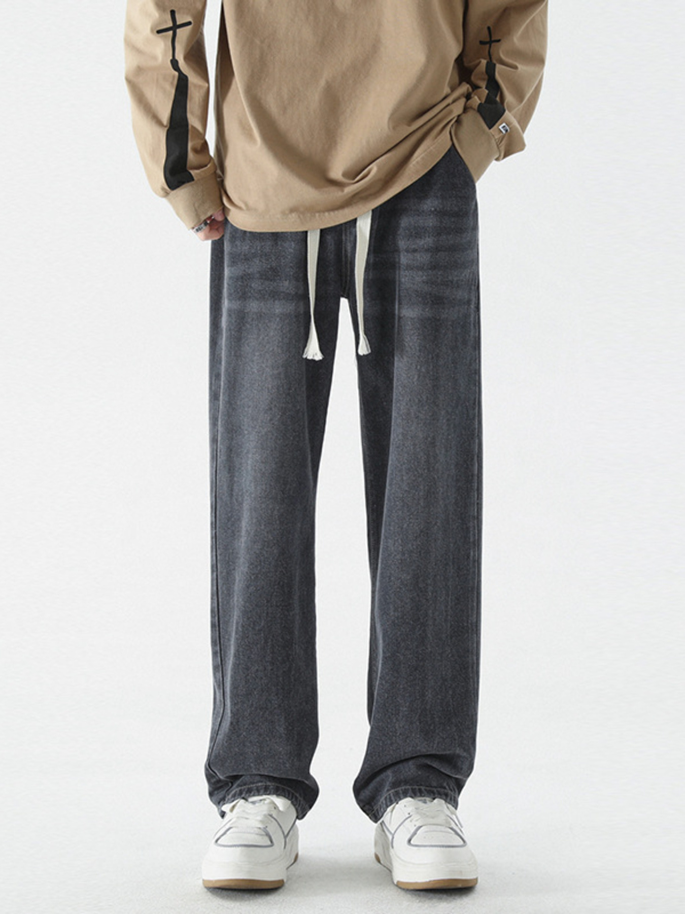 Men's Plus Size Vintage Wide Leg Jeans with Drawstring