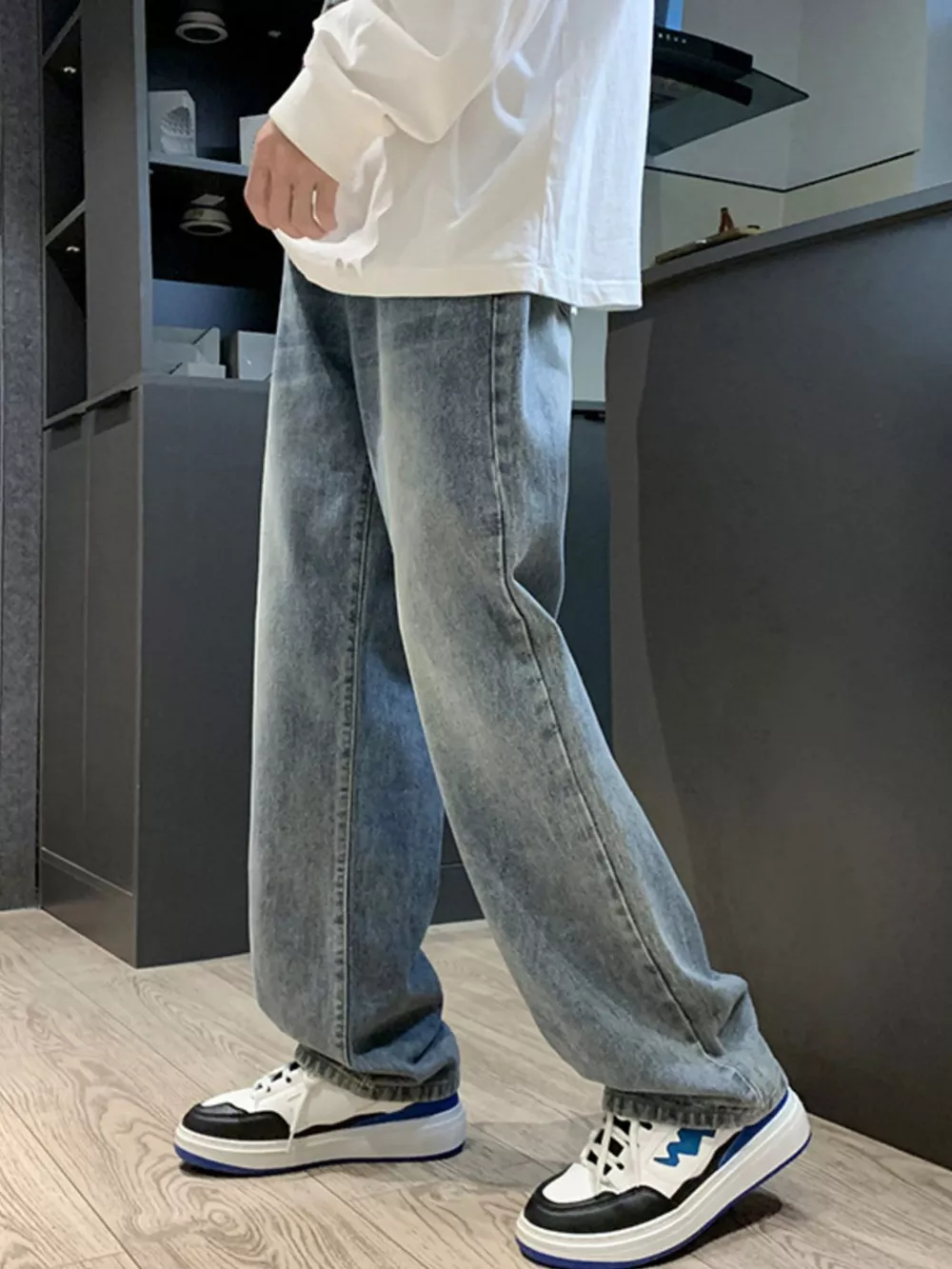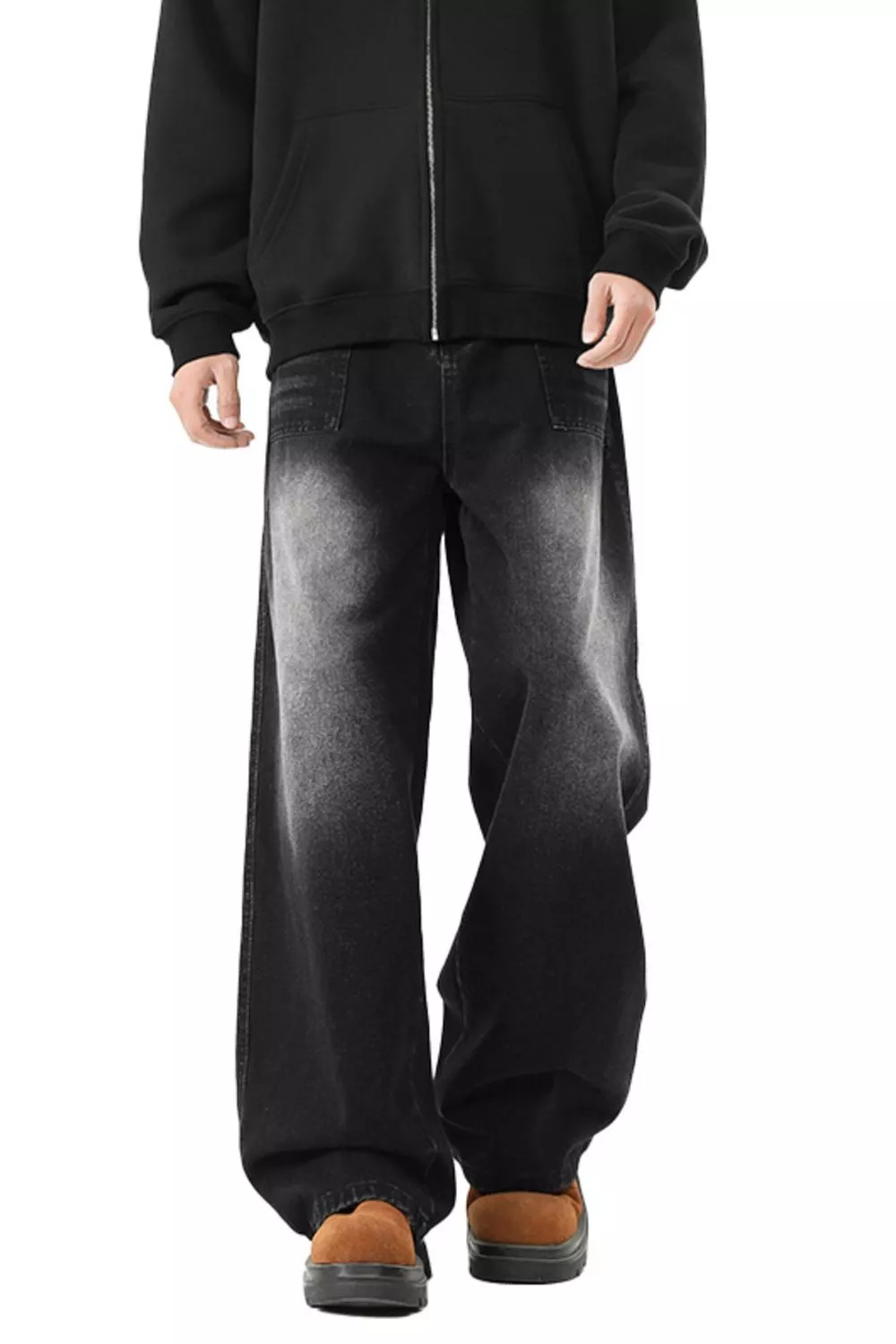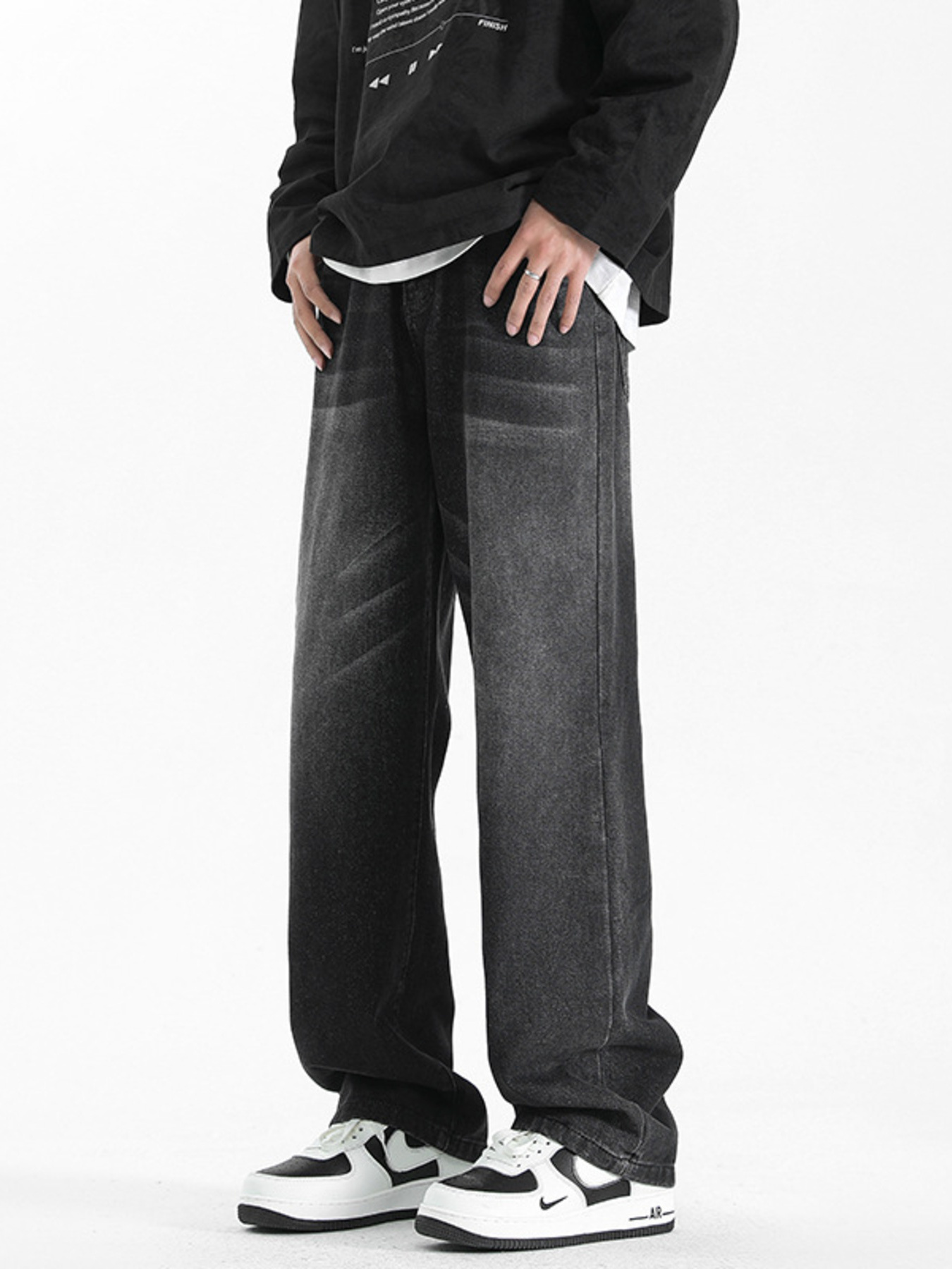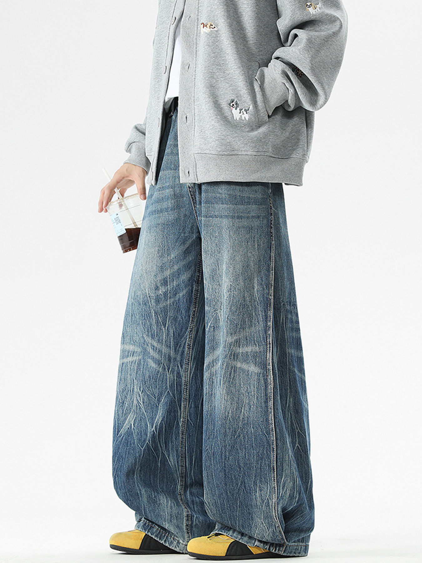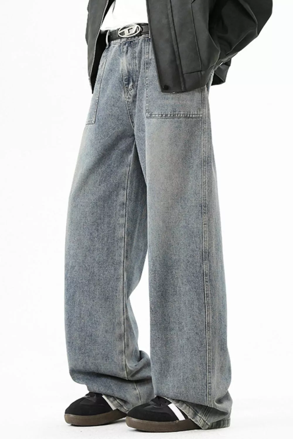 Men's Plus Size Vintage Wash Wide Leg Jeans