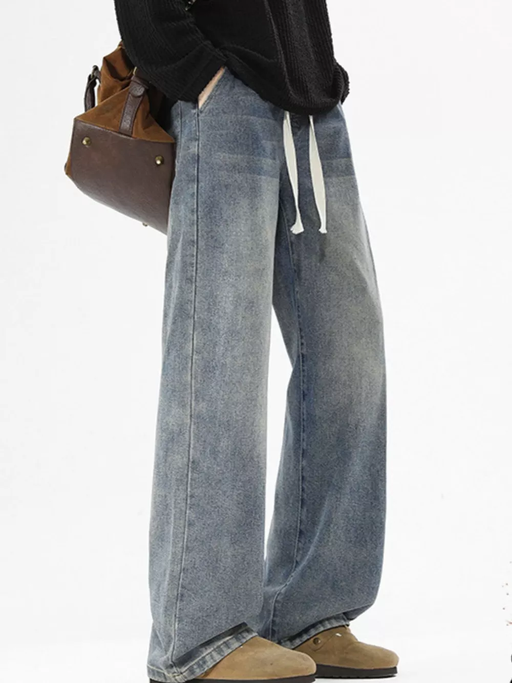 Men's Plus Size Vintage Wash Wide Leg Pants