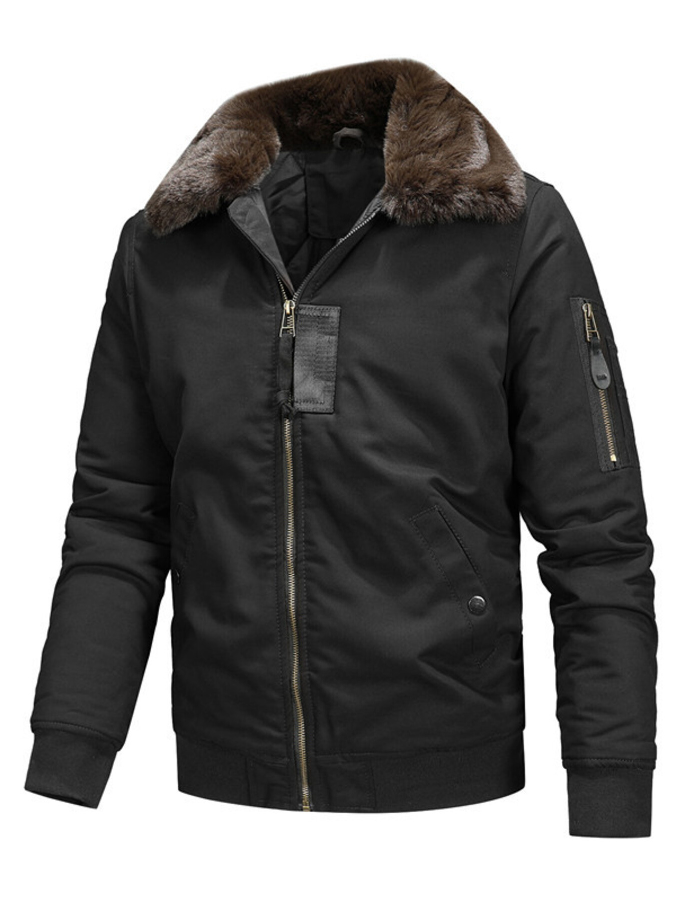 Men's Full Size Vintage Fur Collar Zip Up Jacket Plus Size