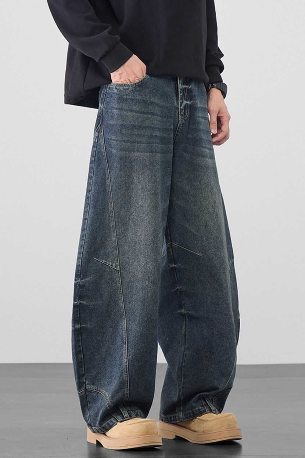 Men's Plus Size Vintage Wash Wide Leg Jeans