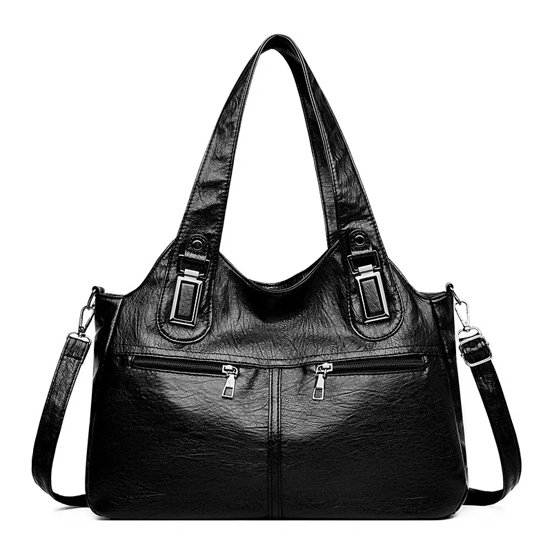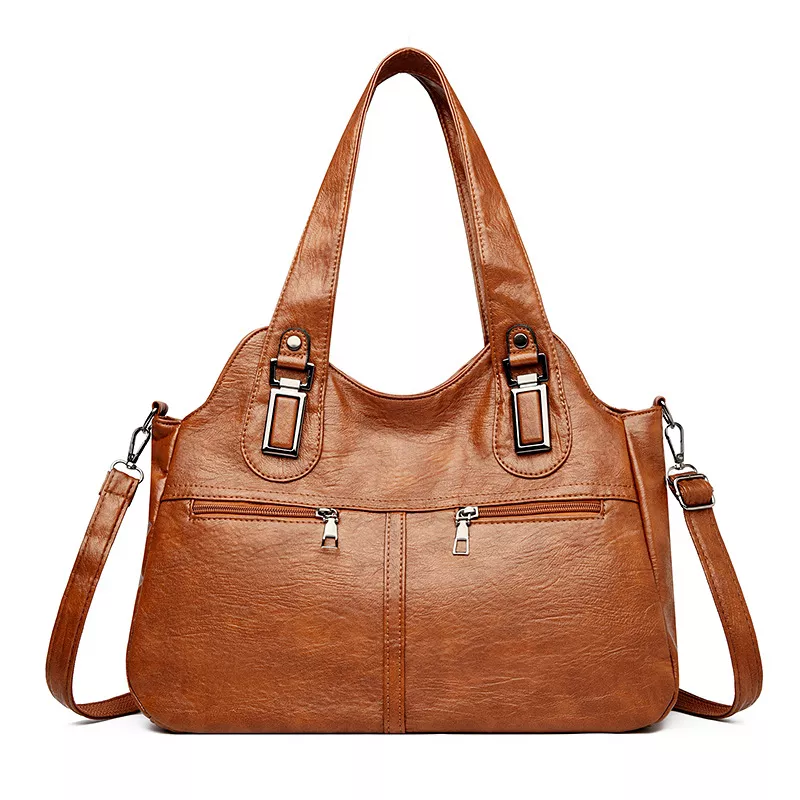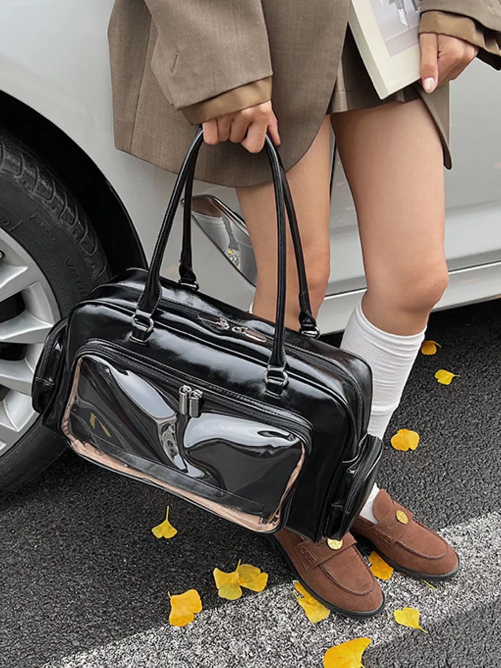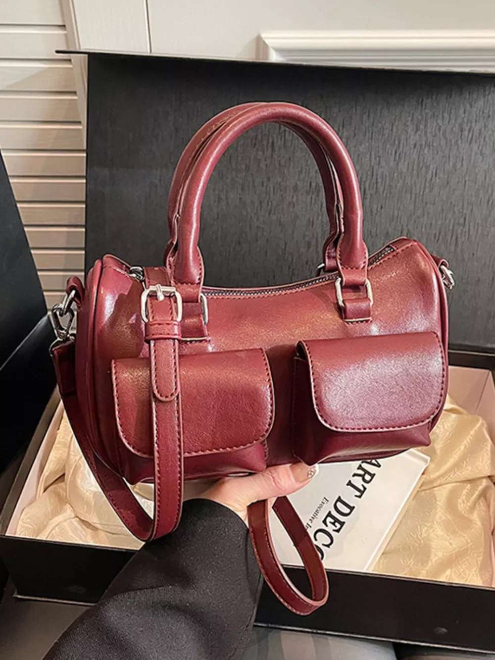 Vintage Buckle Decor Shoulder Bag with Plush Charm