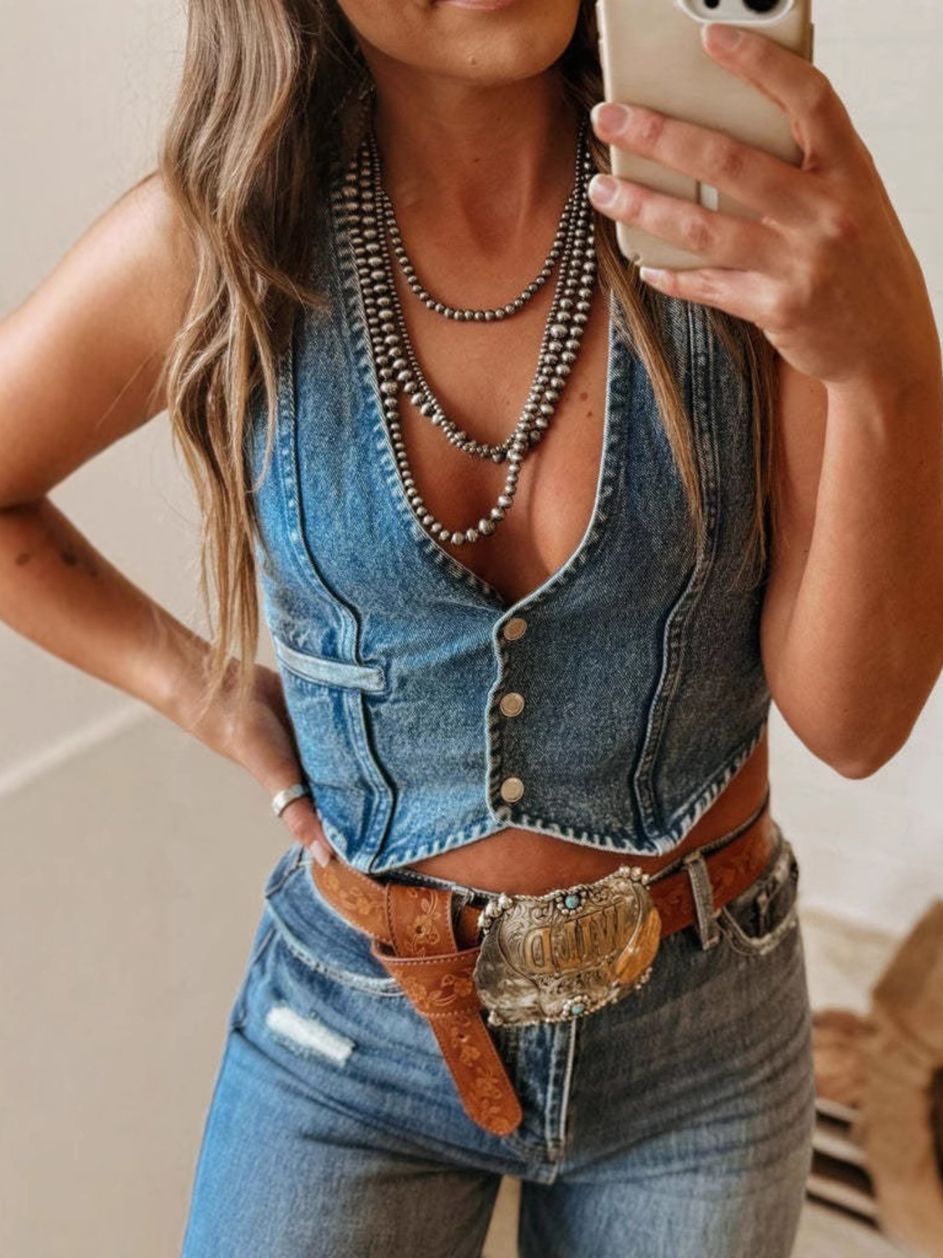 Men's Plus Size Vintage Washed Button Up Denim Vest