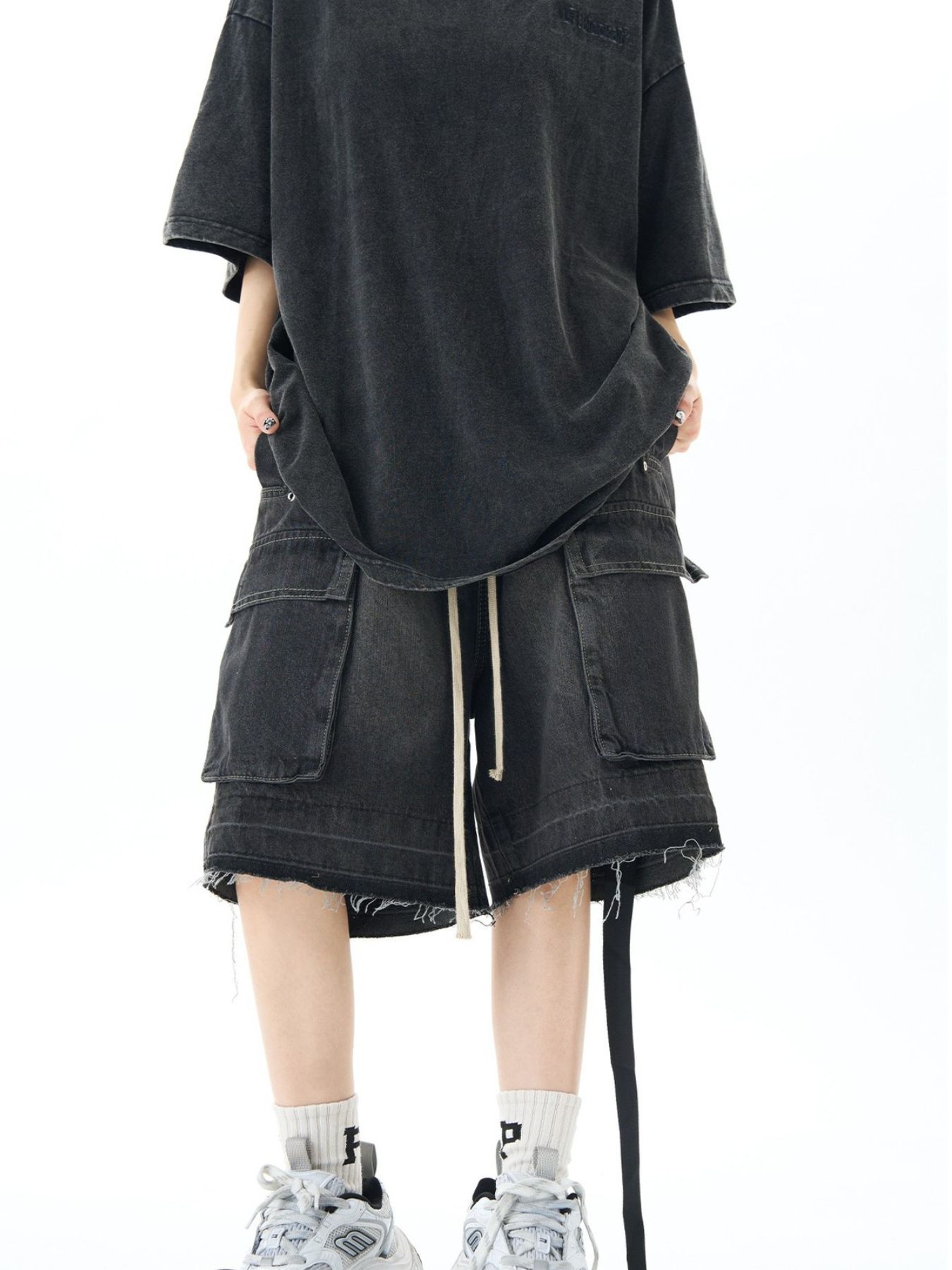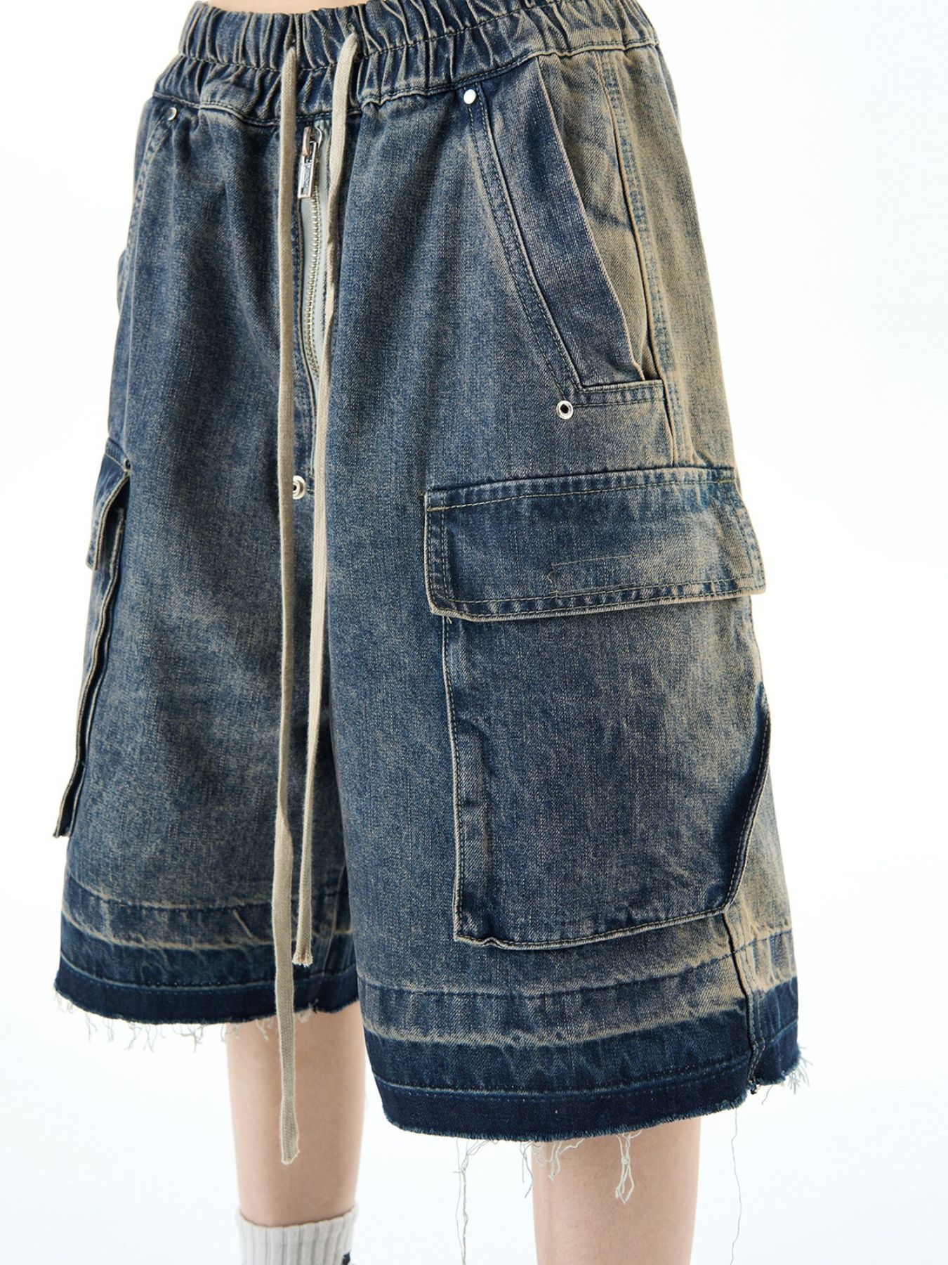 Men's Full Size Vintage Wash Cargo Denim Shorts Plus Size