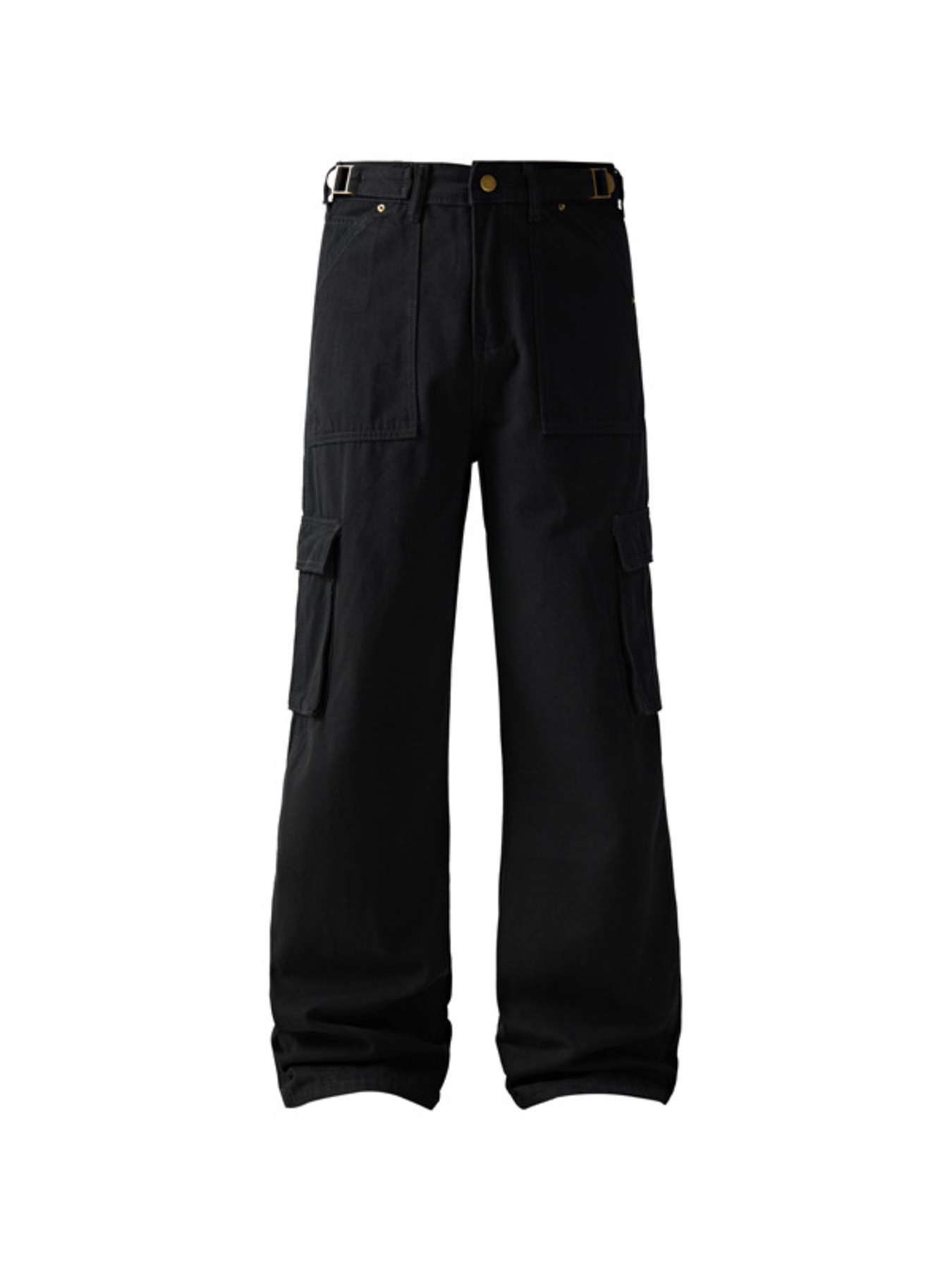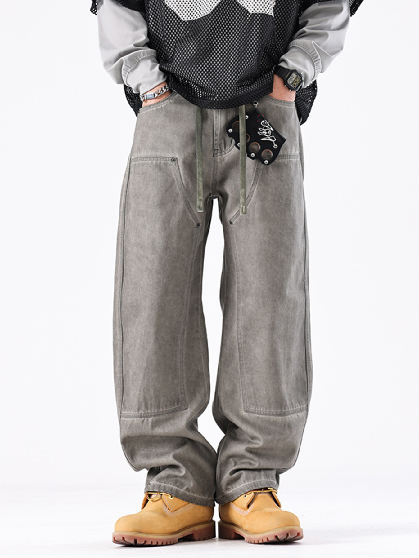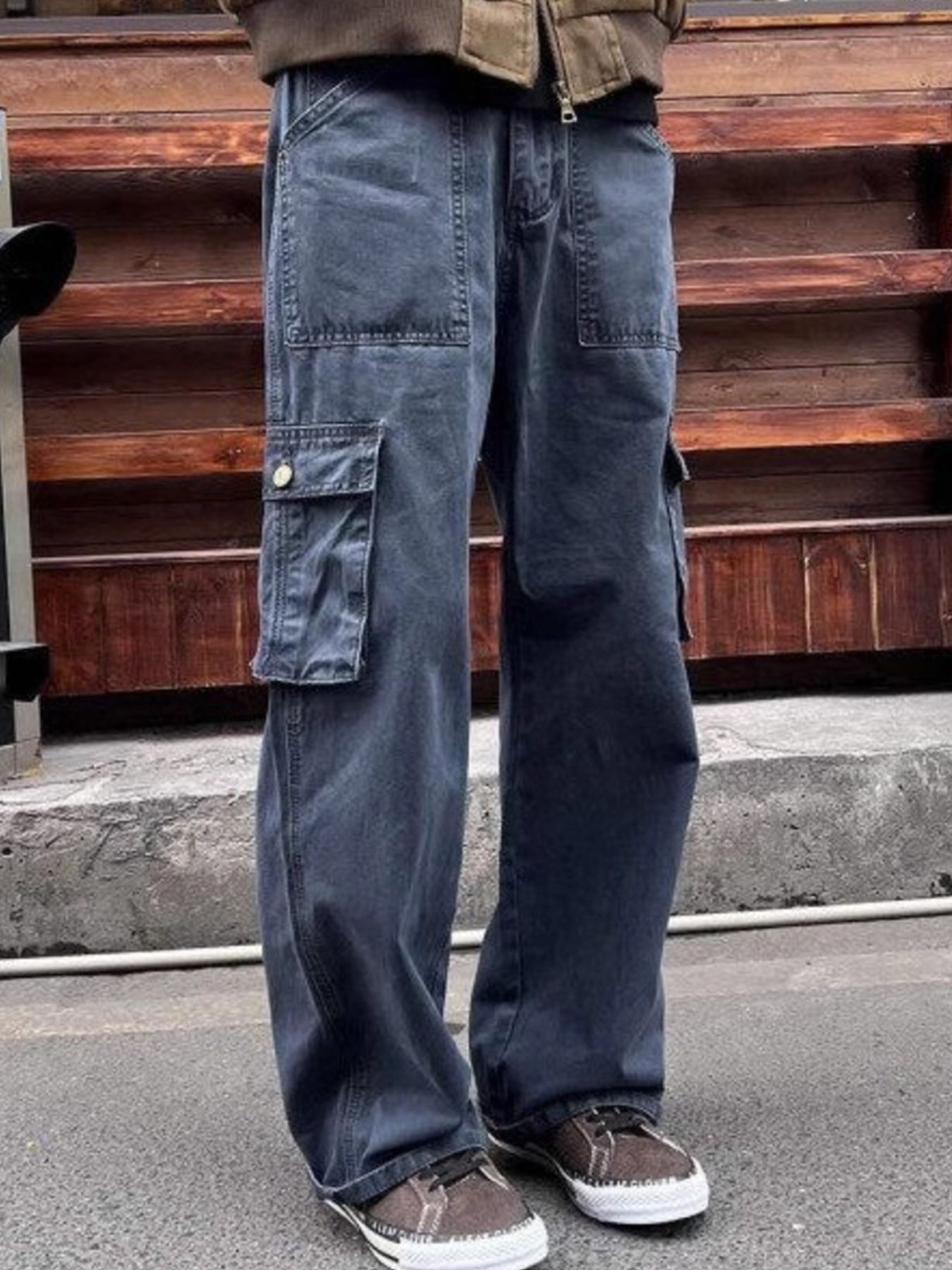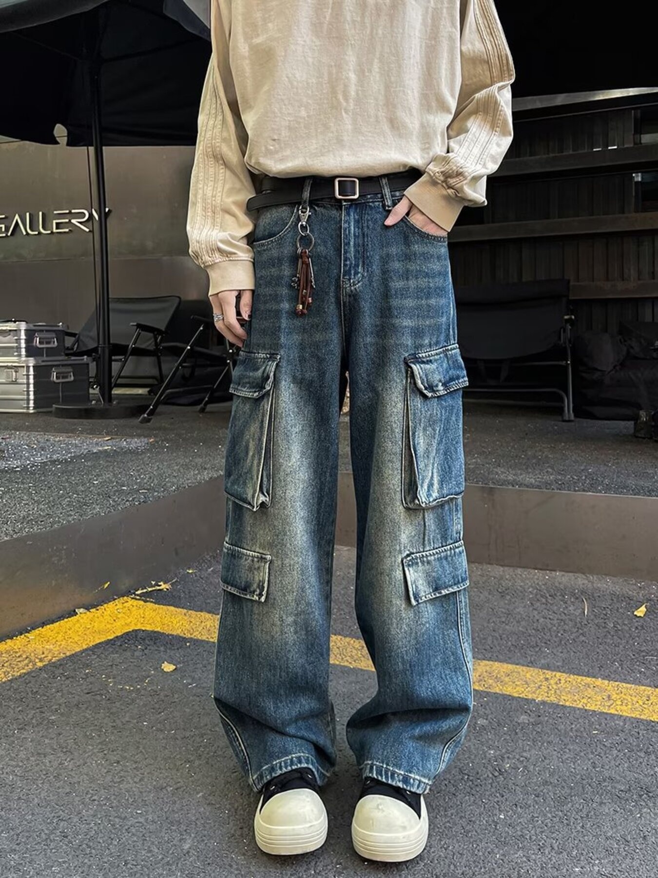 Men's Full Size Vintage Wash Wide Leg Cargo Jeans Plus Size