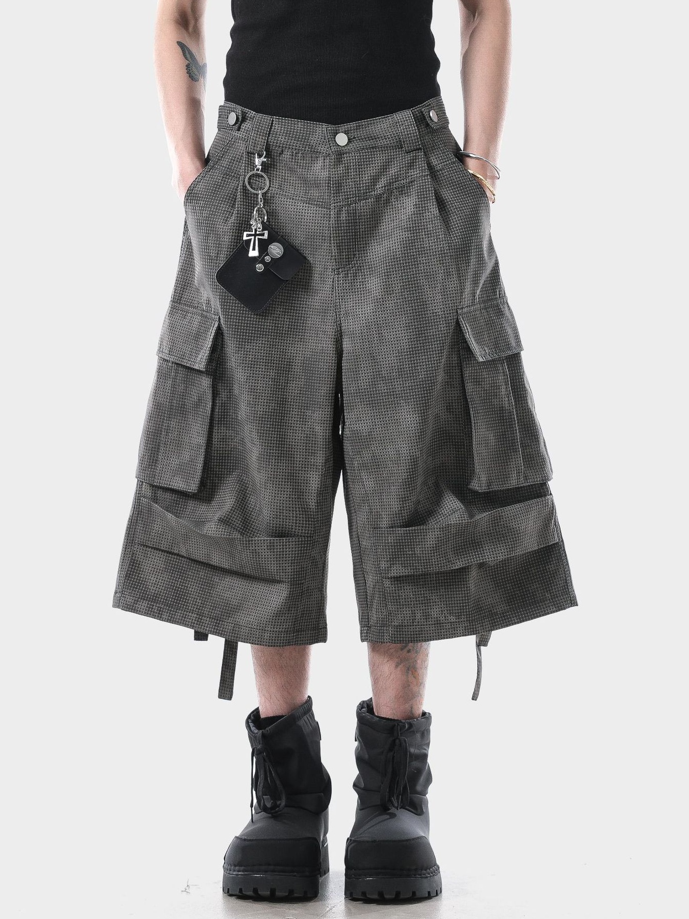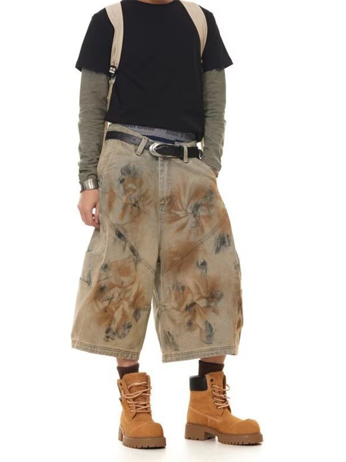 Men's Plus Size Vintage Wash Wide-Leg Denim Shorts