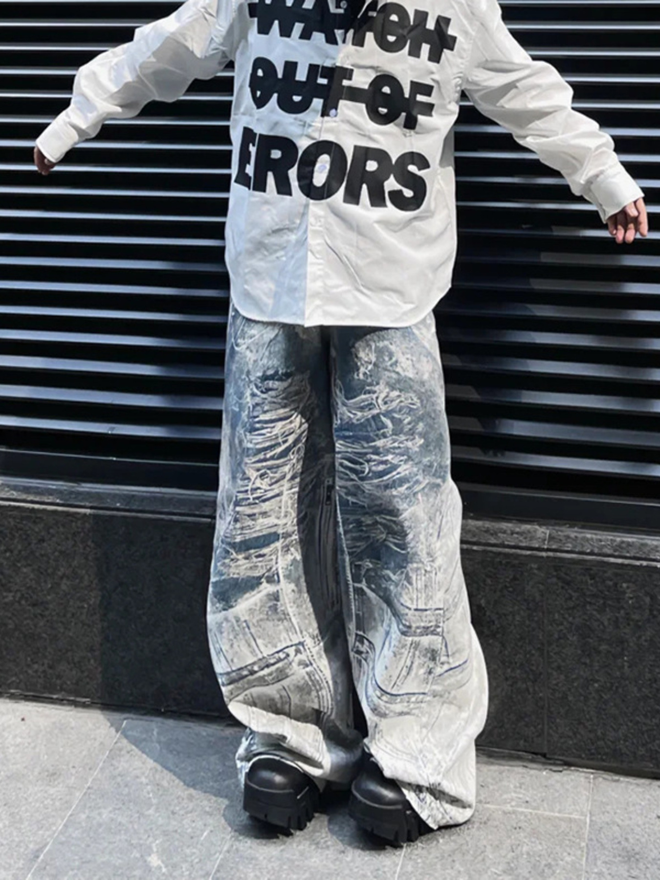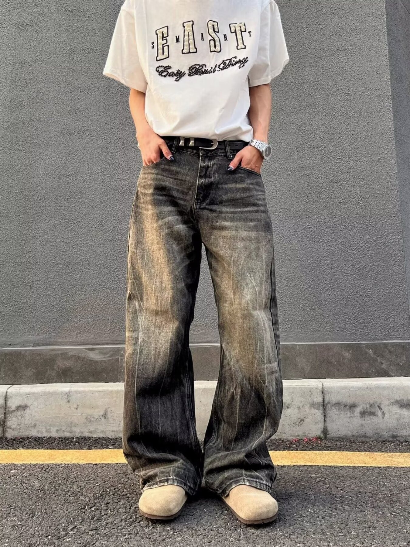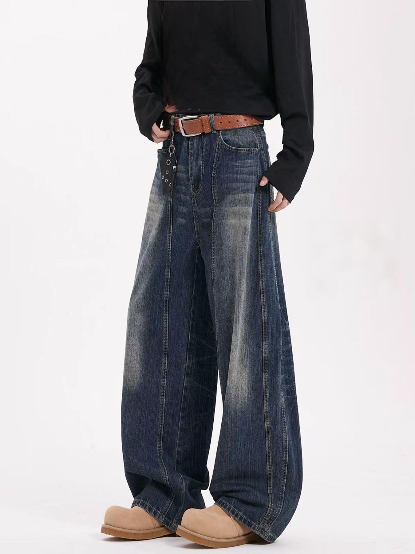 Men's Full Size Vintage Wash Wide Leg Jeans Plus Size