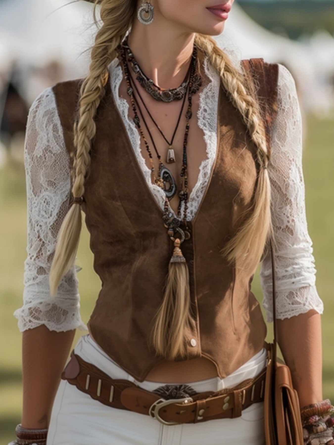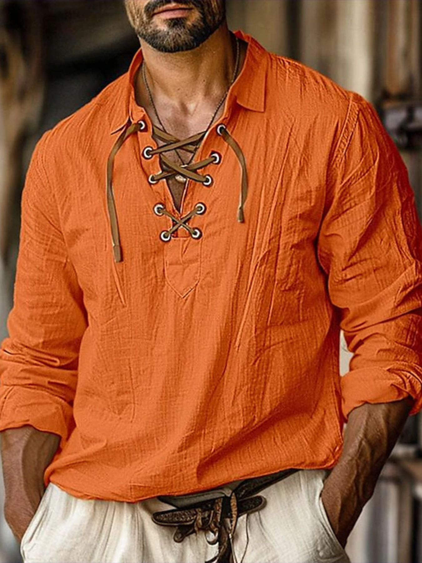 Men's Full Size Vintage Lace-Up Long Sleeve Blouse Plus Size