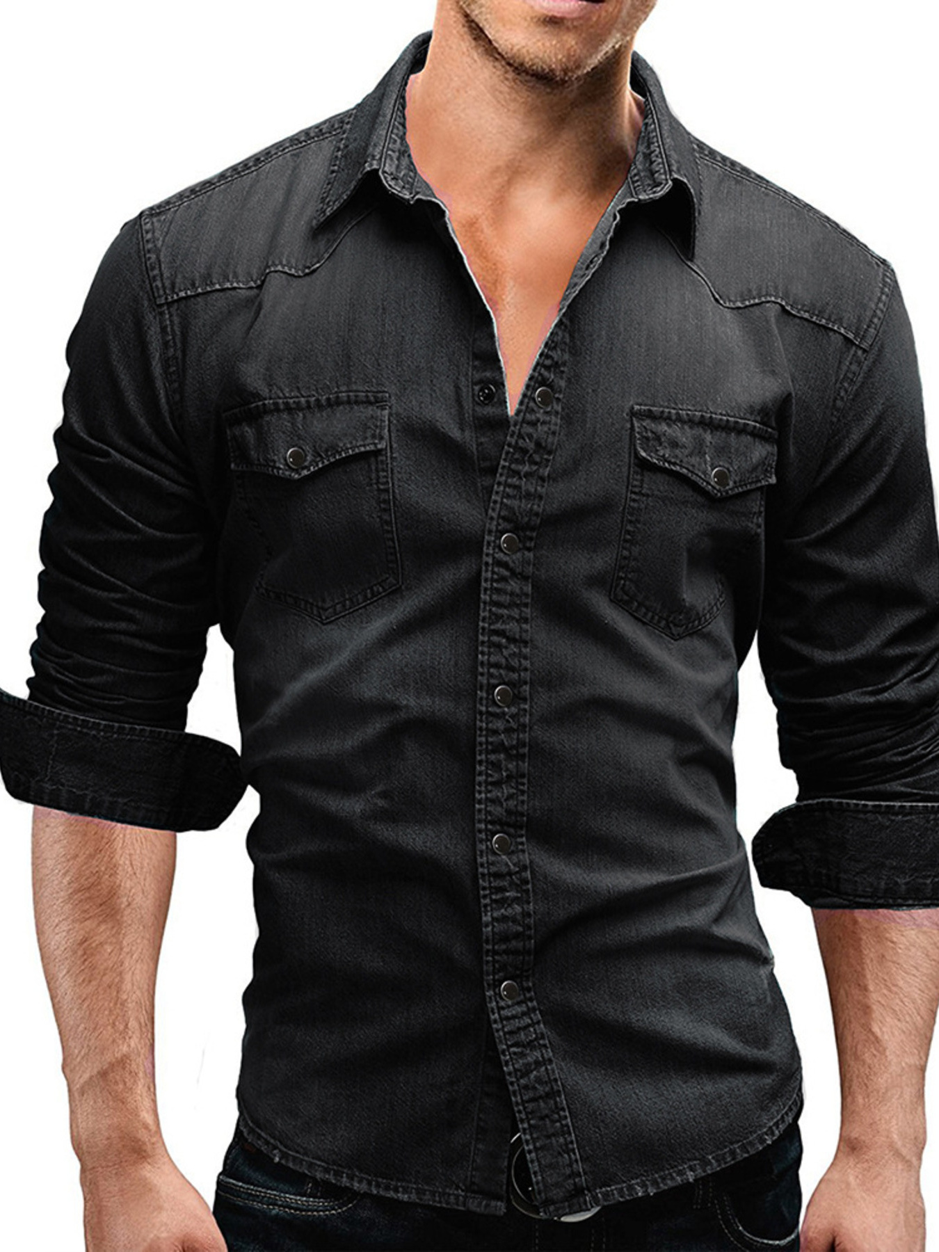 Men's Plus Size Vintage Washed Button Up Denim Shirt