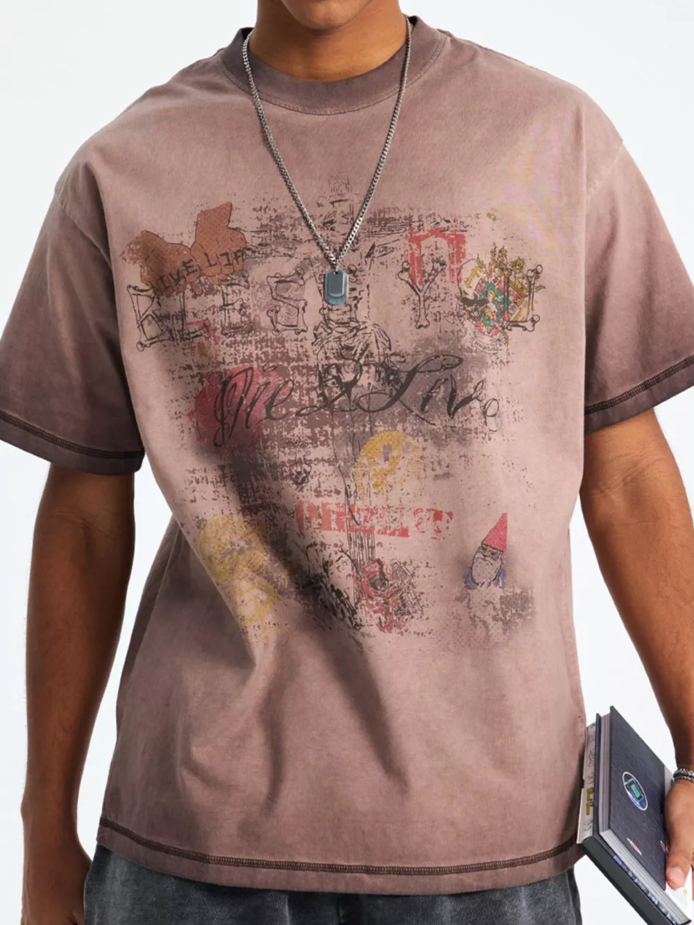 Men's Graphic Round Neck Vintage Wash T-Shirt