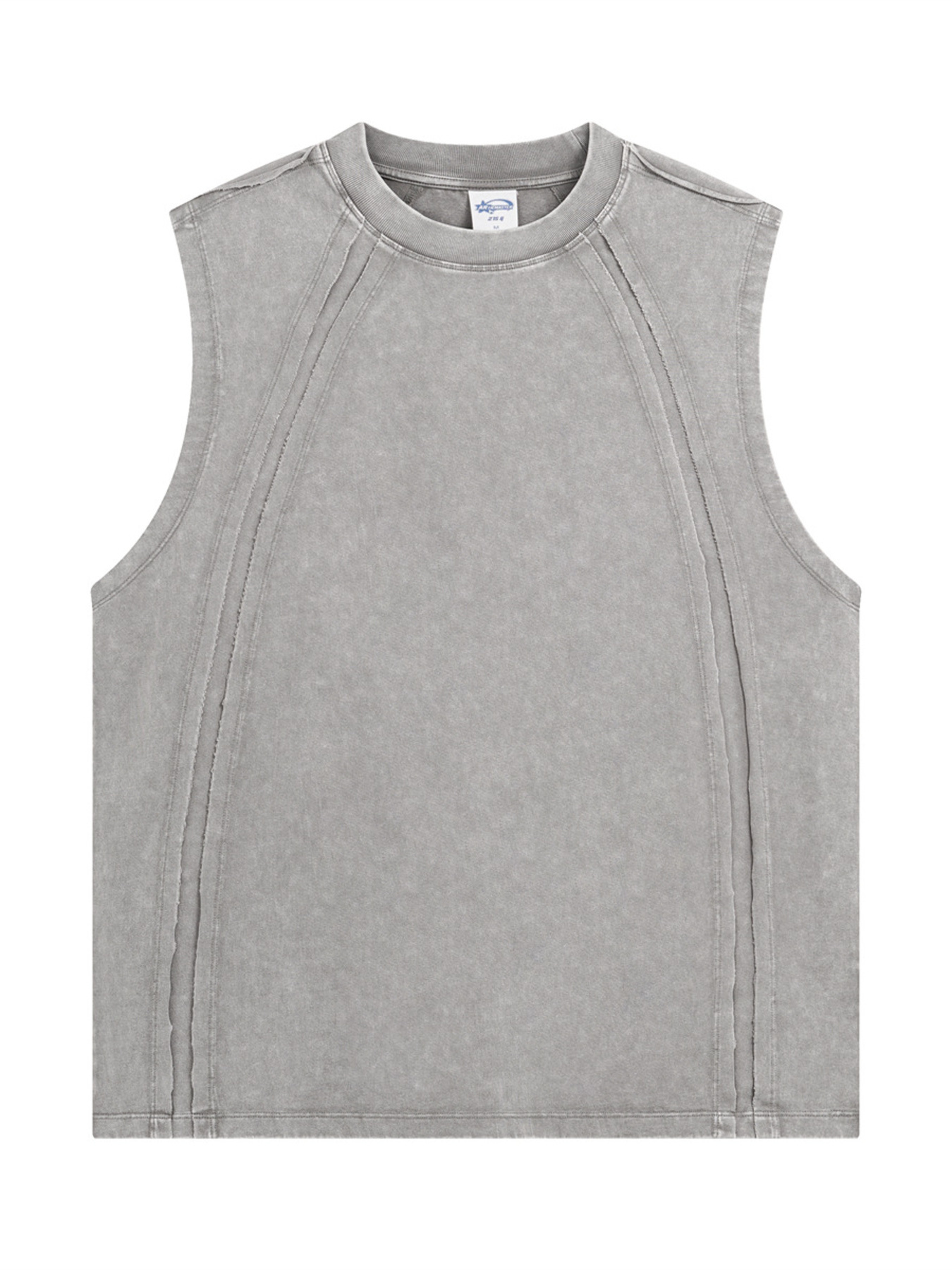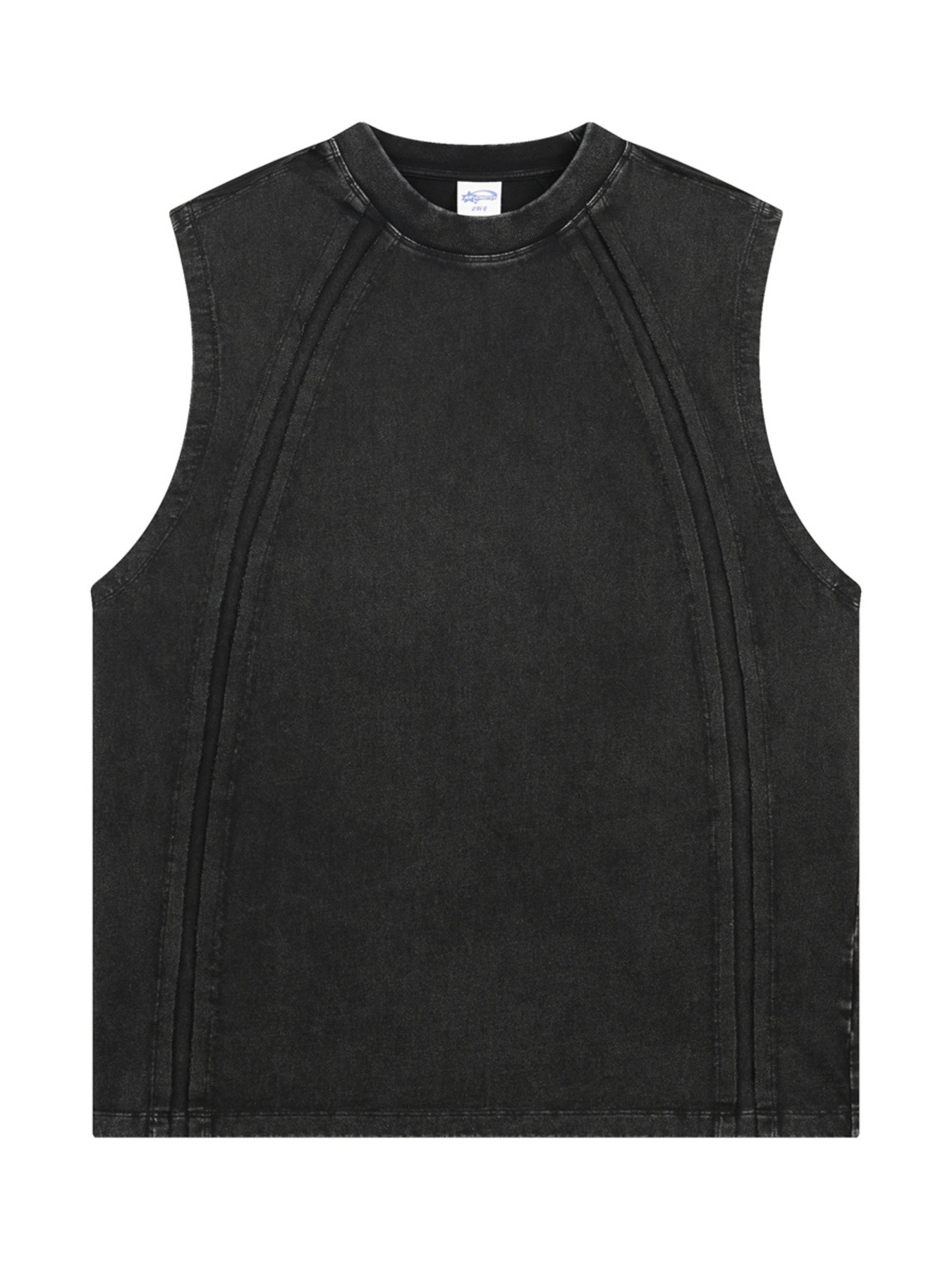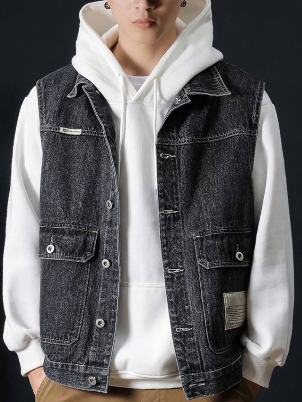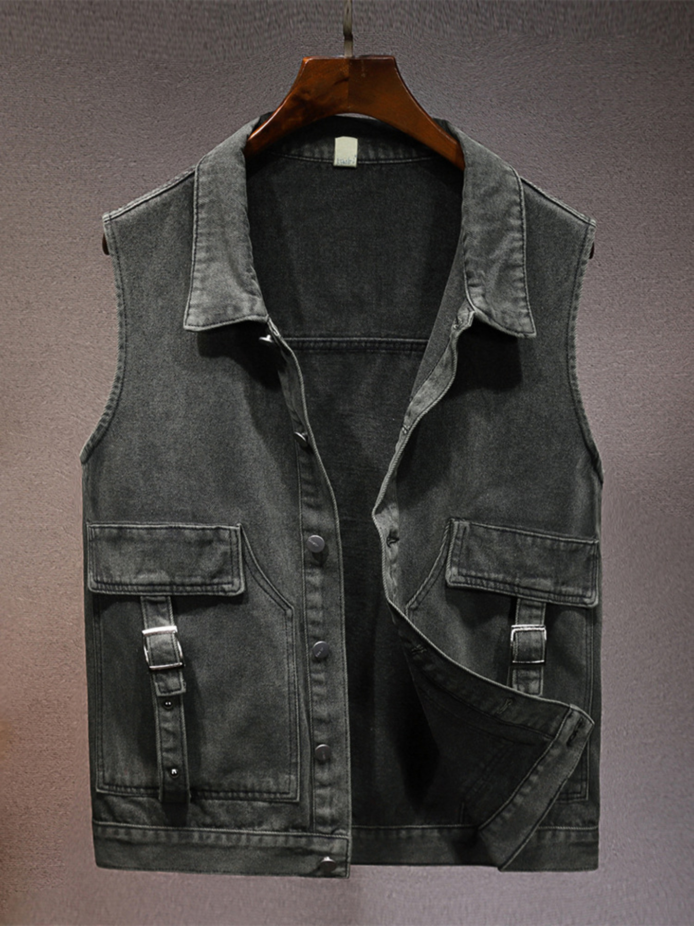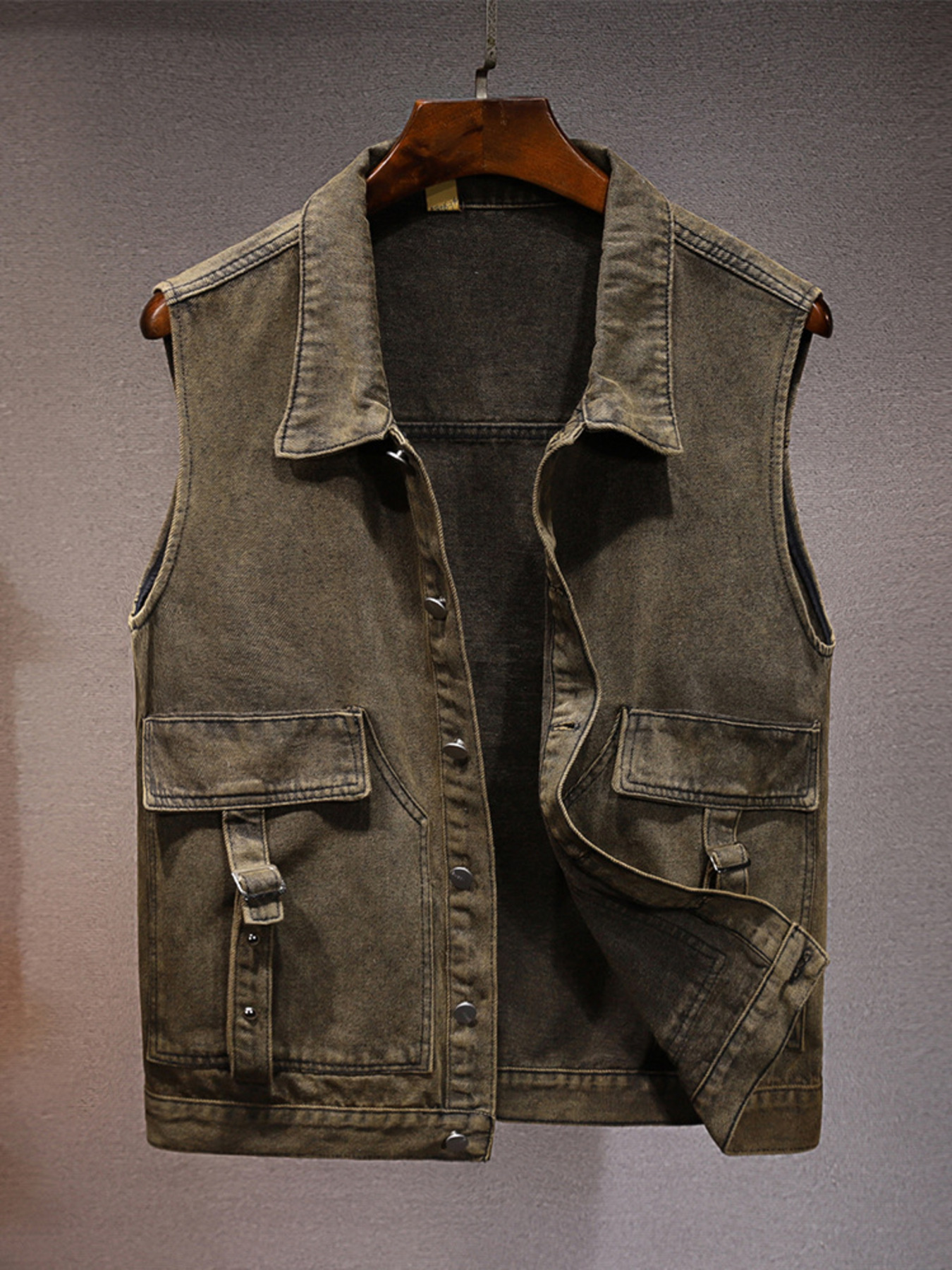 Men's Plus Size Vintage Washed Denim Vest with Pockets