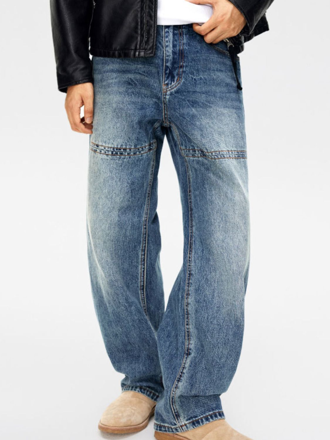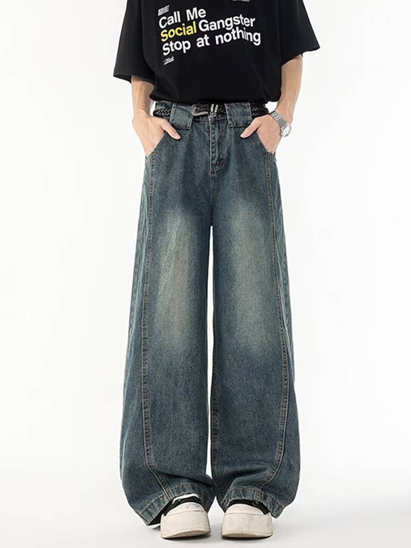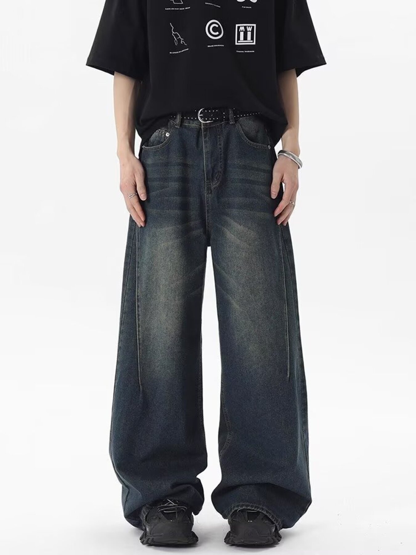 Men's Full Size Vintage Wash Wide Leg Jeans Plus Size