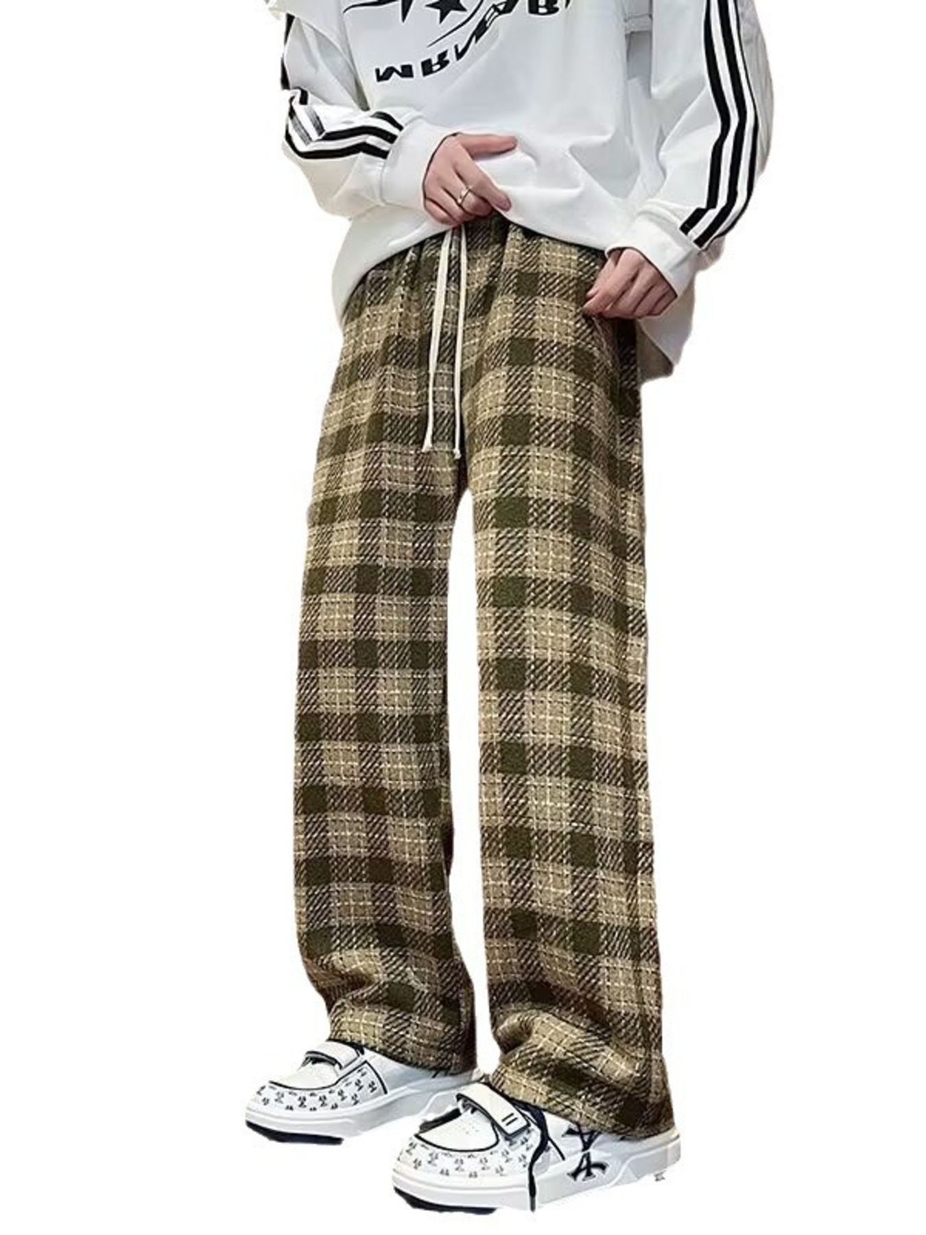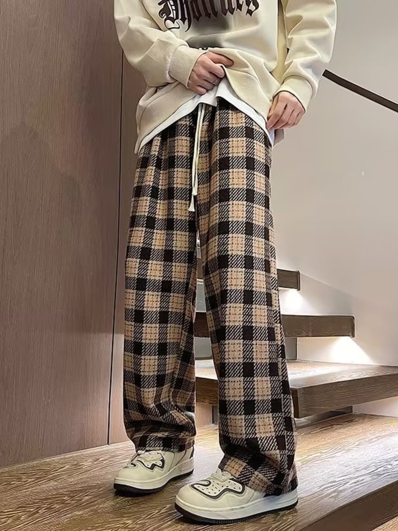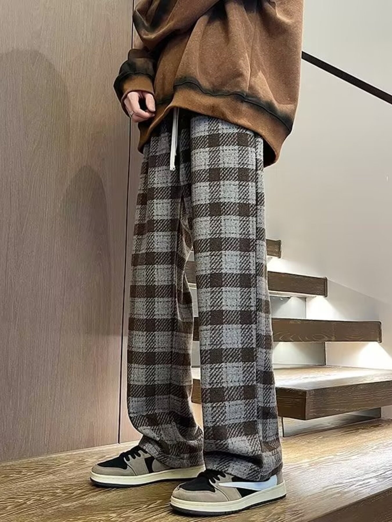 Men's Plus Size Vintage Plaid Wide Leg Pants