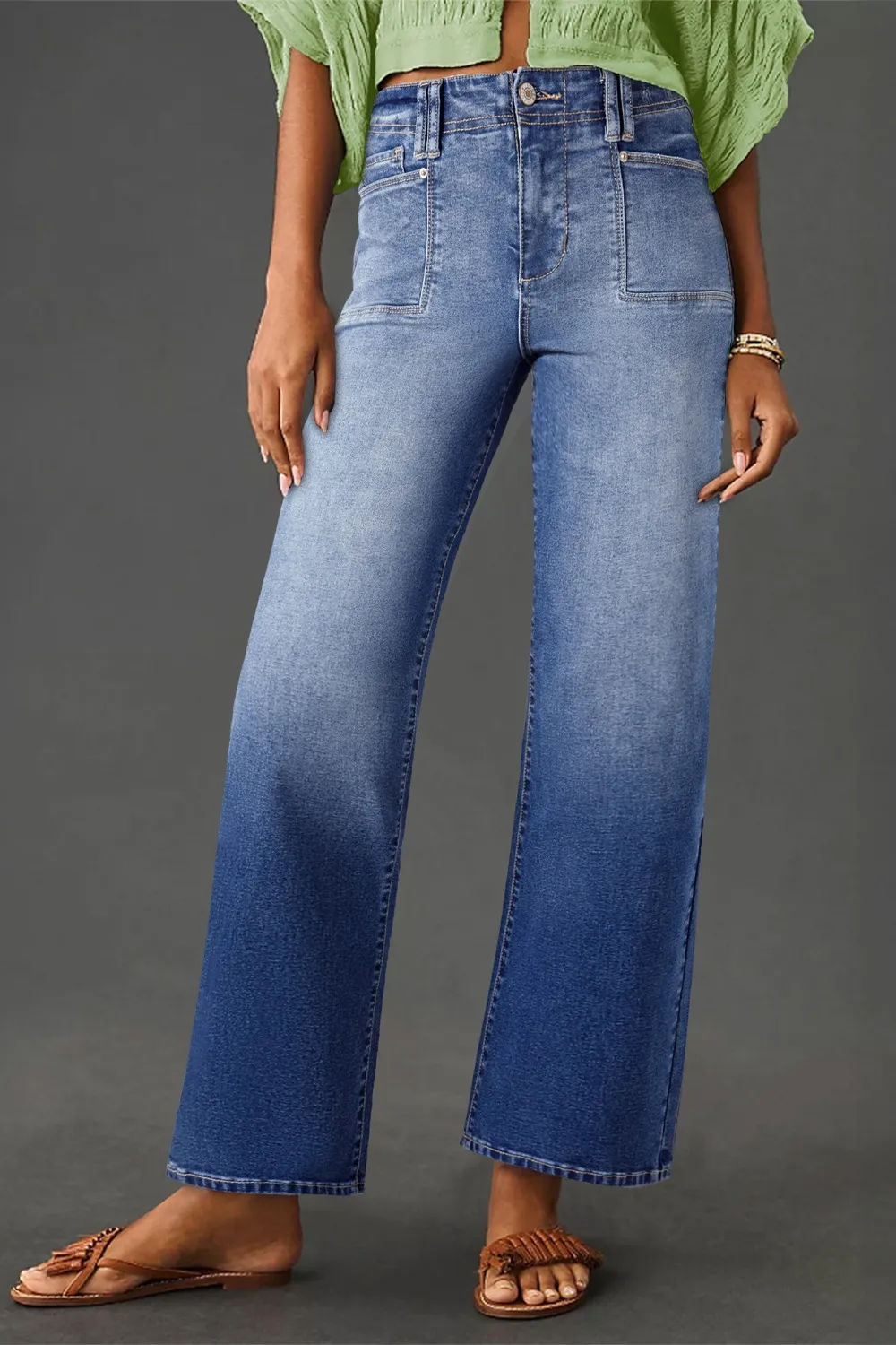 High-Waisted Wide-Leg Vintage Wash Jeans