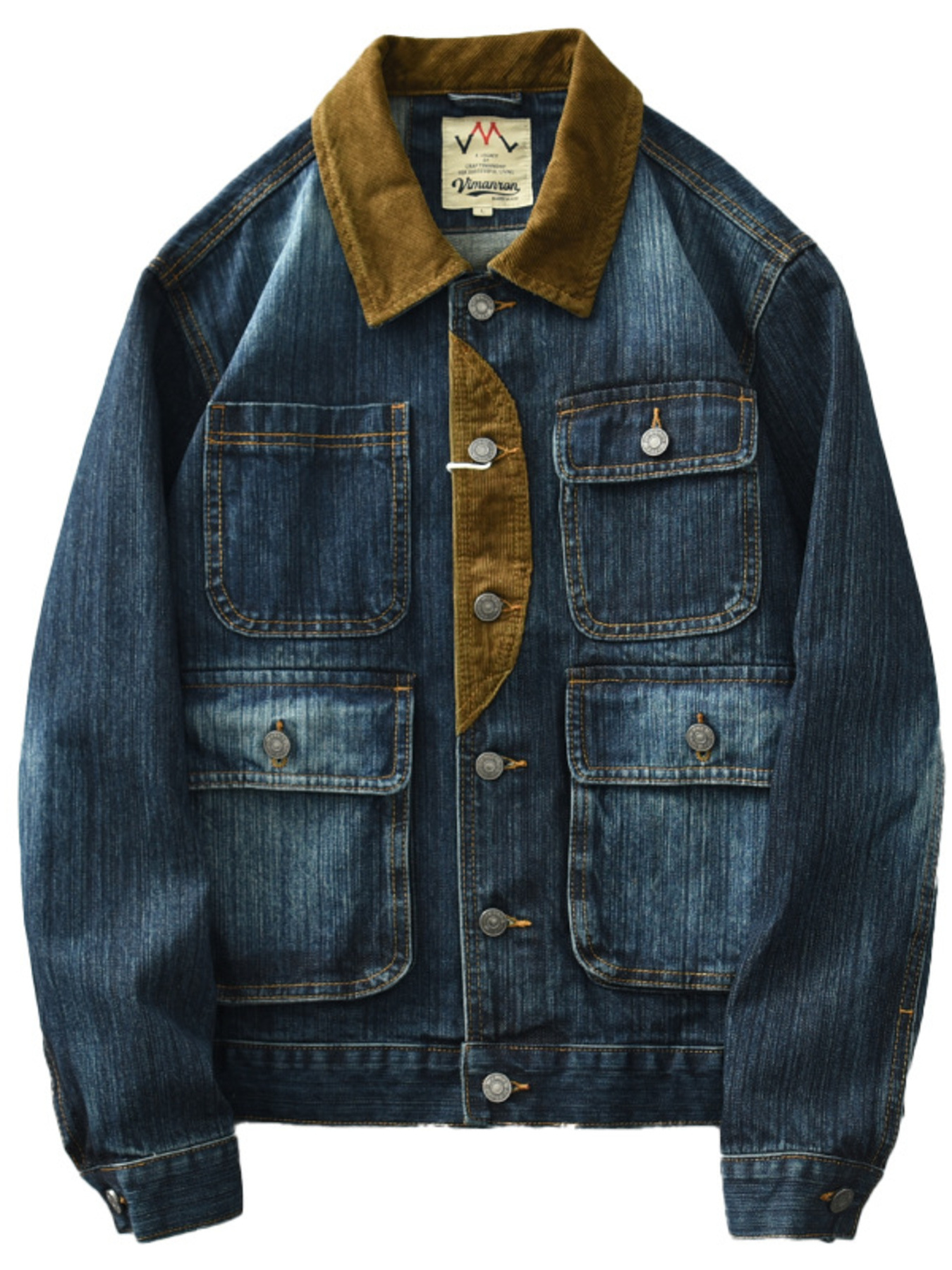 Men's Plus Size Vintage Corduroy Collar Denim Jacket