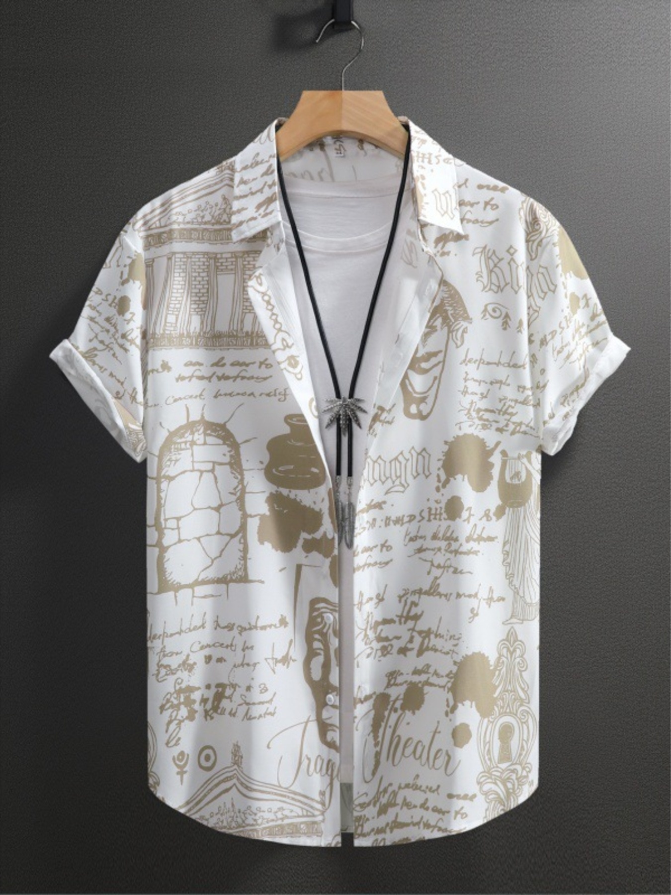 Men's Vintage Art Print Short Sleeve Button-Up Shirt