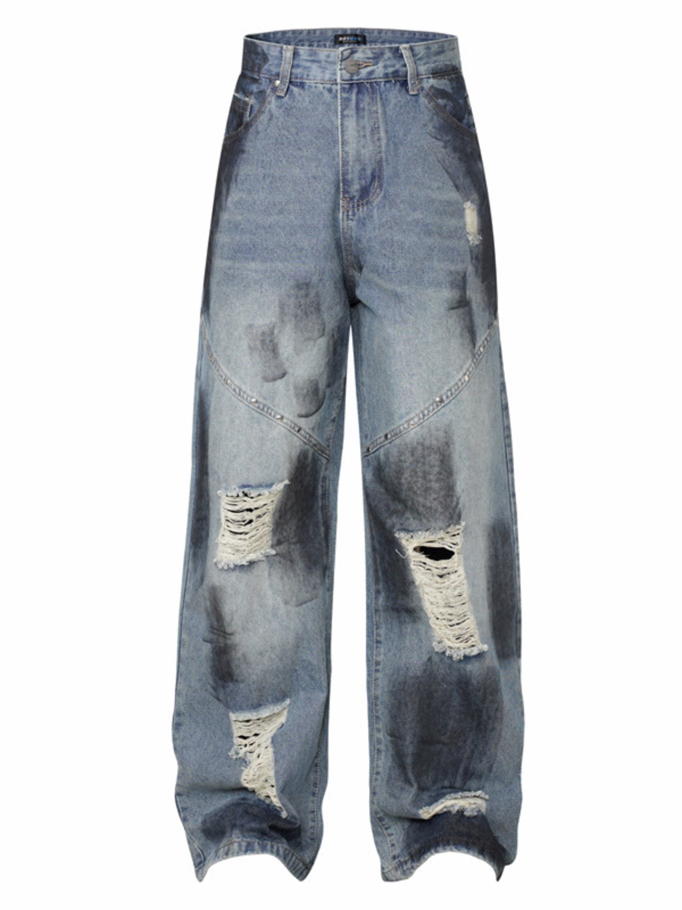 Men's Distressed Wide Leg Vintage Wash Jeans