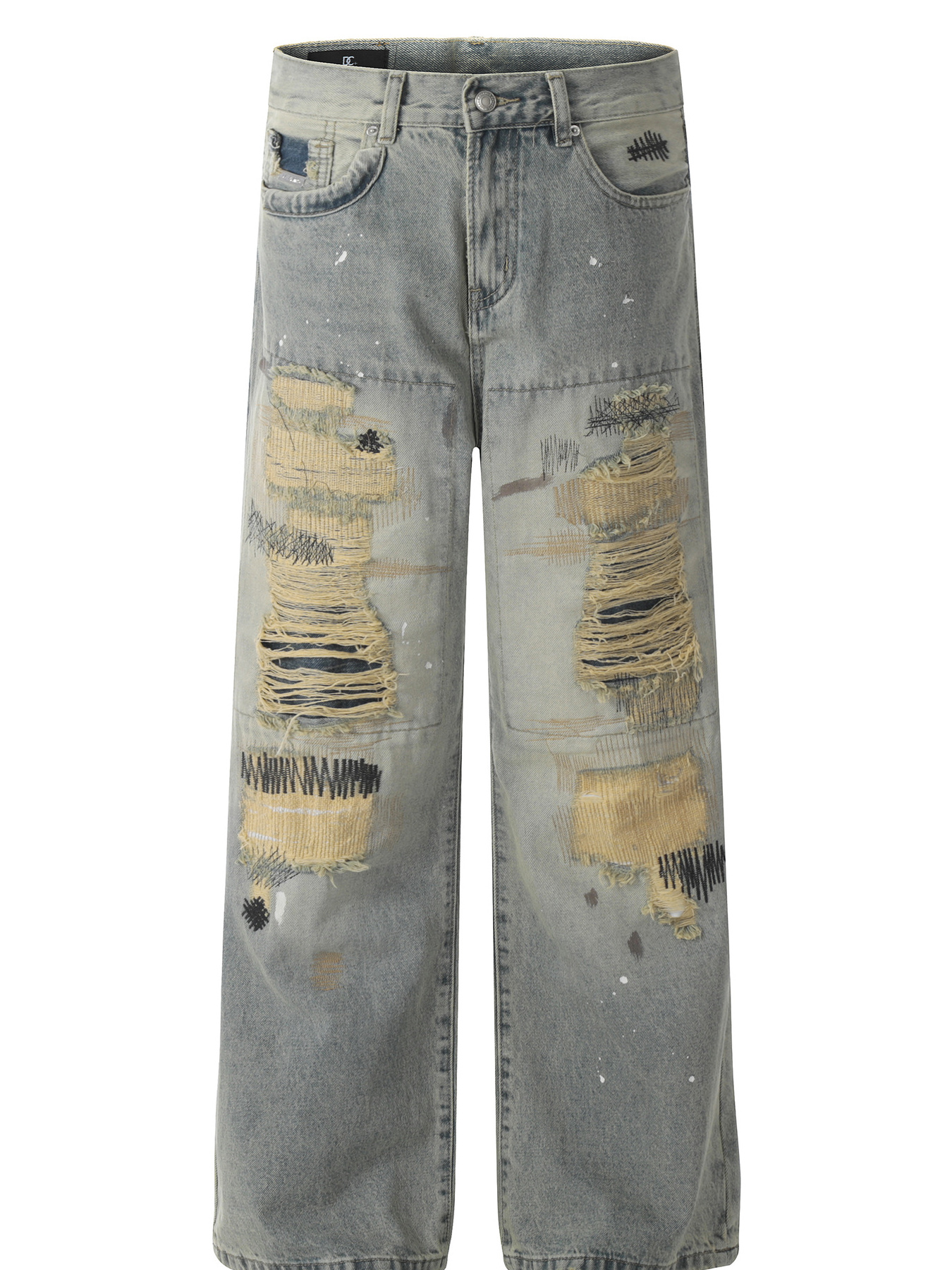 Men's Vintage Distressed Wide Leg Jeans
