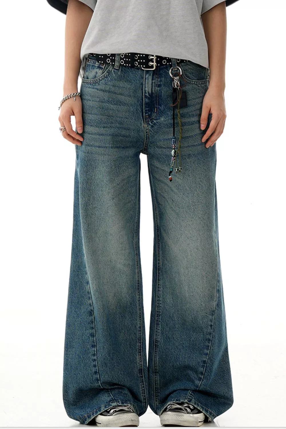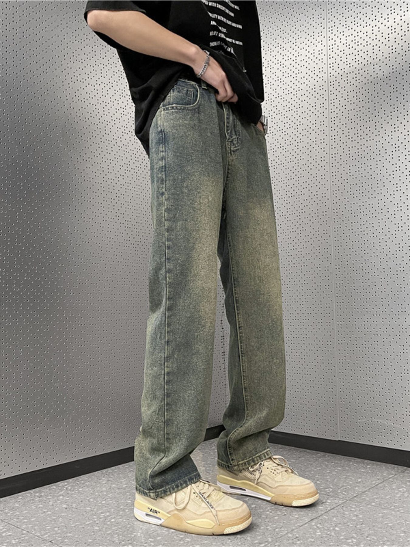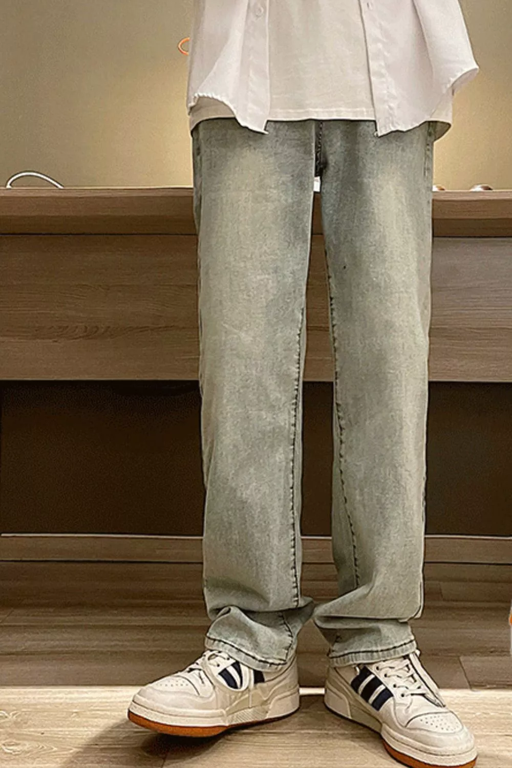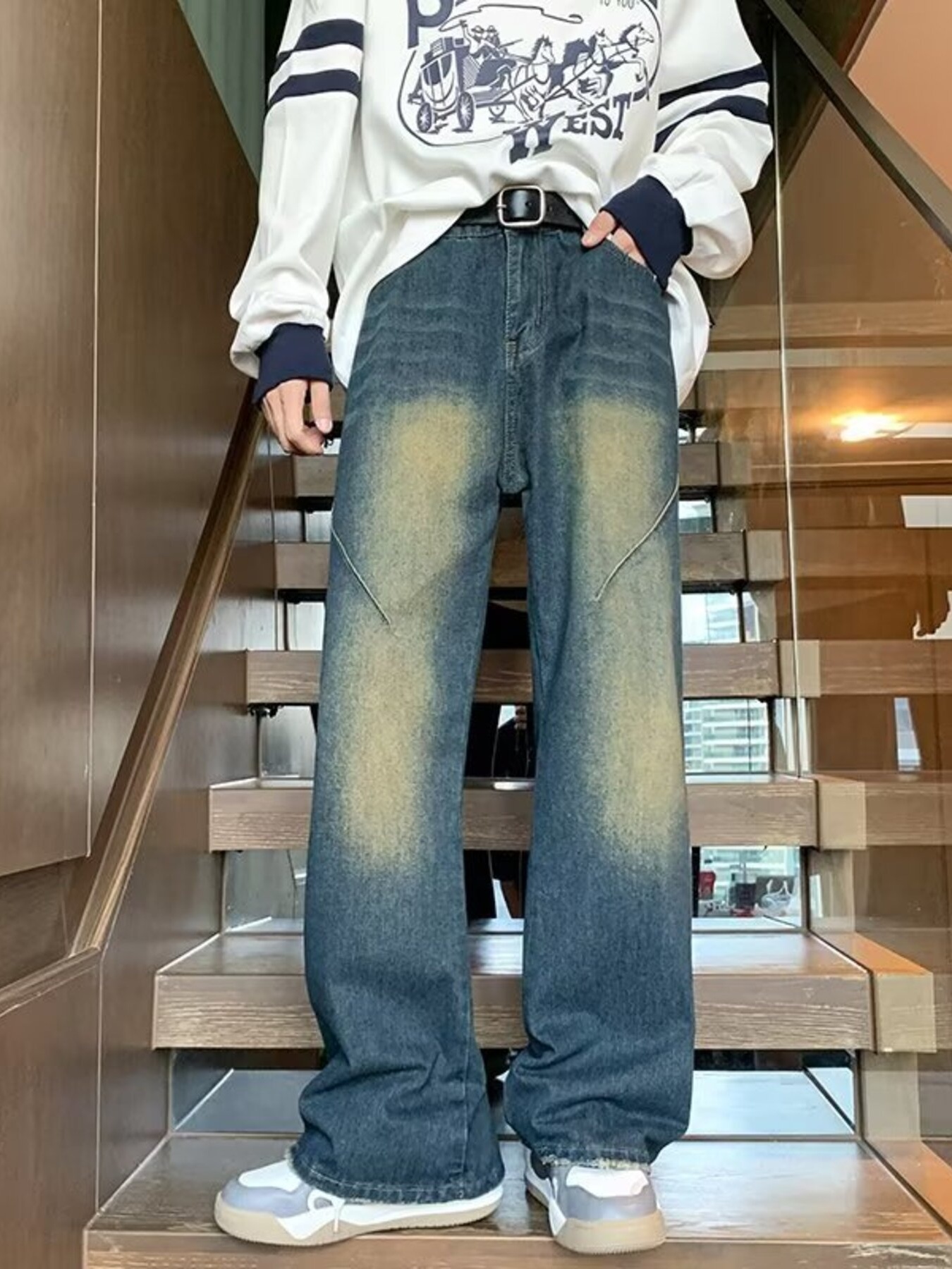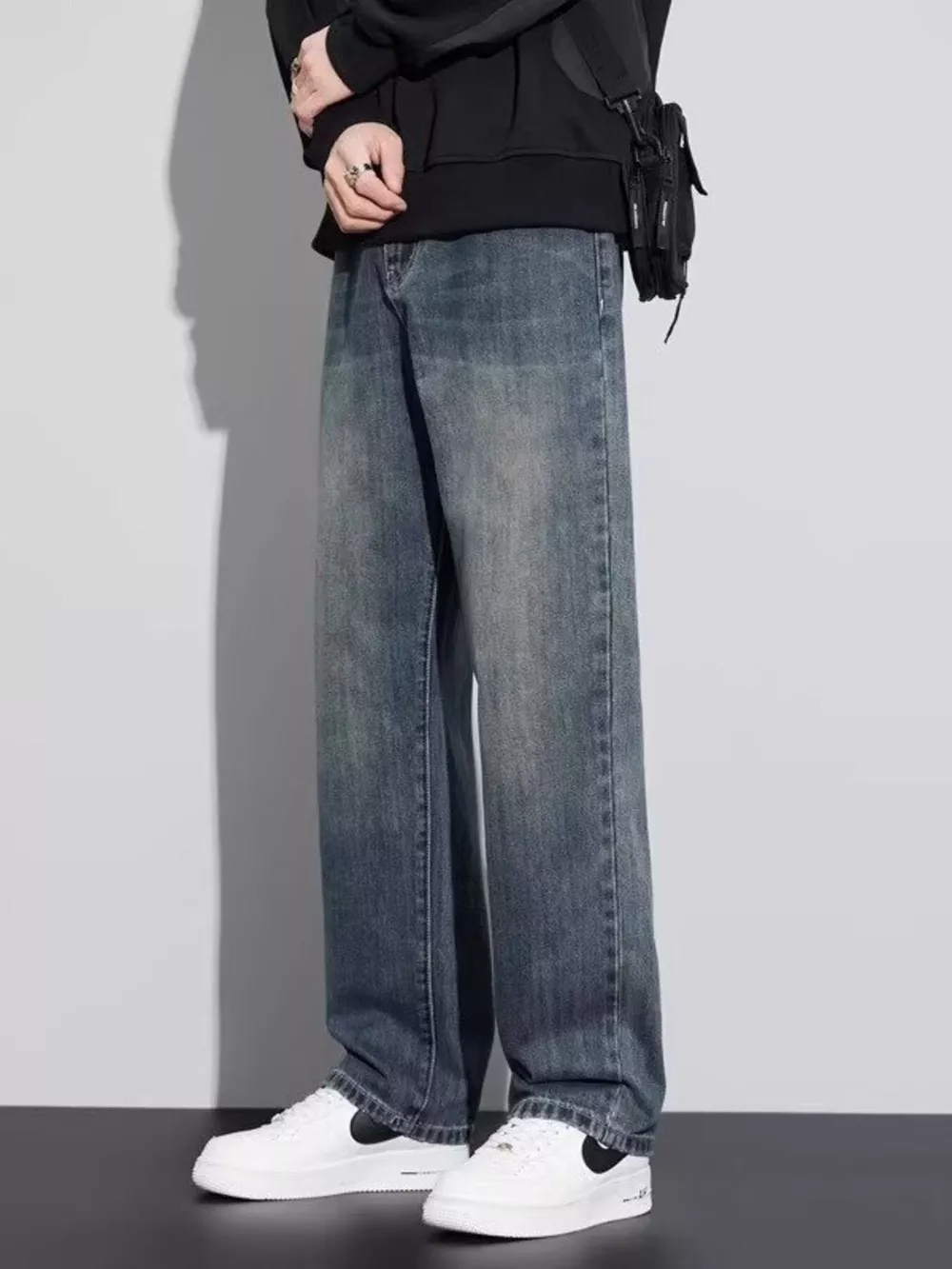 Men's Full Size Vintage Wash Wide Leg Jeans Plus Size
