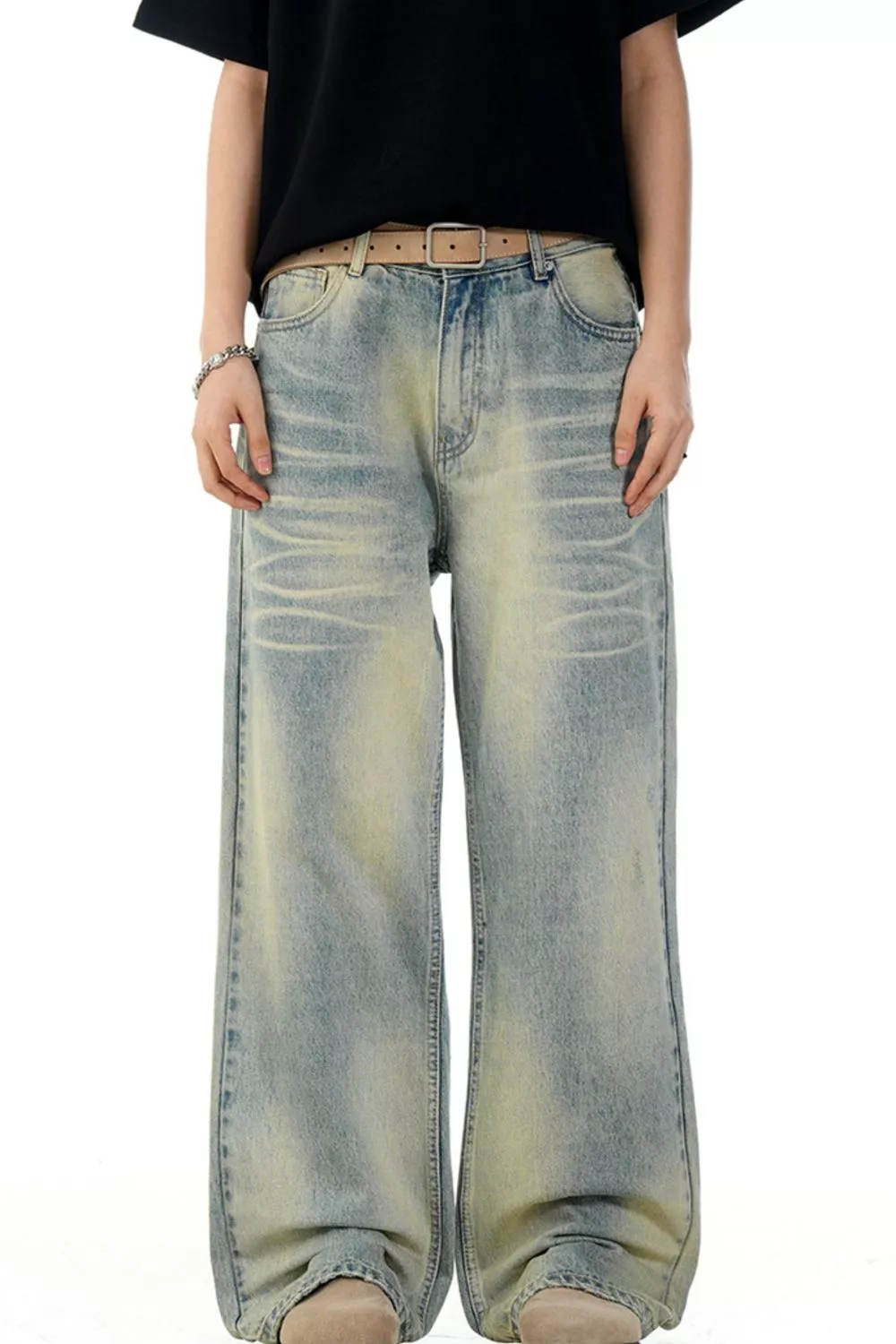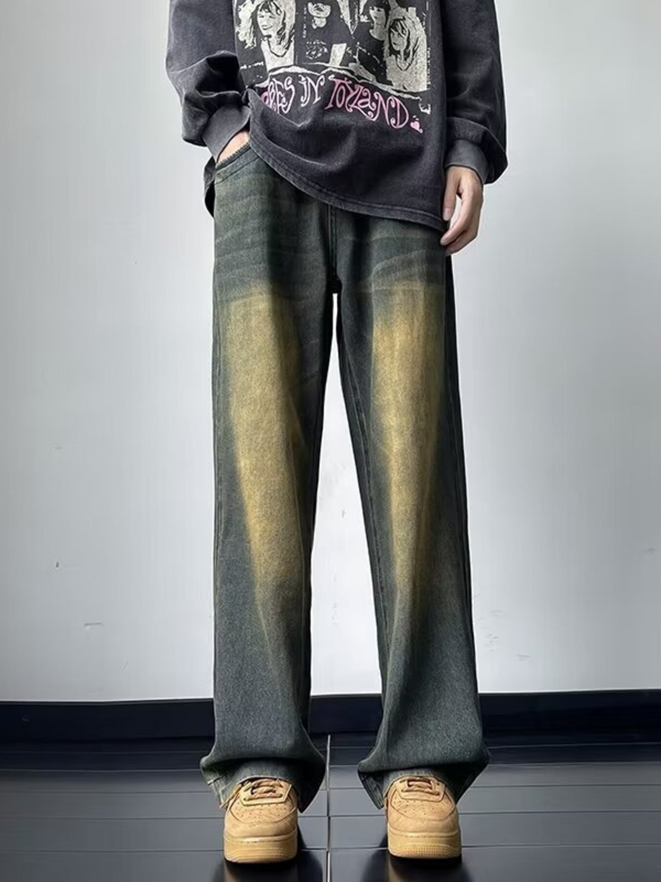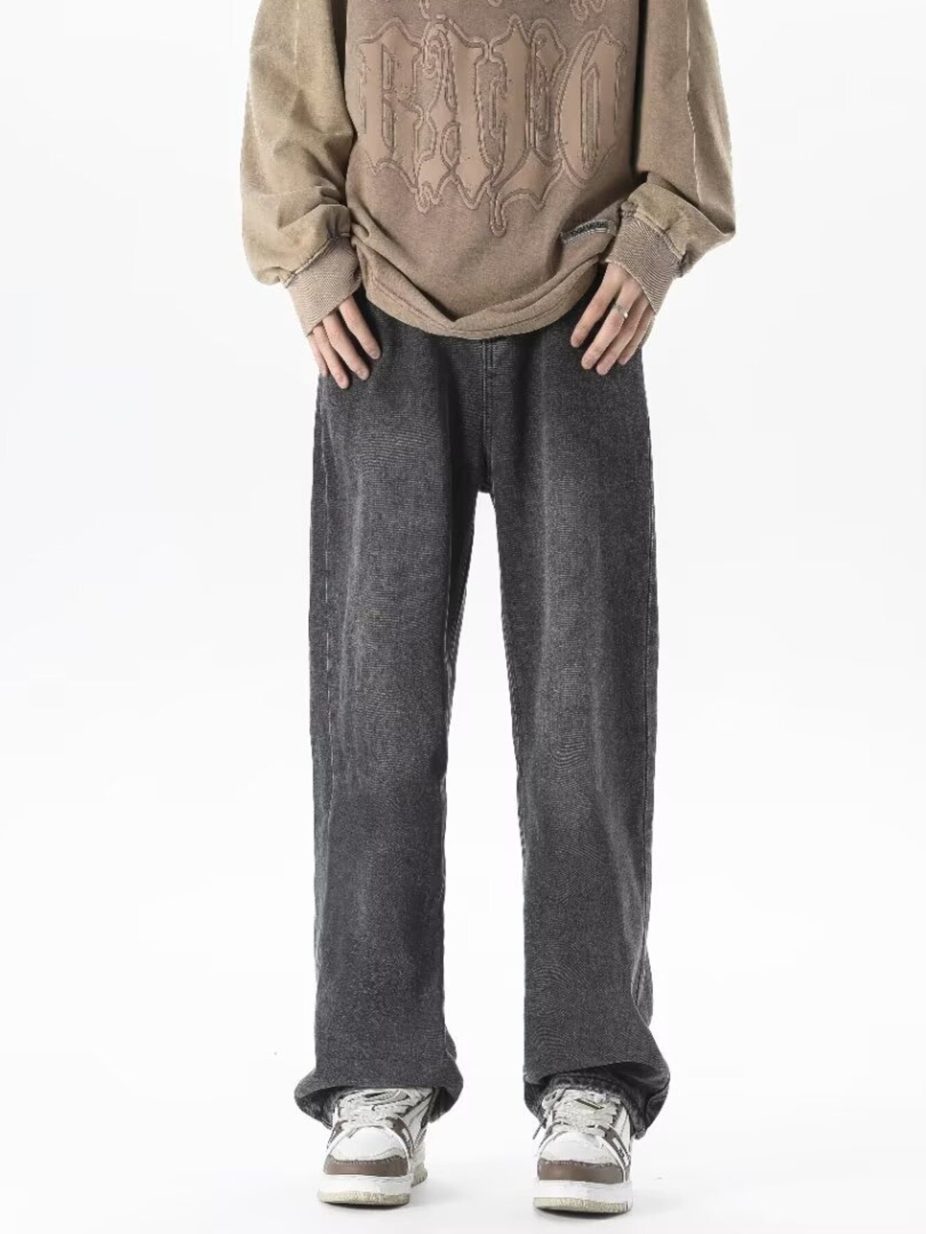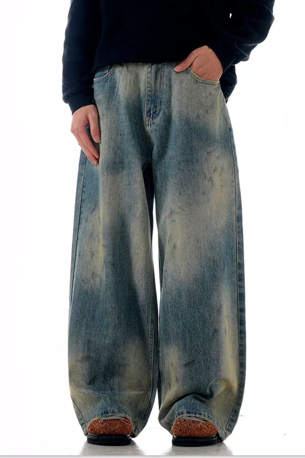 Men's Full Size Vintage Wash Wide Leg Jeans Plus Size