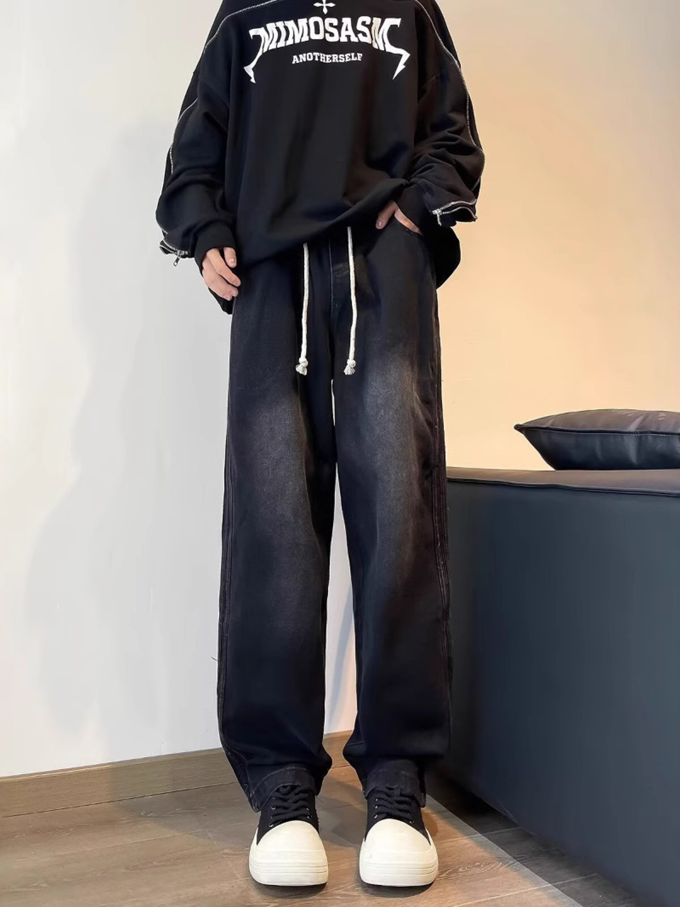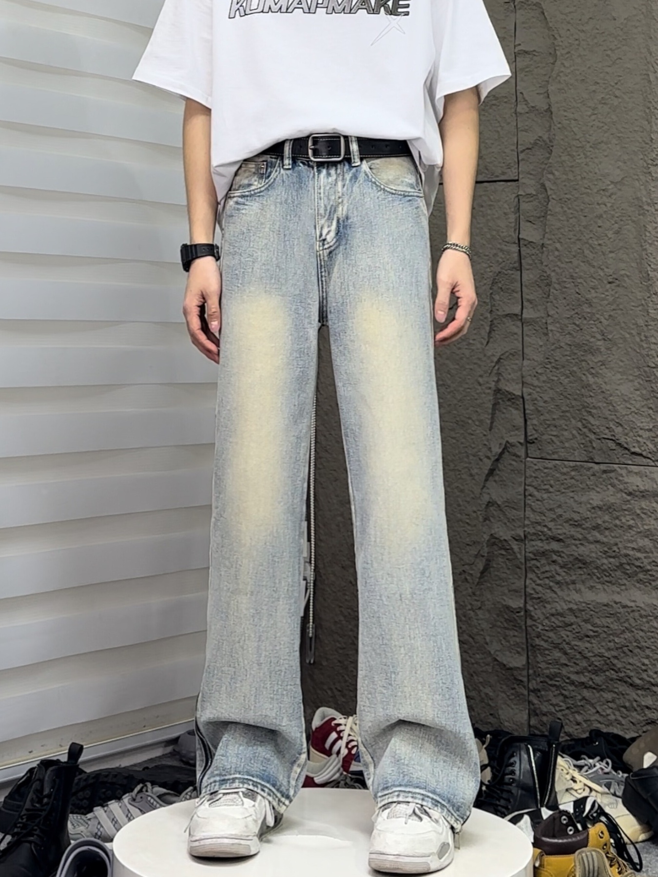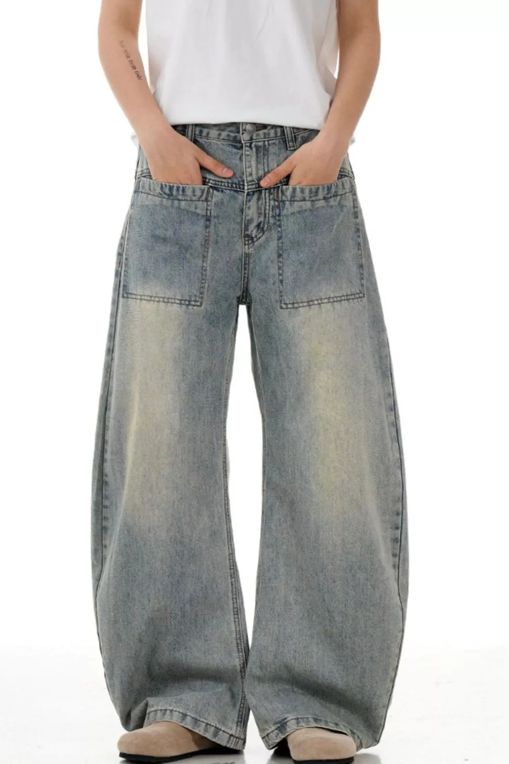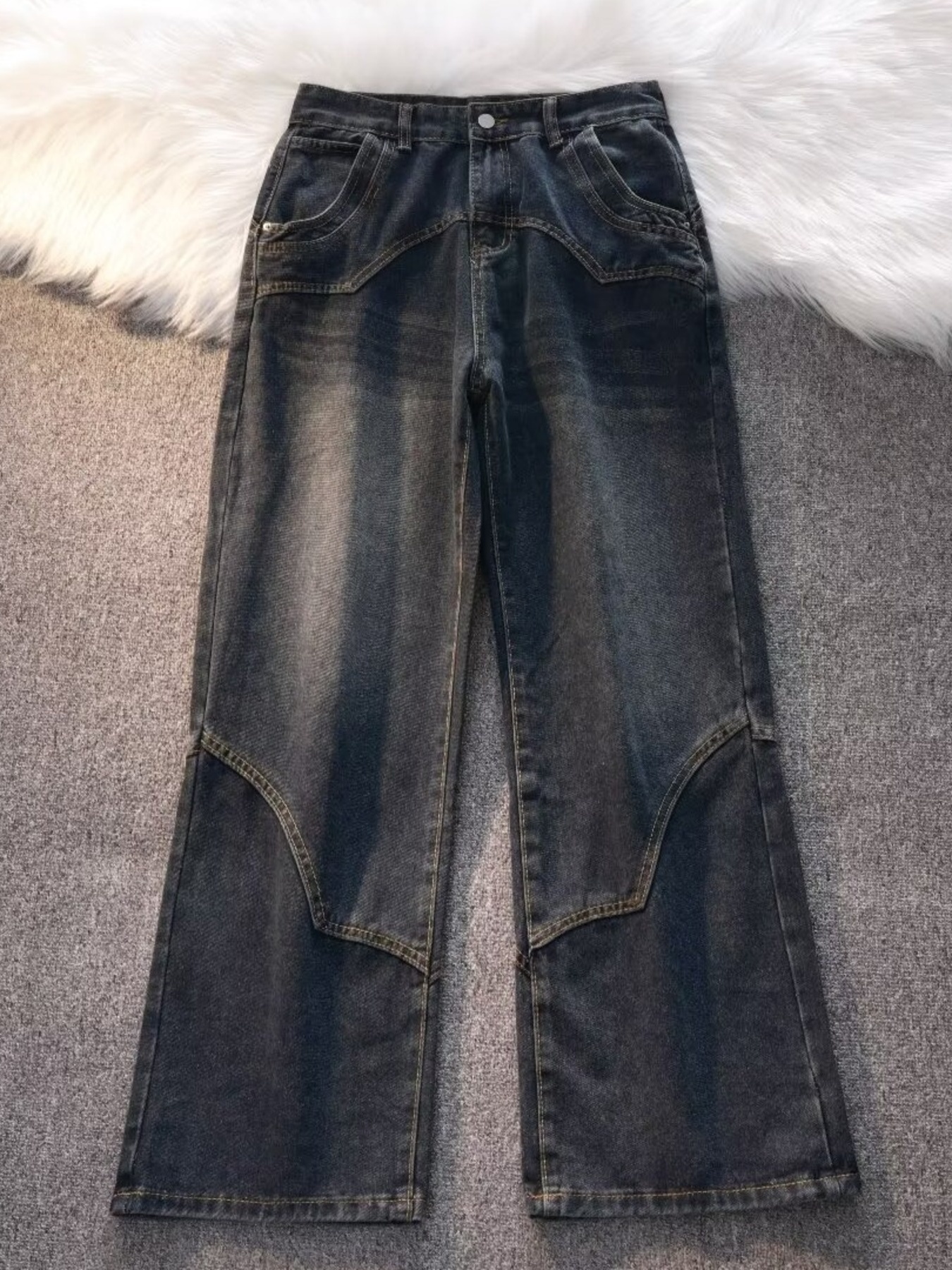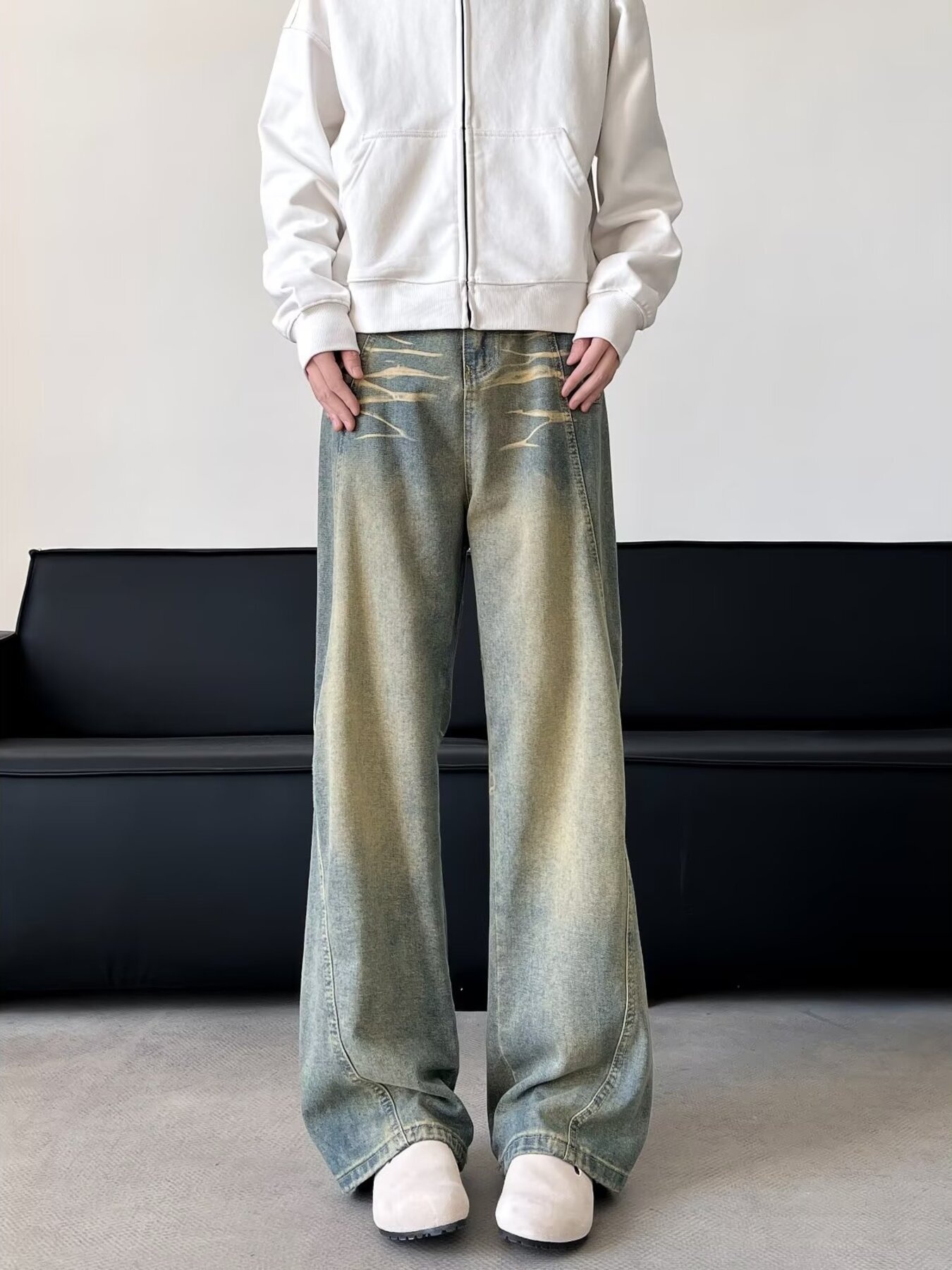 Men's Full Size Vintage Wash Wide Leg Jeans Plus Size