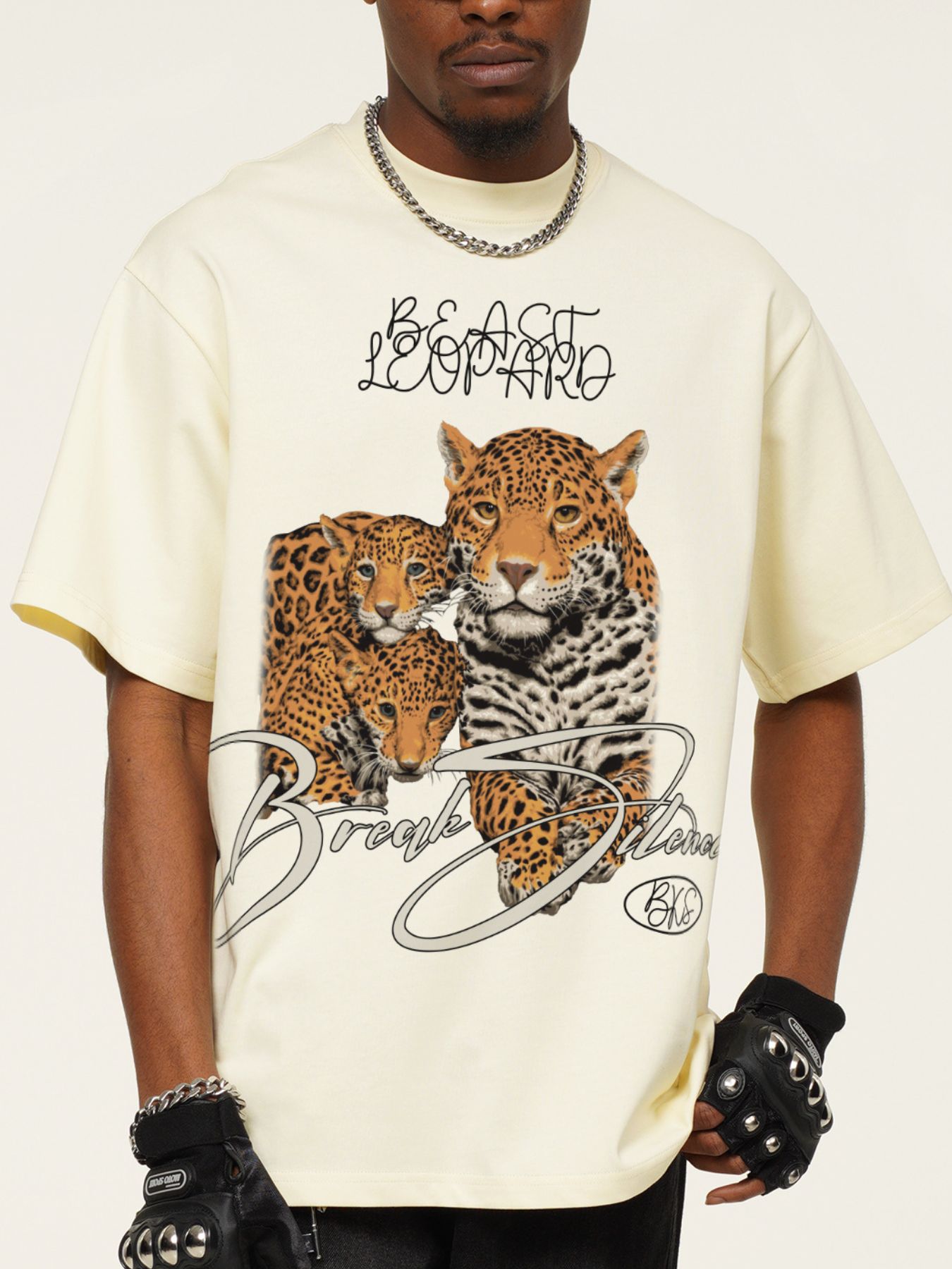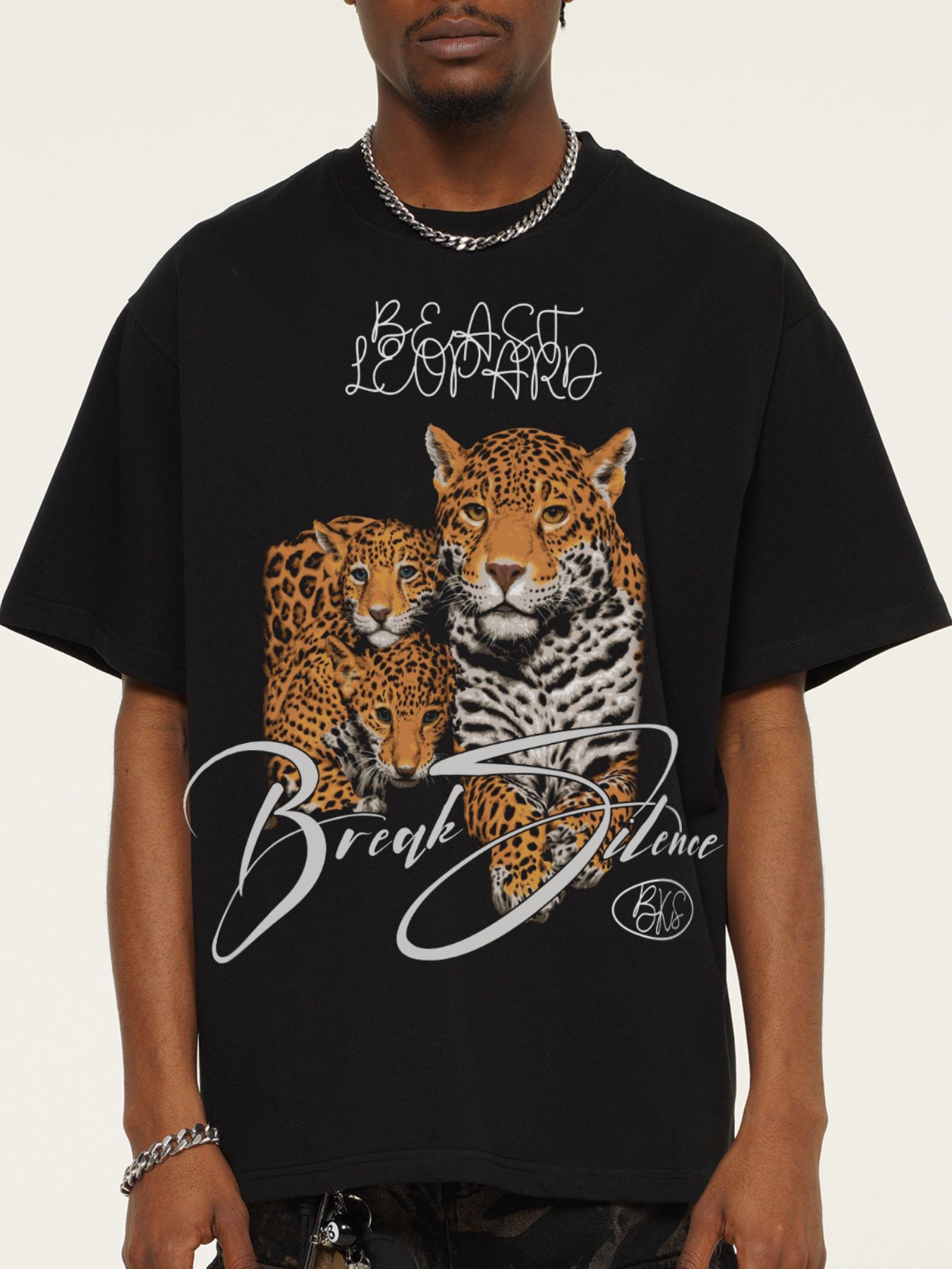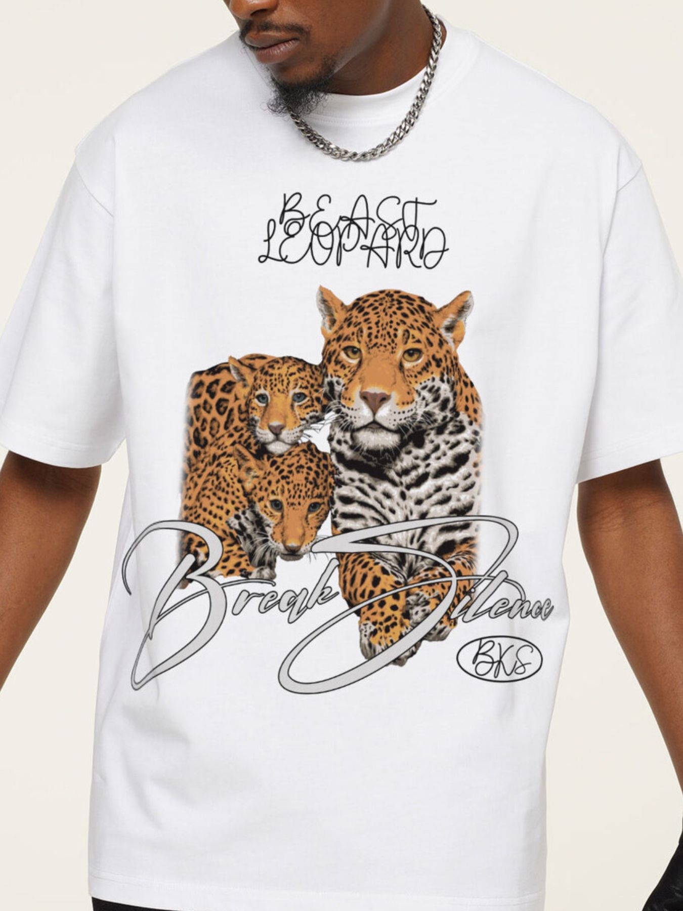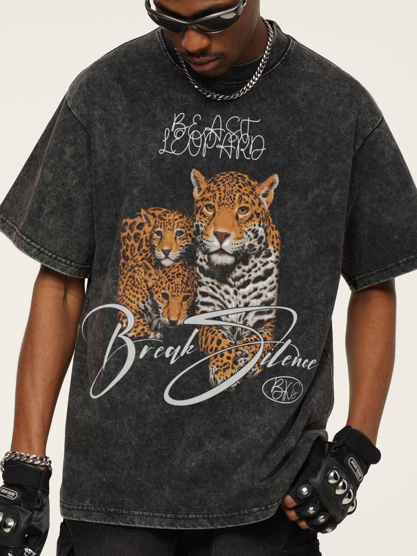 Men's Vintage Leopard Graphic Round Neck T-Shirt