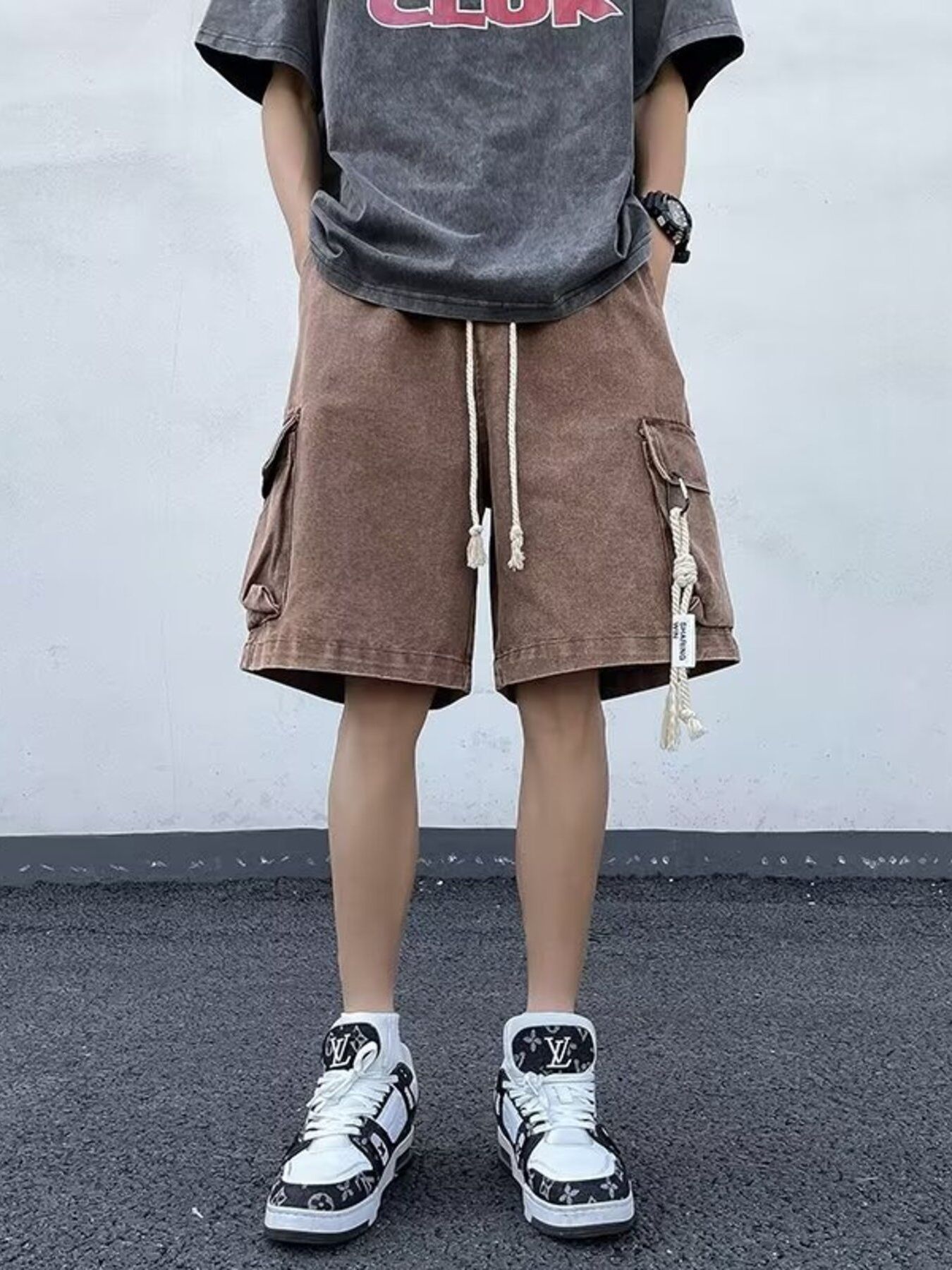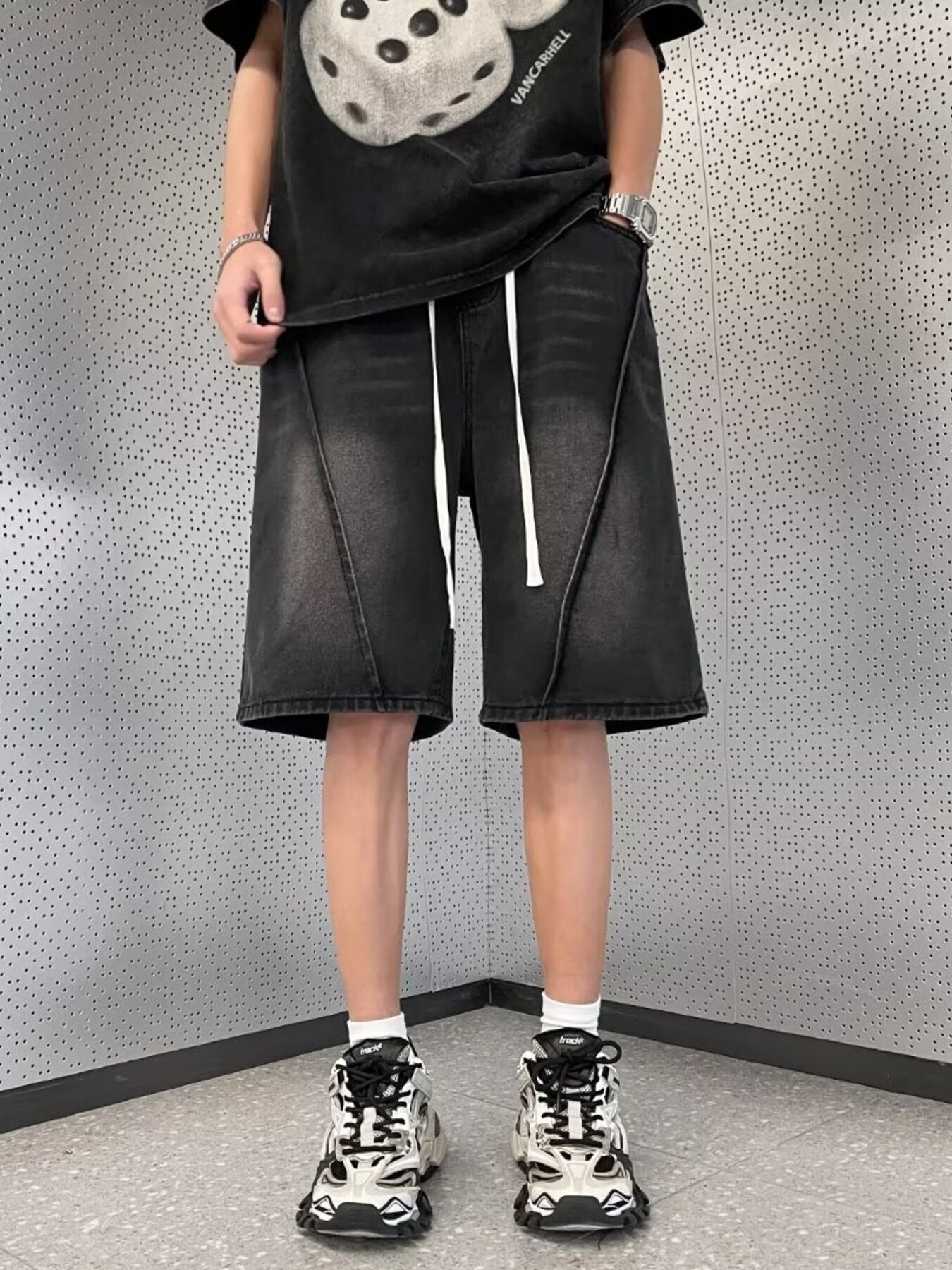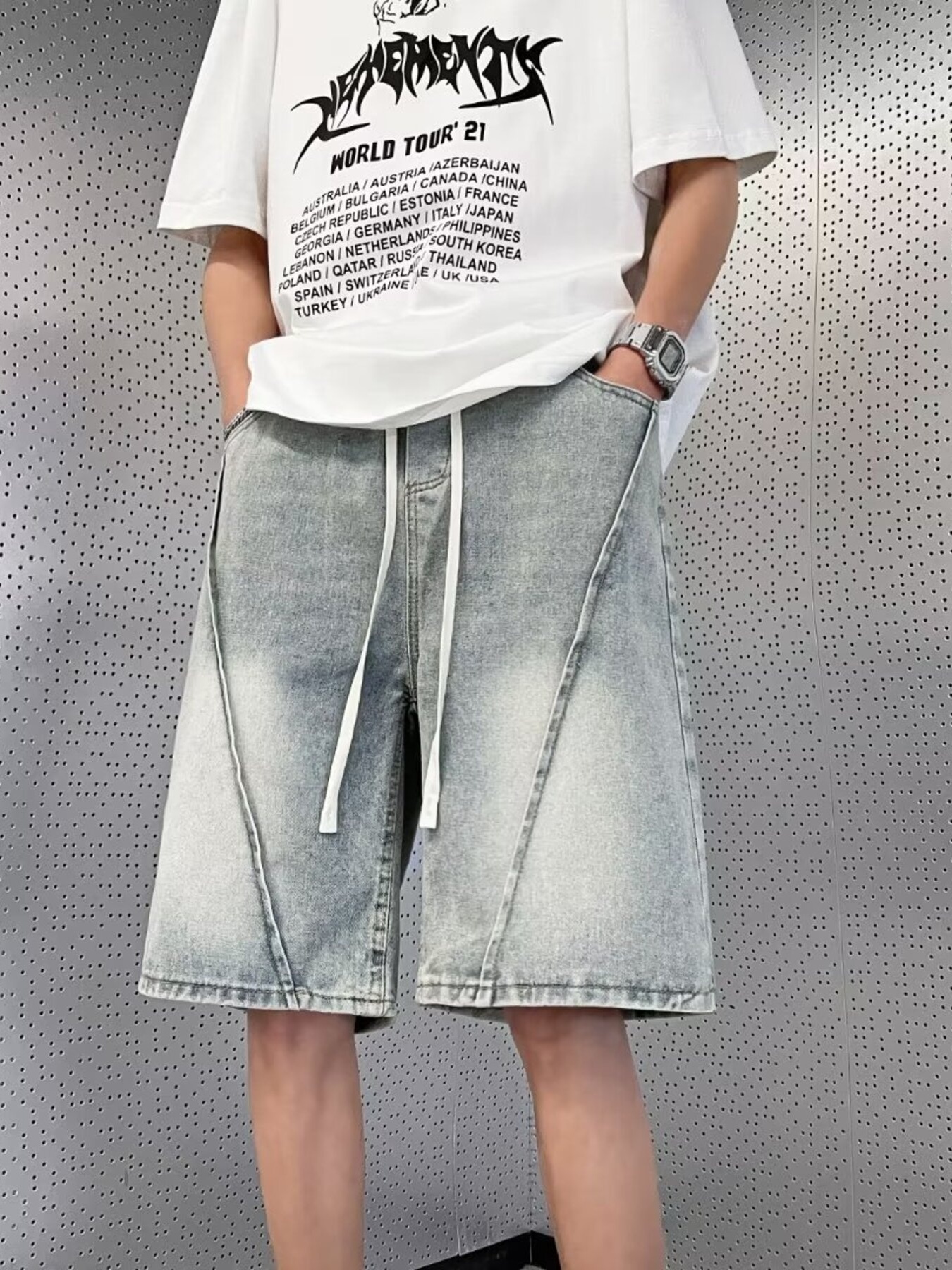 Men's Full Size Vintage Wash Drawstring Denim Shorts Plus Size